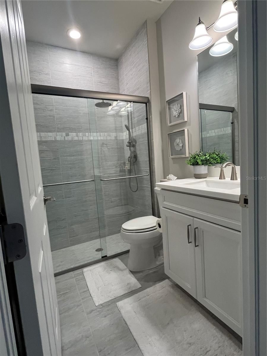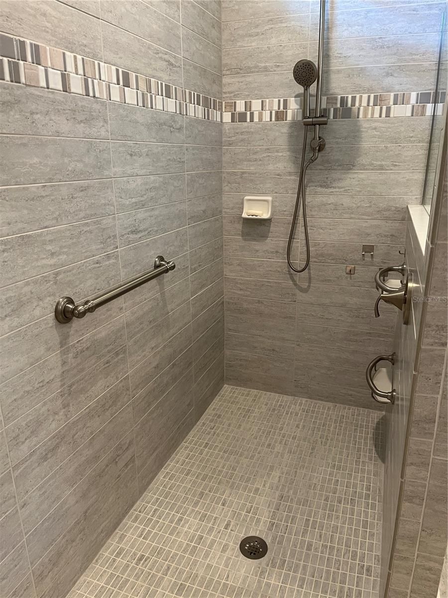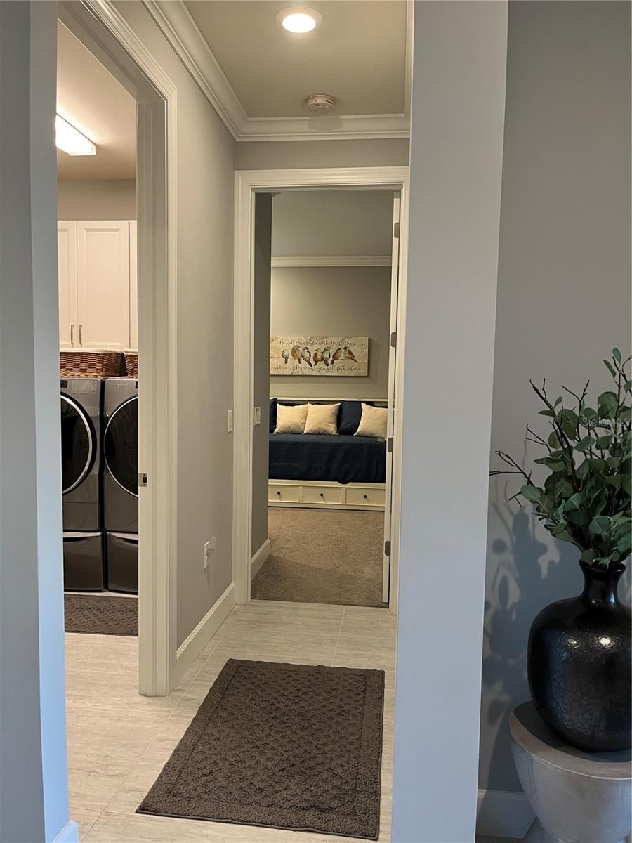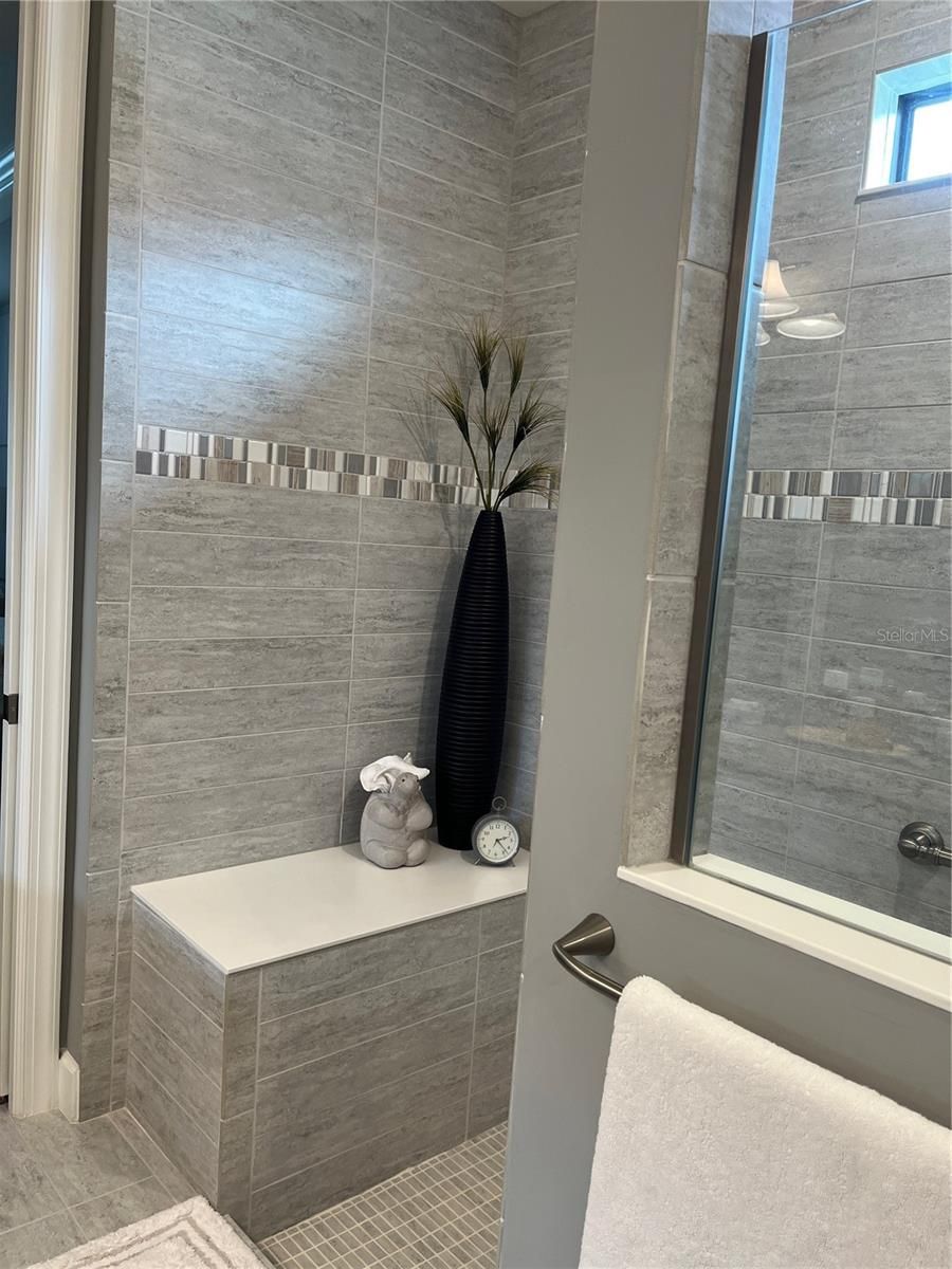 PRIVATE POOL AND SPA ! - Welcome to This 2018 home is like new on an oversized lot with southwestern exposure. Equipped with hurricane impact windows, doors and zero corner sliding doors leading to the wrap around lanai with private pool and spa! - Cypress Falls at the Woodlands, a Del Webb 55+ Active Adult gated community! Throughout, you'll find crown molding, wide base trim, three decorative painted walls; one in brick, and two in wood, and two tray ceilings with brushed nickel hardware. Tile flooring in hallways, kitchen, baths and great room, and dining room. The den has wood flooring and bedrooms have carpet. You'll find added to the house, 4.5" wide plantation shutters on every window except sliders that have a rod with grommet top sheer curtain panels. Dimmer switches in the den, great room, kitchen, dining room, and master bedroom. Master bedroom walk-in closet, front bedroom and coat closet now have extra shelving with clothes rods and two wood bars with brushed nickel hooks. Kitchen you'll find white cabinetry, an angled range hood all in dovetail construction, soft close drawers and doors with full extension glide drawers, and a pantry. Counters are quartz with glass and stone backsplash. One cabinetry has a pullout trash and recycle bin. A new garbage disposal was added recently. Master bathroom white cabinetry and quartz counter with dual rectangle sinks and center drawers. Both bathrooms have widespread Moen brushed nickel faucets with tile showers. Rain shower heads with adjustable slide bars with hand held shower heads, towel bars, hooks, and decorative art hooks in the master bath with two Moen safety sixteen inch shower grab bars with built-in shelf were all added. Laundry room is equipped with a Whirlpool front load matching washer and dryer with pedestal storage drawers. White cabinetry, counter and sink tub. Three towel bars and decorative art hooks were all added. Great room has two walls with TV mounting locations with high and low outlets. There is an electrical plug in middle of the floor. Master bedroom has a television hanger on the wall that was added. 2+ Car Garage is 28 feet long. The ceiling fan, four led work lights, 220V wired plug, and ceiling insulation all were added.