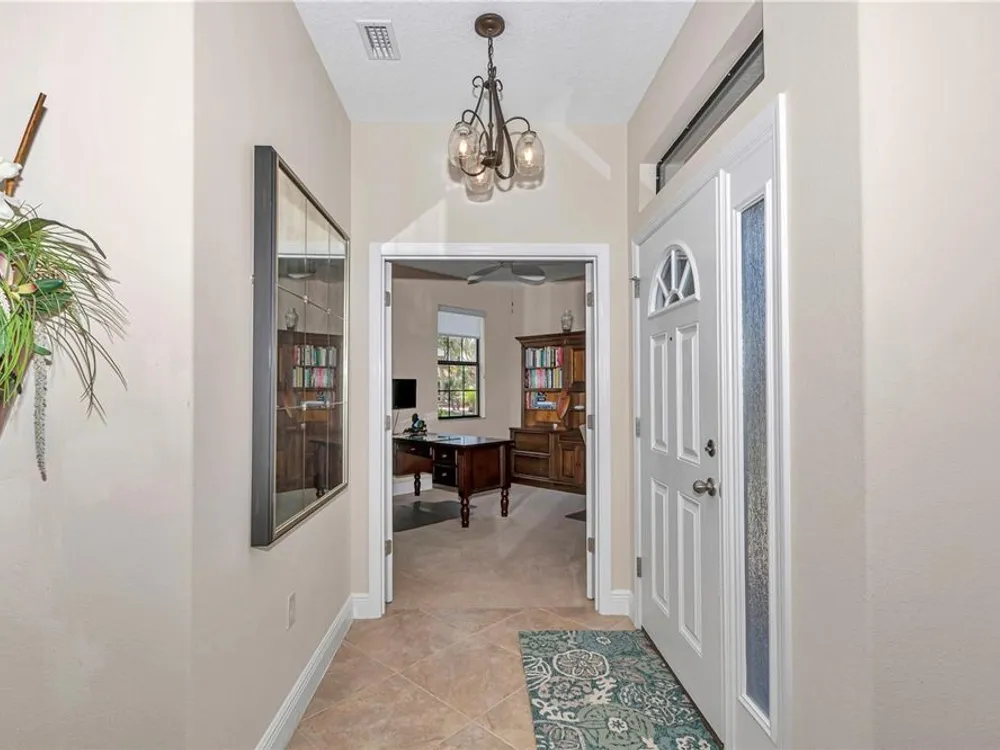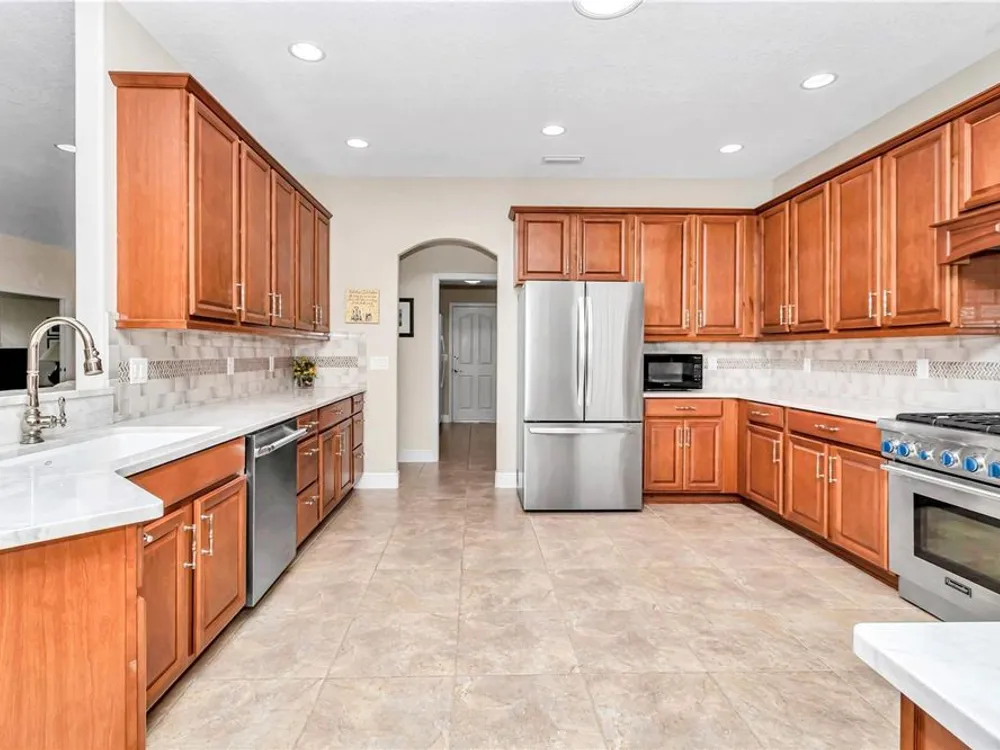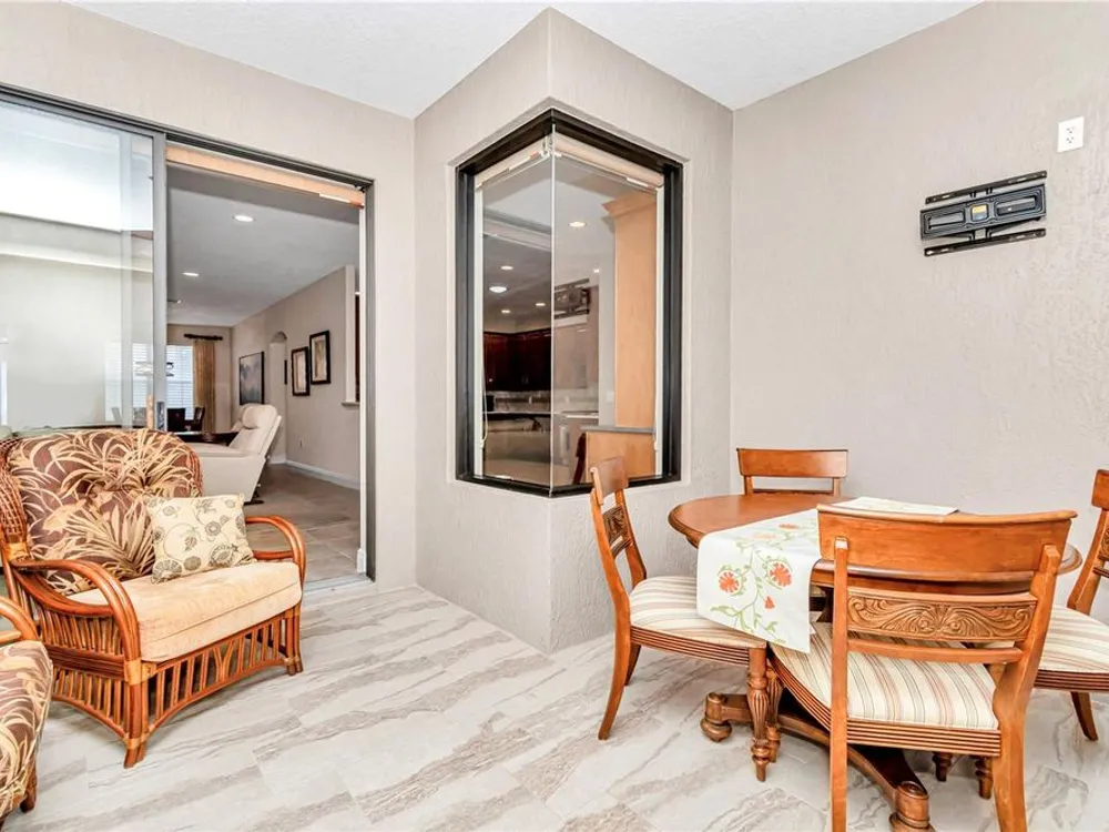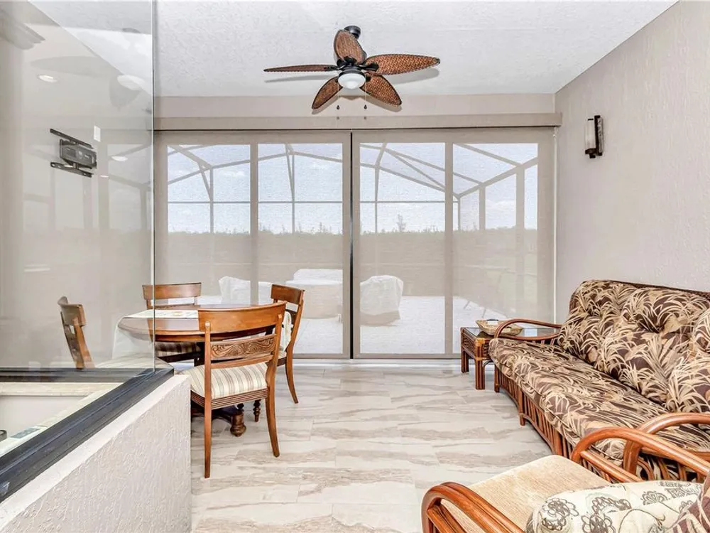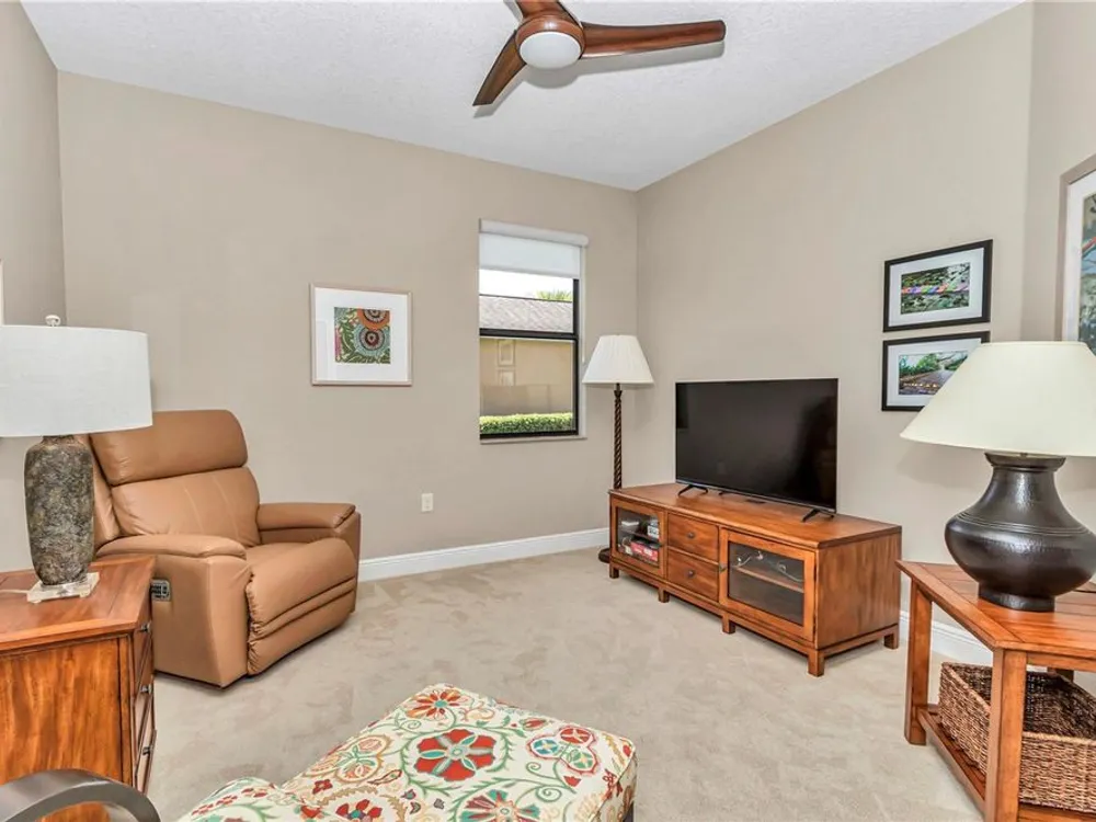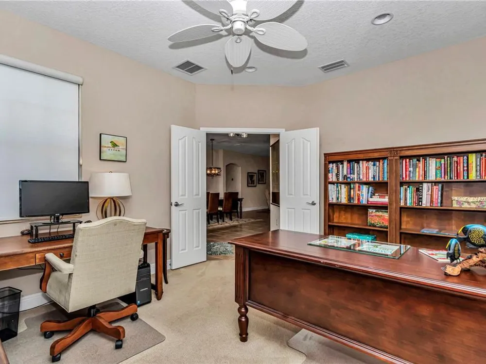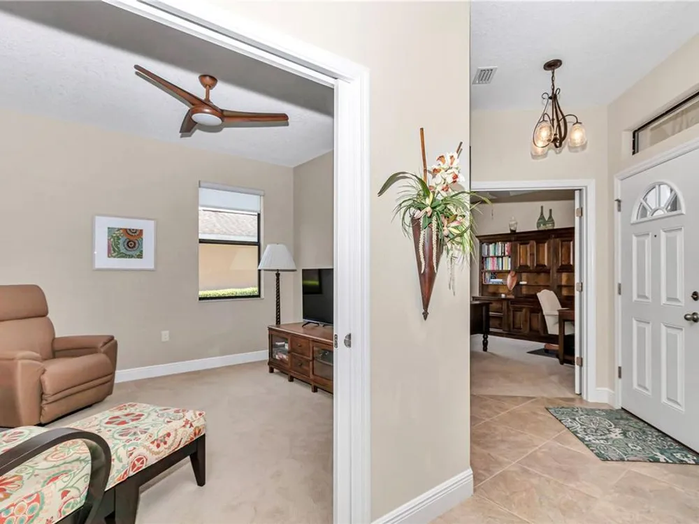 Seller Offering $10,000 in Buyer Advantages! Move right in and enjoy this thoughtfully expanded Jacaranda model, featuring 4 bedrooms, 3 bathrooms, and two versatile bonus rooms ideal for an office, hobby space, guest room, or extra living area. Designed and built by its original owner with a widened footprint for added comfort, this home is tucked away on a peaceful cul-de-sac for extra privacy. The chef’s kitchen shines with a premium Thermador gas range, custom cabinetry, granite countertops, and a walk-in pantry. The open living and dining areas flow beautifully to an expansive screened lanai, perfect for entertaining or relaxing year-round. One wing offers a spacious private room large enough to serve as a true in law suite or multi-generational retreat. A separate bonus room includes a built in Murphy bed, making it an ideal flex space for guests or hobbies. The garage is widened by 5 feet, extended 8 feet deep, and includes a dedicated golf cart bay, providing exceptional storage and functionality. Upgrades include a new roof (2024), HVAC (2022), fresh interior paint, custom closet systems, solar attic fans, and lush tropical landscaping. Enjoy the resort-style 55+ community amenities like a sparkling pool, pickleball, spa, fitness center, social events, and a brand new on site restaurant. HOA fees include internet, cable, lawn care & more, creating a true low-maintenance lifestyle.