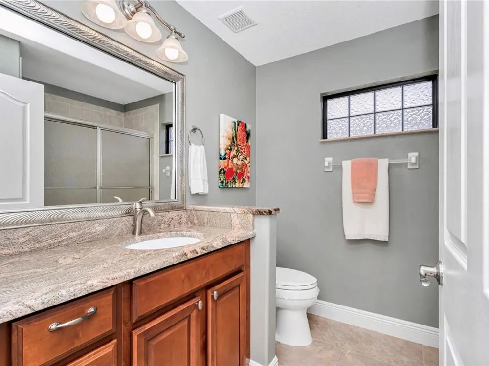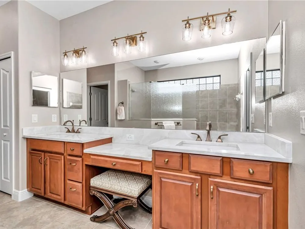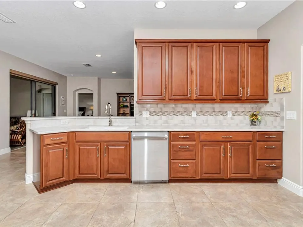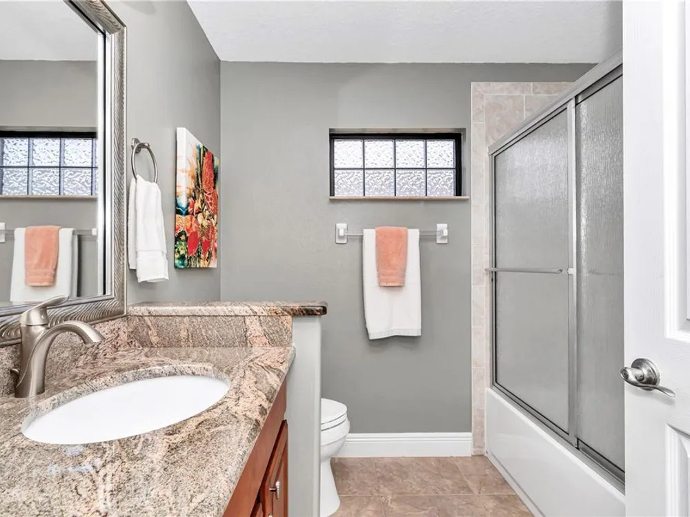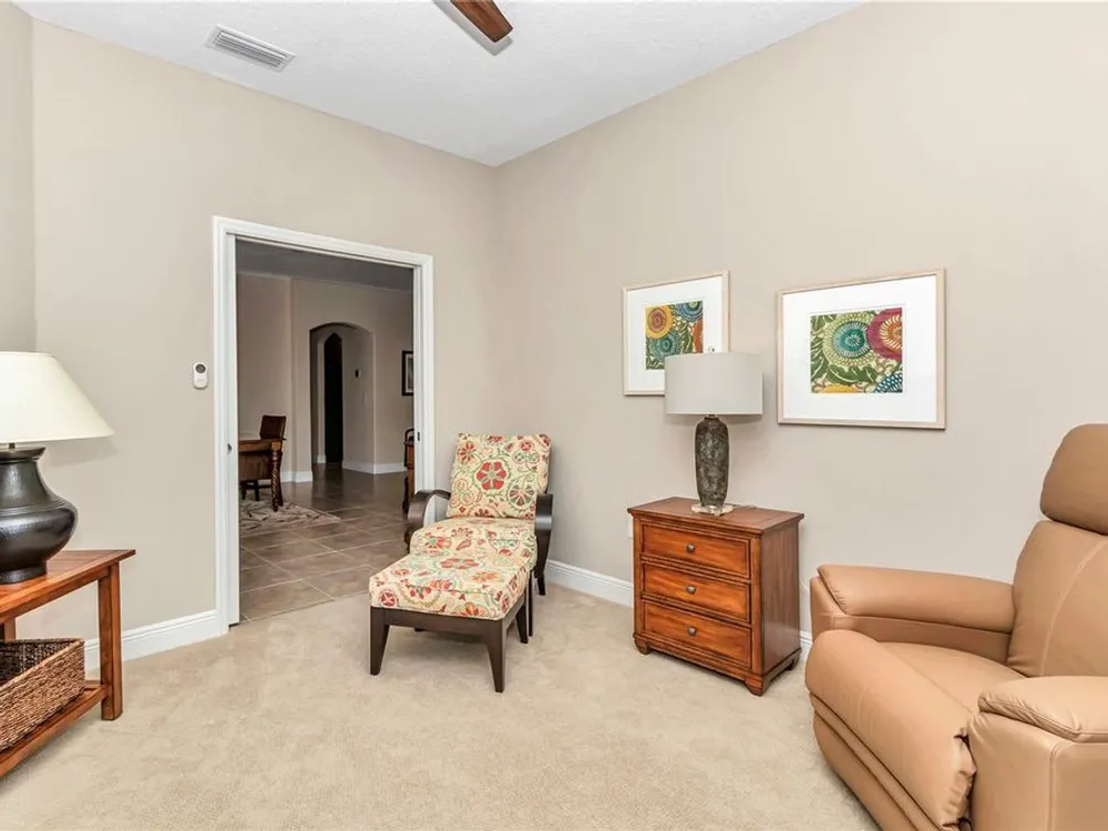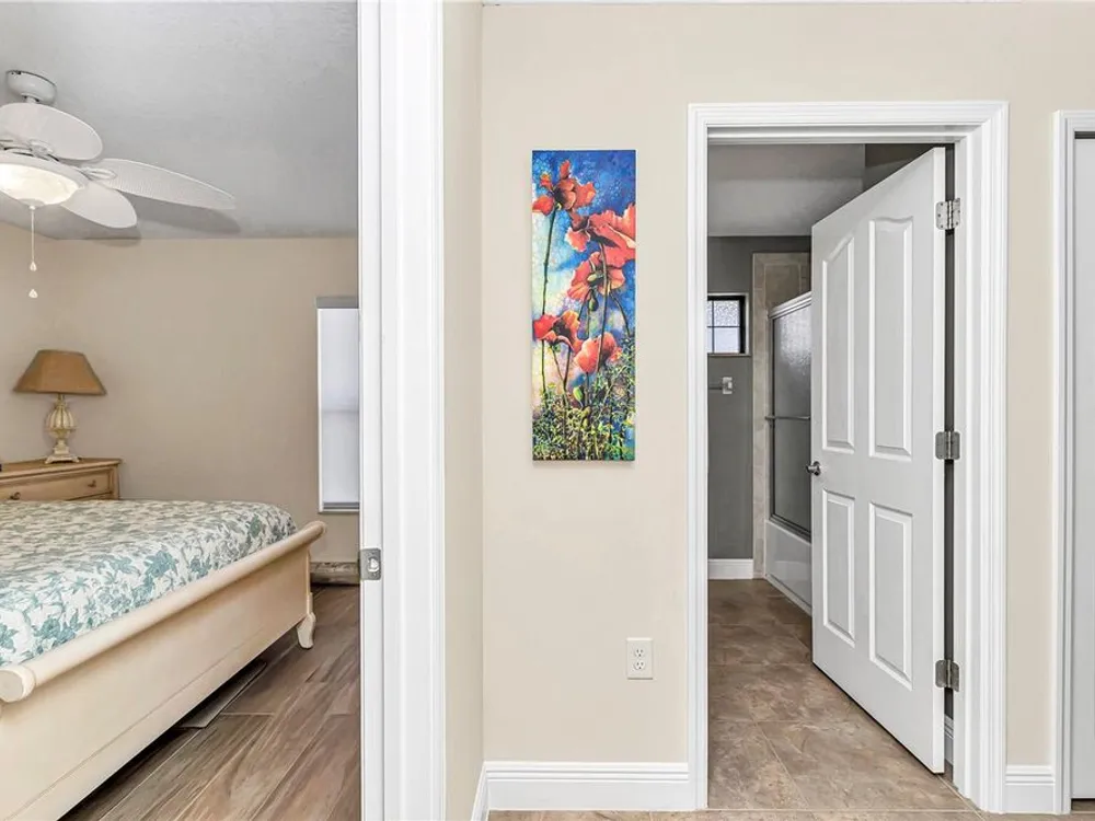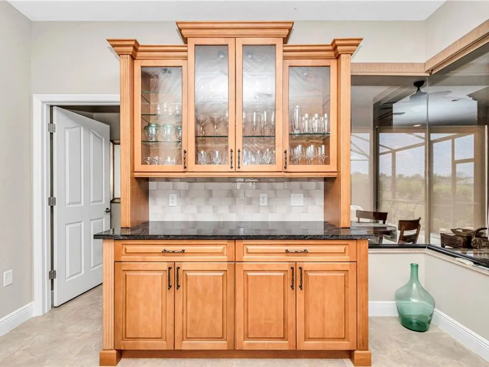 Seller Offering $10,000 in Buyer Advantages! Move right in and enjoy this thoughtfully expanded Jacaranda model, featuring 4 bedrooms, 3 bathrooms, and two versatile bonus rooms ideal for an office, hobby space, guest room, or extra living area. Designed and built by its original owner with a widened footprint for added comfort, this home is tucked away on a peaceful cul-de-sac for extra privacy. The chef’s kitchen shines with a premium Thermador gas range, custom cabinetry, granite countertops, and a walk-in pantry. The open living and dining areas flow beautifully to an expansive screened lanai, perfect for entertaining or relaxing year-round. One wing offers a spacious private room large enough to serve as a true in law suite or multi-generational retreat. A separate bonus room includes a built in Murphy bed, making it an ideal flex space for guests or hobbies. The garage is widened by 5 feet, extended 8 feet deep, and includes a dedicated golf cart bay, providing exceptional storage and functionality. Upgrades include a new roof (2024), HVAC (2022), fresh interior paint, custom closet systems, solar attic fans, and lush tropical landscaping. Enjoy the resort-style 55+ community amenities like a sparkling pool, pickleball, spa, fitness center, social events, and a brand new on site restaurant. HOA fees include internet, cable, lawn care & more, creating a true low-maintenance lifestyle.