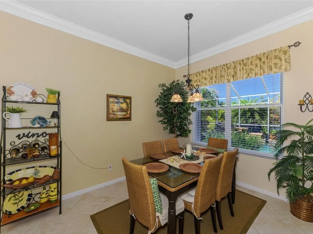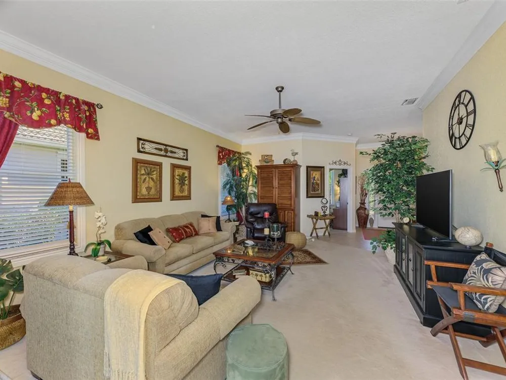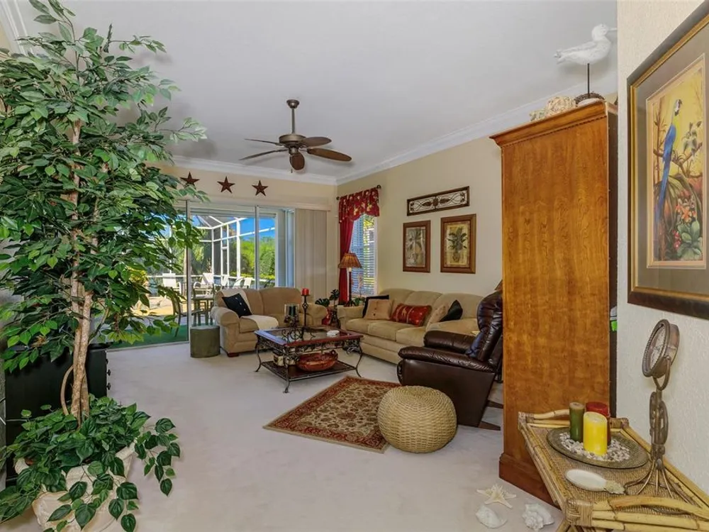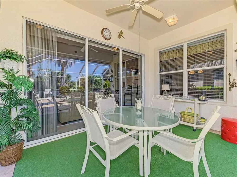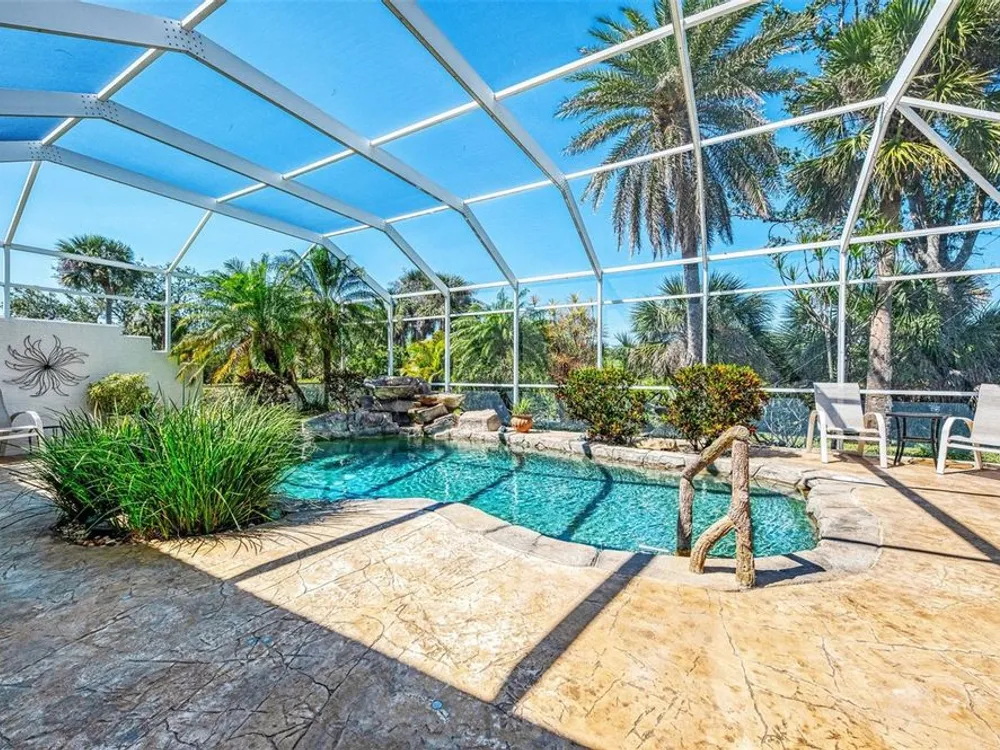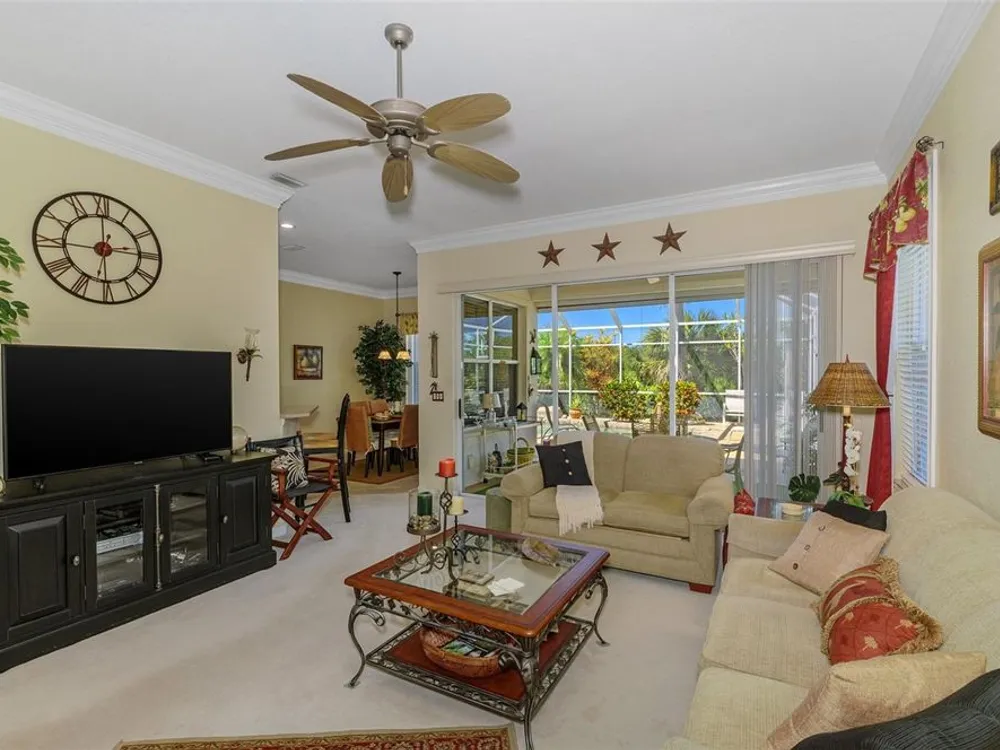 DISCOVER FLORIDA CHARM by owning this FURNISHED JUNIPER VILLA. Nestled on a premium landscaped lot, this beautiful villa offers serene preserve views and desirable privacy from an expansive 25’ x 10’ screened lanai. Enjoy the ultimate Florida lifestyle with a custom rocked, heated pool with decorative fountain, all complemented by a 14’ x 8’ covered outdoor area. Your own TROPICAL OASIS perfect for relaxing in the sunshine or entertaining guests. Inside, the villa features a spacious Great Room, a 3rd Bedroom utilized as a Den, a well-appointed Kitchen with a breakfast bar, a Dining Area, a Guest Bedroom, and an attached 2-car garage. Elegant details include crown molding, custom window treatments, ambient lighting, and tile flooring throughout the Primary Suite, which also boasts a generous walk-in closet. BONUS: This home comes with a turn-key furniture package, upgraded Storm Shutters for peace of mind, and HOA dues include all exterior maintenance, offering peace of mind and true lock-and-leave convenience. Experience Resort-Style Living at Riverwood Set on 1,300 acres along the scenic Myakka River in Port Charlotte—conveniently located between Fort Myers and Sarasota—Riverwood is a premier Southwest Florida gated community. Amenities include 4.5-star Golf Digest-rated golf course. Exclusive private Beach Club on the Gulf of Mexico. Recreational Center with a state-of-the-art fitness room, Junior Olympic-size pool, Tennis and Pickleball courts A wide array of classes, social events, and clubs. Explore the nearby world-class beaches, boating, fishing, marinas, and an abundance of cultural experiences. Golf and Beach Club memberships available (subject to availability).Call the agent today for details and immerse yourself in the unique charm of Riverwood—where resort living meets natural beauty!