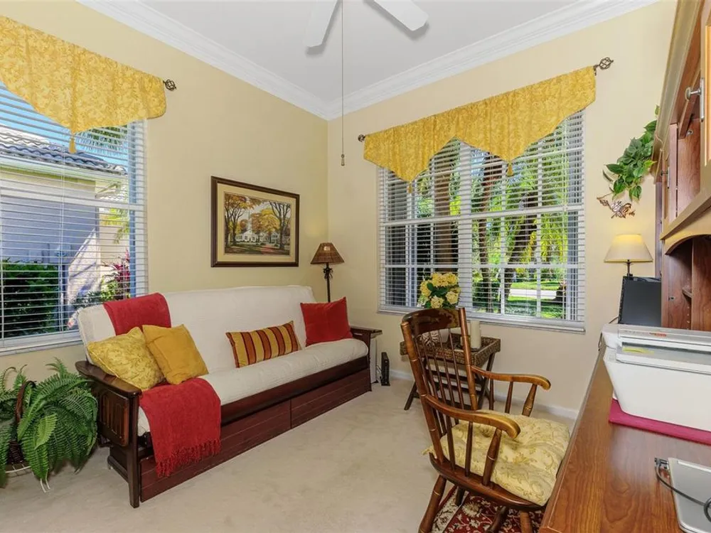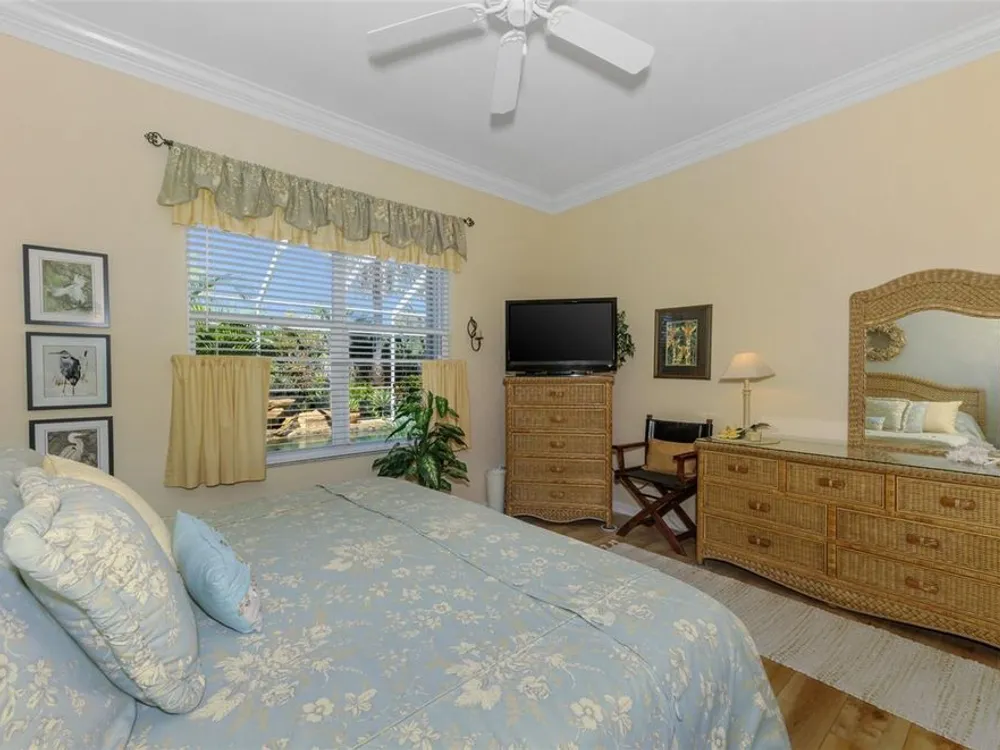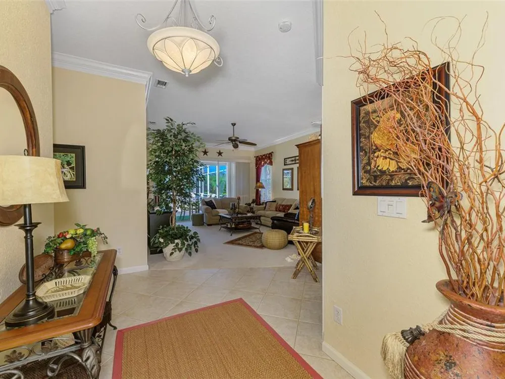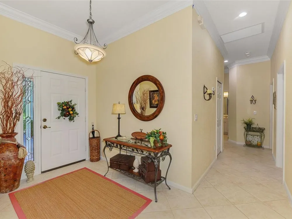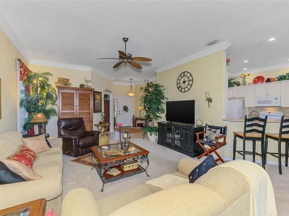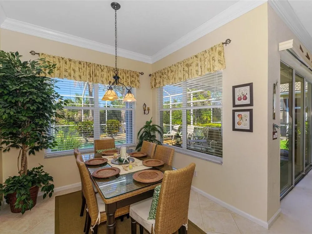 DISCOVER FLORIDA CHARM by owning this FURNISHED JUNIPER VILLA. Nestled on a premium landscaped lot, this beautiful villa offers serene preserve views and desirable privacy from an expansive 25’ x 10’ screened lanai. Enjoy the ultimate Florida lifestyle with a custom rocked, heated pool with decorative fountain, all complemented by a 14’ x 8’ covered outdoor area. Your own TROPICAL OASIS perfect for relaxing in the sunshine or entertaining guests. Inside, the villa features a spacious Great Room, a 3rd Bedroom utilized as a Den, a well-appointed Kitchen with a breakfast bar, a Dining Area, a Guest Bedroom, and an attached 2-car garage. Elegant details include crown molding, custom window treatments, ambient lighting, and tile flooring throughout the Primary Suite, which also boasts a generous walk-in closet. BONUS: This home comes with a turn-key furniture package, upgraded Storm Shutters for peace of mind, and HOA dues include all exterior maintenance, offering peace of mind and true lock-and-leave convenience. Experience Resort-Style Living at Riverwood Set on 1,300 acres along the scenic Myakka River in Port Charlotte—conveniently located between Fort Myers and Sarasota—Riverwood is a premier Southwest Florida gated community. Amenities include 4.5-star Golf Digest-rated golf course. Exclusive private Beach Club on the Gulf of Mexico. Recreational Center with a state-of-the-art fitness room, Junior Olympic-size pool, Tennis and Pickleball courts A wide array of classes, social events, and clubs. Explore the nearby world-class beaches, boating, fishing, marinas, and an abundance of cultural experiences. Golf and Beach Club memberships available (subject to availability).Call the agent today for details and immerse yourself in the unique charm of Riverwood—where resort living meets natural beauty!