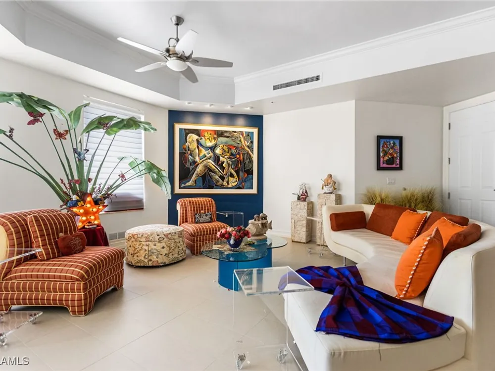 The Paramount – Premier Riverfront Living in Gulf Harbour Welcome to The Paramount, the most prestigious high-rise in Gulf Harbour Yacht & Country Club. This meticulously maintained 3rd-floor residence is one of only three units in the entire building that boasts a private 1,800+ sq. ft. terrace with direct access to the resort-style pool, blending the best of indoor elegance and outdoor lifestyle. RARE-Two under-building parking spaces + private golf cart spot!! With over 3,740 sq. ft. of interior living space, this stunning 4-bedroom, 4.5-bath condo offers expansive views of the Caloosahatchee River, exquisite finishes, and rare design elements that make it truly one-of-a-kind. From your private elevator lobby, step into the Grand Salon—a showstopping space where 10’ ceilings, 8’ solid core doors, and 10’ sliding glass doors frame panoramic river views. Two beautifully designed living areas include a custom bar with wine cooler, perfect for entertaining in style. The chef’s kitchen is as functional as it is beautiful, featuring custom cream wood cabinetry, granite countertops, a glass subway tile backsplash, high-end appliances, an oversized island, butler’s pantry, and both over- and under-cabinet lighting—all while offering unobstructed water views. The primary suite is a serene retreat with a tray ceiling, two walk-in closets, and a spa-inspired ensuite bath featuring dual vanities, a makeup/dressing area, a jetted soaking tub, a walk-in shower, and a private water closet with bidet. Each of the three guest suites includes a private ensuite bath, walk-in closet, and access to the screened balcony, offering privacy and comfort for family or guests. Additional highlights include: Hurricane protection throughout Elegant tile, marble, and wood-look flooring The Paramount Amenities: Resort-style pool and spa BBQ and outdoor lounge area State-of-the-art fitness center Billiards and business rooms Club kitchenette for private entertaining On-site property management Walkthrough videos are available for both the condo and marina. Private memberships are available for immediate purchase, including full golf and sports options. This is a rare opportunity to own a residence of this caliber in one of Fort Myers’ most exclusive riverfront communities. LIMITED-TIME OFFER: SPORTS MEMBERSHIP JOINING FEE REDUCED BY $32,000! Now is the perfect time to join Gulf Harbour Yacht & Country Club—sports memberships are temporarily available for just $20,000.