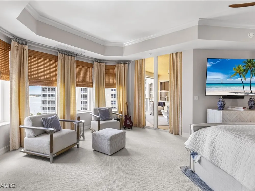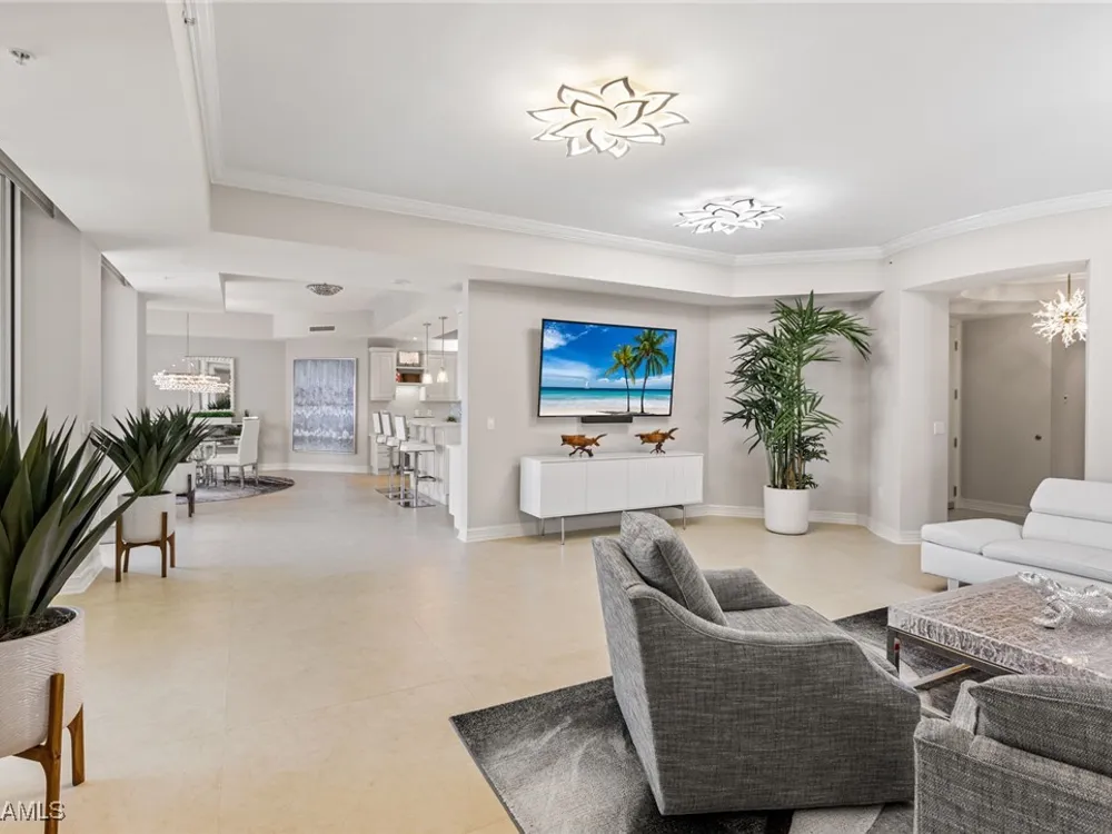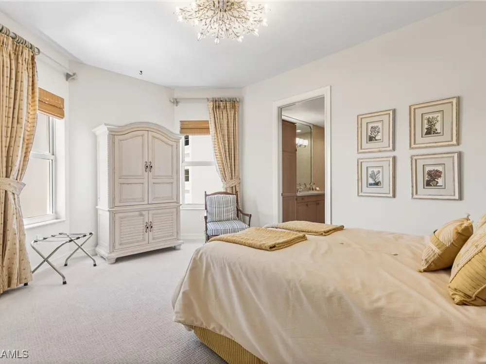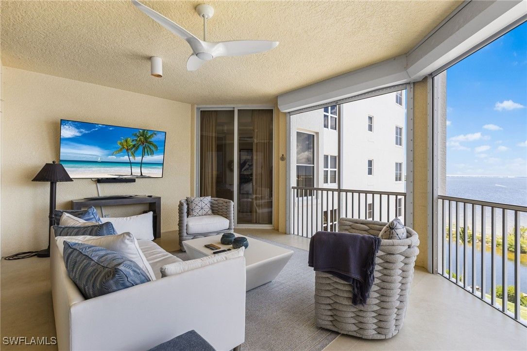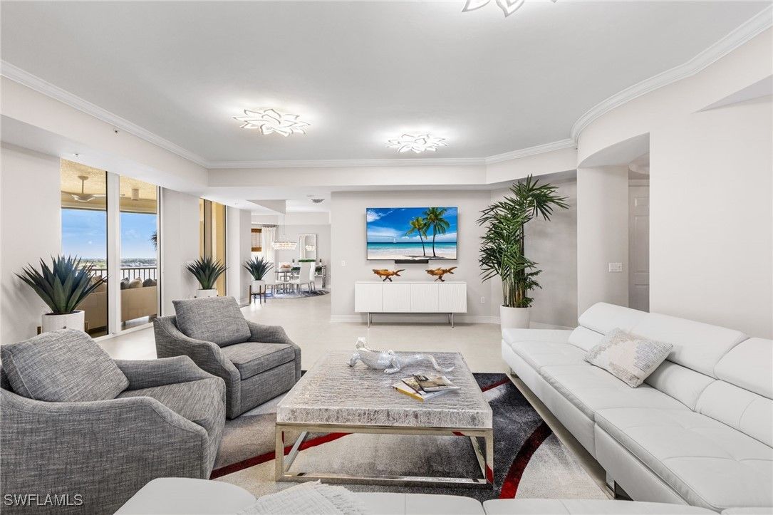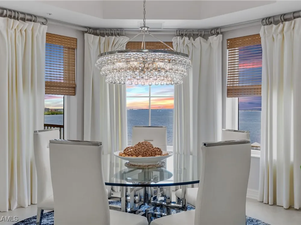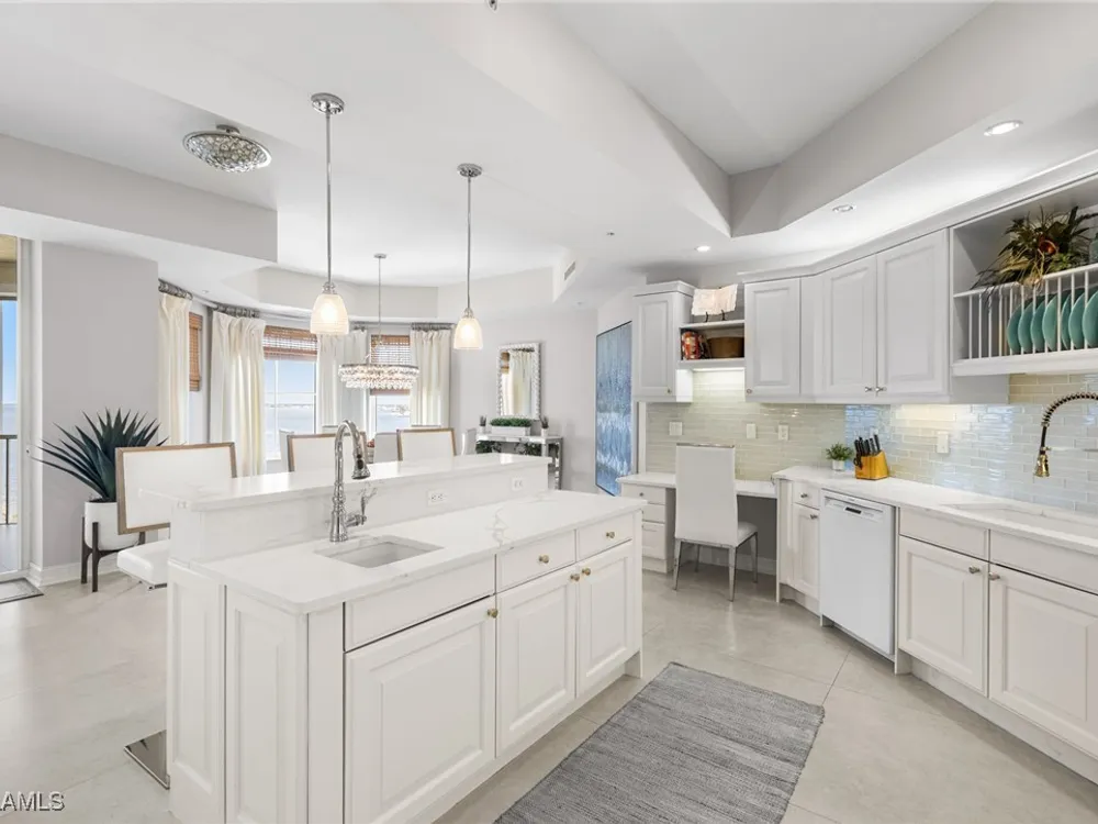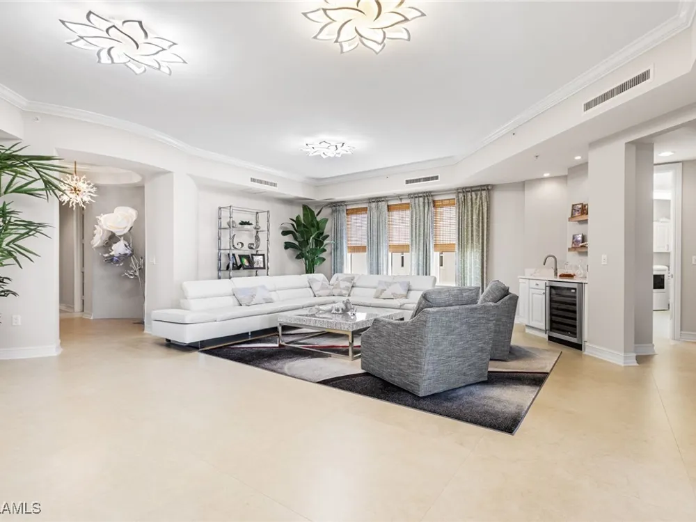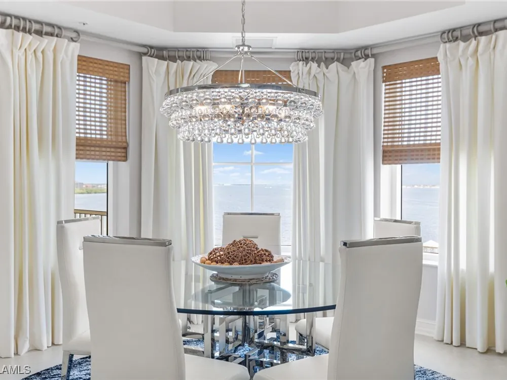 TEMPORARILY - SPORTS MEMBERSHIP JOINING FEE HAS BEEN REDUCED BY $32,000! Take advantage now of Gulf Harbour’s temporary reduction. For a limited time you can obtain a sports membership for a joining fee of $20,000. Light-Filled Luxury with Unmatched Sunset Views at The Paramount in Gulf Harbour Experience elevated coastal living in one of Gulf Harbour’s most prestigious addresses—The Paramount. This stunning Torriera floorplan residence features 3 bedrooms, 3.5 baths, and offers a sprawling 3,340 sq. ft. of beautiful living space, complete with breathtaking panoramic westerly waterfront views that deliver spectacular sunsets nightly is being sold turnkey. Step off your private elevator into an Artist Hand-Painted foyer that sets the tone for the thoughtful elegance throughout. Redesigned and remodeled in 2022, the home features a seamless flow of 24” x 24” quartz-infused flooring extending from the living area to the lanai. The gourmet kitchen is a showstopper, boasting marble countertops, white appliances, a warming drawer, center island, built-in desk, and ample space for both function and style. The great room opens to a riverfront lanai with sunshades, perfect for entertaining or relaxing while taking in the tranquil water views. The primary suite is a true retreat with its own waterfront seating area, dual marble vanities, zen soaking tub, walk-in shower, and dressing area. Enormous walk in closet.Both guest bedrooms are private ensuites, one featuring its own lanai with views of the golf course, lakes and downtown Ft. Myers. Additional highlights include: • Wet bar and wine cooler with marble counters • Artist Hand-Painted powder bath and unique lighting throughout • Crown molding, new carpet, and fresh interior paint • Hurricane-rated windows, doors, and shutters on both lanais • Large laundry room • A/C storage area • Two deeded parking spaces Enjoy resort-style amenities without ever leaving the building, including a community pool, fitness room, steam room, meeting room, and BBQ area—all within The Paramount. This residence represents the pinnacle of high-rise luxury and is move-in ready for the discerning buyer. Private memberships to Gulf Harbour are available for a separate purchase. Don't miss the 2 awe-inspiring videos!