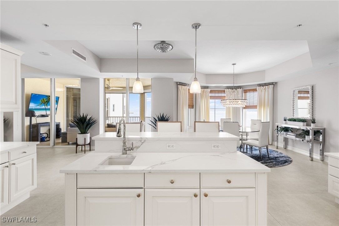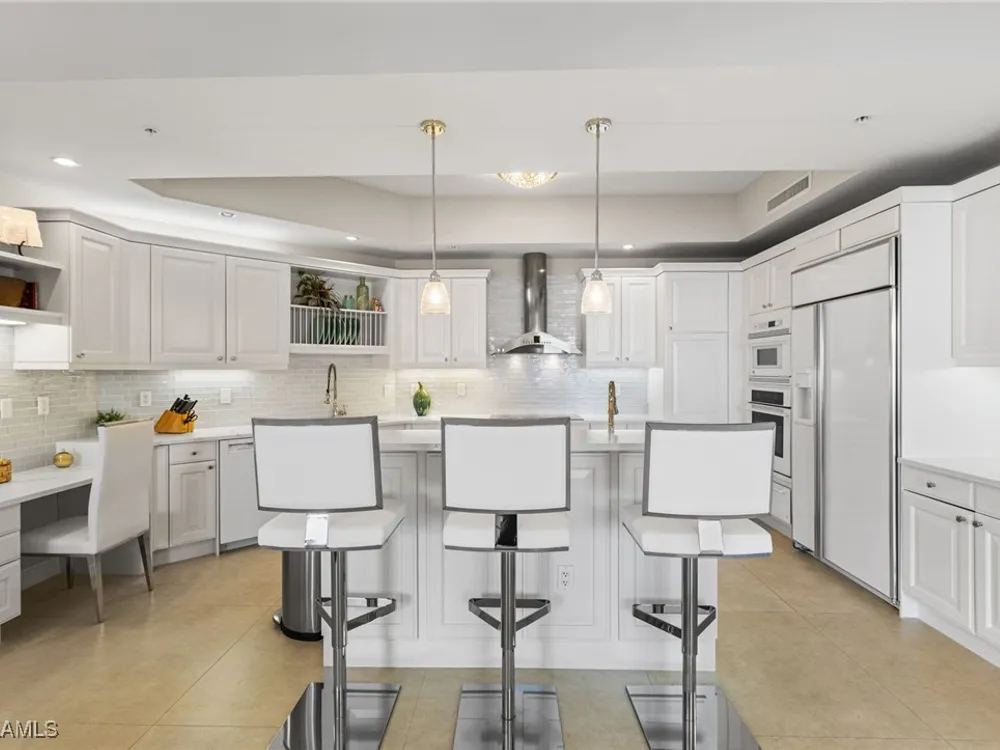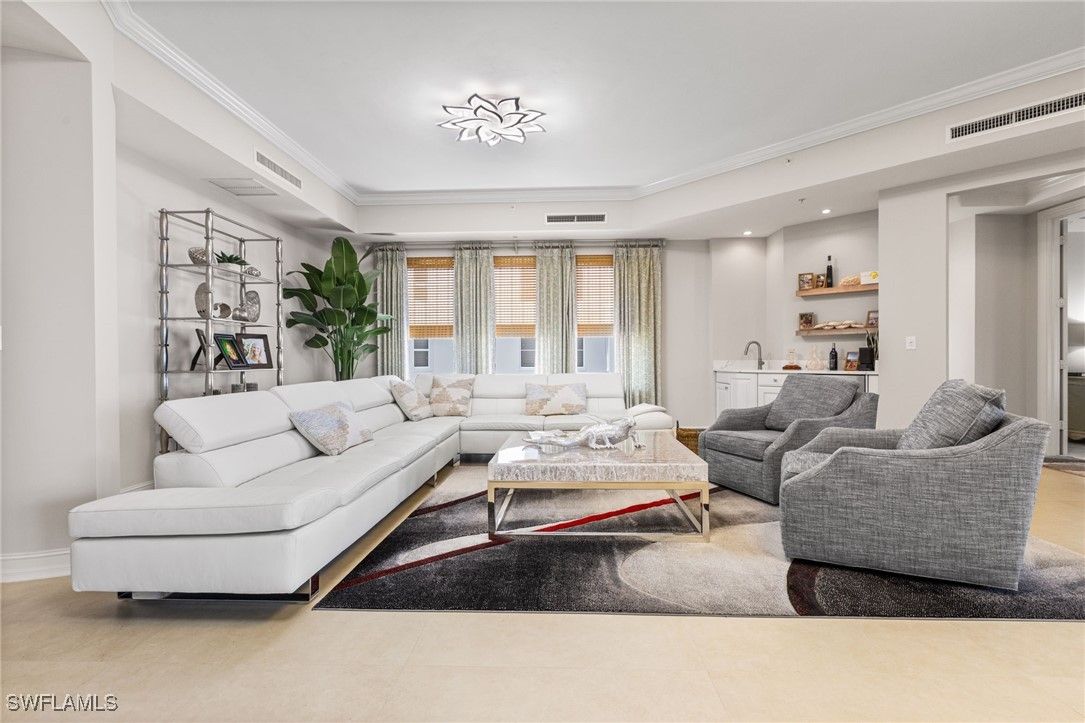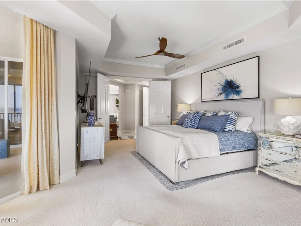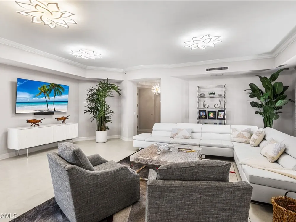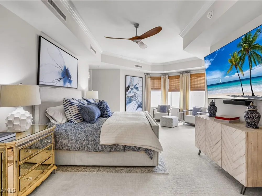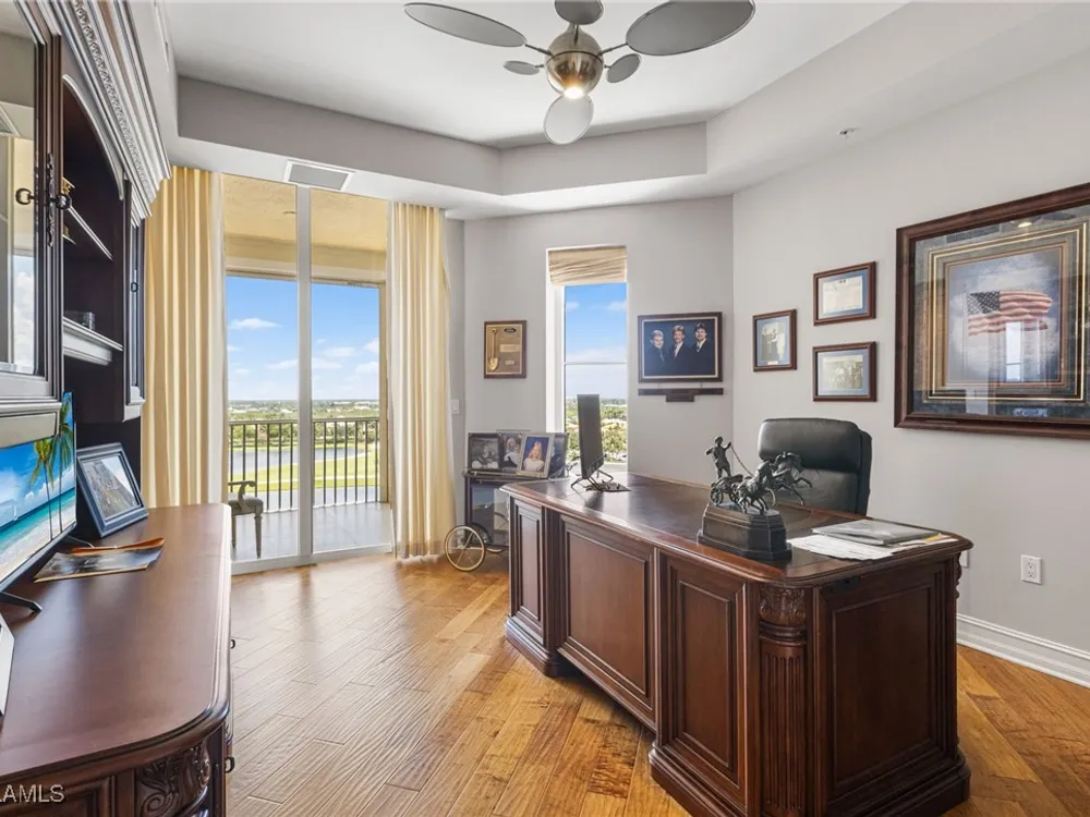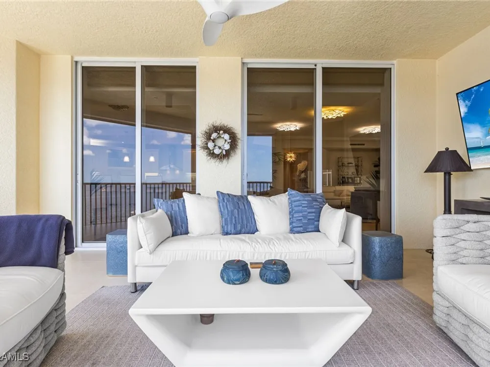 TEMPORARILY - SPORTS MEMBERSHIP JOINING FEE HAS BEEN REDUCED BY $32,000! Take advantage now of Gulf Harbour’s temporary reduction. For a limited time you can obtain a sports membership for a joining fee of $20,000. Light-Filled Luxury with Unmatched Sunset Views at The Paramount in Gulf Harbour Experience elevated coastal living in one of Gulf Harbour’s most prestigious addresses—The Paramount. This stunning Torriera floorplan residence features 3 bedrooms, 3.5 baths, and offers a sprawling 3,340 sq. ft. of beautiful living space, complete with breathtaking panoramic westerly waterfront views that deliver spectacular sunsets nightly is being sold turnkey. Step off your private elevator into an Artist Hand-Painted foyer that sets the tone for the thoughtful elegance throughout. Redesigned and remodeled in 2022, the home features a seamless flow of 24” x 24” quartz-infused flooring extending from the living area to the lanai. The gourmet kitchen is a showstopper, boasting marble countertops, white appliances, a warming drawer, center island, built-in desk, and ample space for both function and style. The great room opens to a riverfront lanai with sunshades, perfect for entertaining or relaxing while taking in the tranquil water views. The primary suite is a true retreat with its own waterfront seating area, dual marble vanities, zen soaking tub, walk-in shower, and dressing area. Enormous walk in closet.Both guest bedrooms are private ensuites, one featuring its own lanai with views of the golf course, lakes and downtown Ft. Myers. Additional highlights include: • Wet bar and wine cooler with marble counters • Artist Hand-Painted powder bath and unique lighting throughout • Crown molding, new carpet, and fresh interior paint • Hurricane-rated windows, doors, and shutters on both lanais • Large laundry room • A/C storage area • Two deeded parking spaces Enjoy resort-style amenities without ever leaving the building, including a community pool, fitness room, steam room, meeting room, and BBQ area—all within The Paramount. This residence represents the pinnacle of high-rise luxury and is move-in ready for the discerning buyer. Private memberships to Gulf Harbour are available for a separate purchase. Don't miss the 2 awe-inspiring videos!
