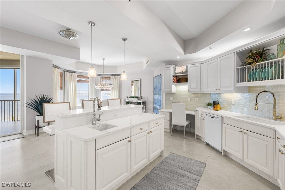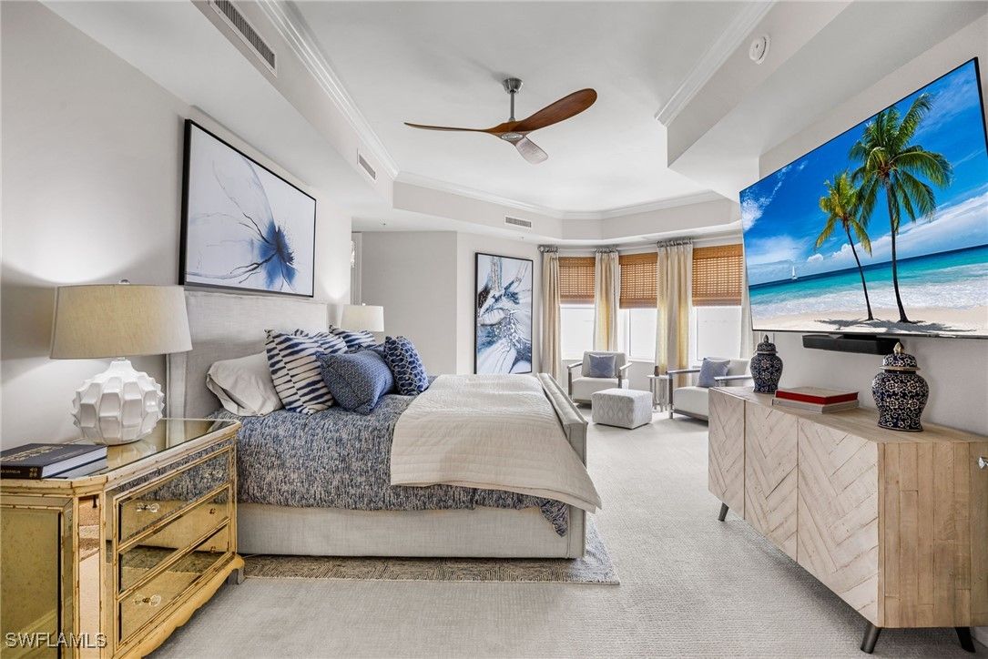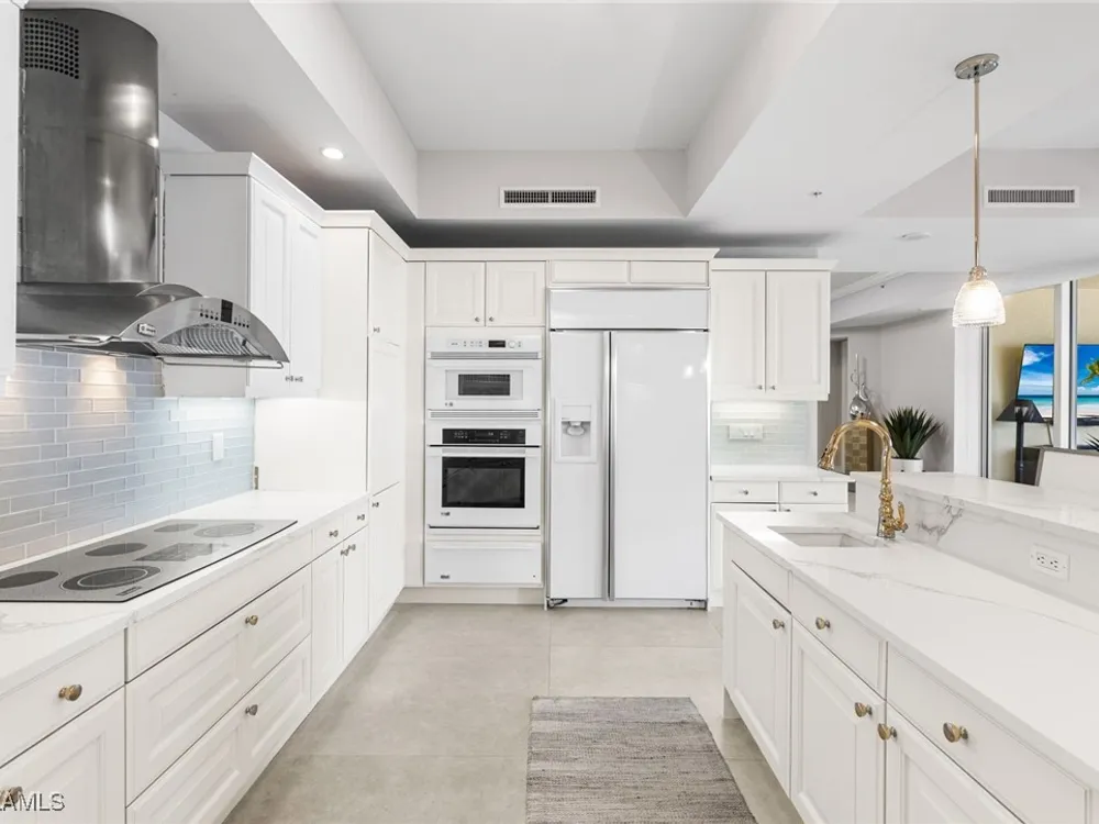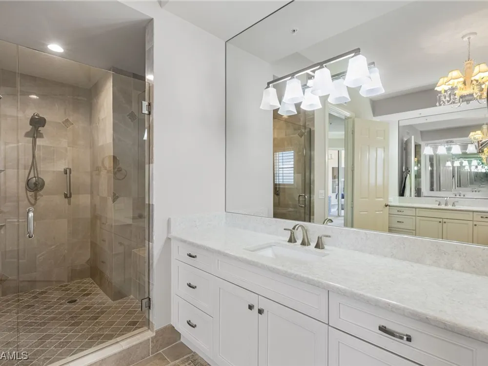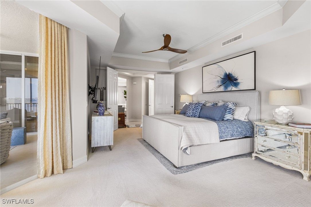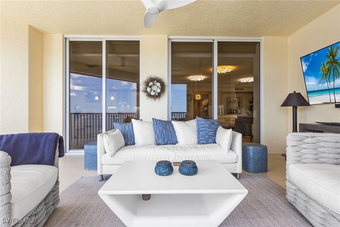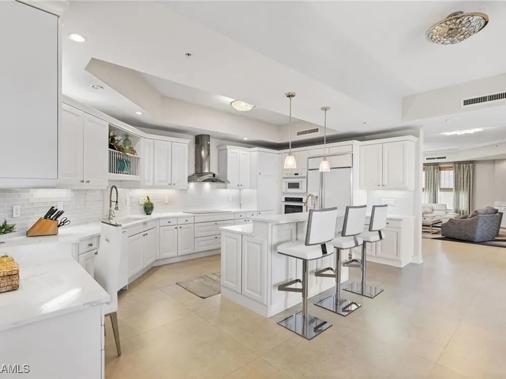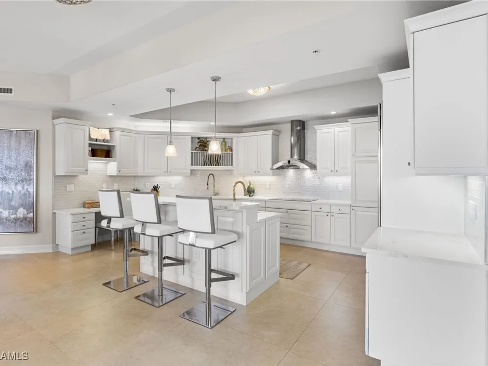 TEMPORARILY - SPORTS MEMBERSHIP JOINING FEE HAS BEEN REDUCED BY $32,000! Take advantage now of Gulf Harbour’s temporary reduction. For a limited time you can obtain a sports membership for a joining fee of $20,000. Light-Filled Luxury with Unmatched Sunset Views at The Paramount in Gulf Harbour Experience elevated coastal living in one of Gulf Harbour’s most prestigious addresses—The Paramount. This stunning Torriera floorplan residence features 3 bedrooms, 3.5 baths, and offers a sprawling 3,340 sq. ft. of beautiful living space, complete with breathtaking panoramic westerly waterfront views that deliver spectacular sunsets nightly is being sold turnkey. Step off your private elevator into an Artist Hand-Painted foyer that sets the tone for the thoughtful elegance throughout. Redesigned and remodeled in 2022, the home features a seamless flow of 24” x 24” quartz-infused flooring extending from the living area to the lanai. The gourmet kitchen is a showstopper, boasting marble countertops, white appliances, a warming drawer, center island, built-in desk, and ample space for both function and style. The great room opens to a riverfront lanai with sunshades, perfect for entertaining or relaxing while taking in the tranquil water views. The primary suite is a true retreat with its own waterfront seating area, dual marble vanities, zen soaking tub, walk-in shower, and dressing area. Enormous walk in closet.Both guest bedrooms are private ensuites, one featuring its own lanai with views of the golf course, lakes and downtown Ft. Myers. Additional highlights include: • Wet bar and wine cooler with marble counters • Artist Hand-Painted powder bath and unique lighting throughout • Crown molding, new carpet, and fresh interior paint • Hurricane-rated windows, doors, and shutters on both lanais • Large laundry room • A/C storage area • Two deeded parking spaces Enjoy resort-style amenities without ever leaving the building, including a community pool, fitness room, steam room, meeting room, and BBQ area—all within The Paramount. This residence represents the pinnacle of high-rise luxury and is move-in ready for the discerning buyer. Private memberships to Gulf Harbour are available for a separate purchase. Don't miss the 2 awe-inspiring videos!
