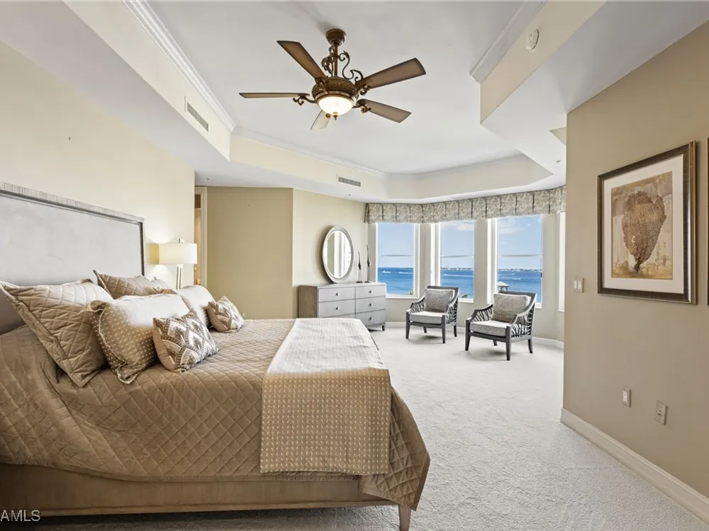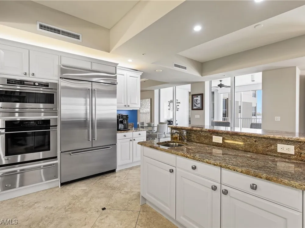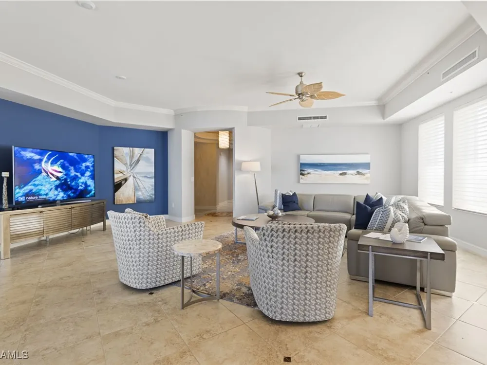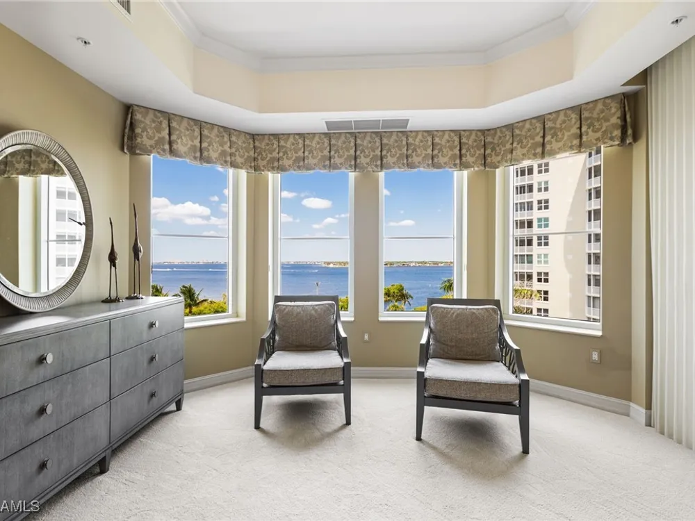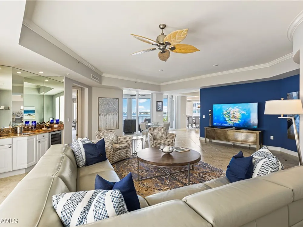 TEMPORARILY - SPORTS MEMBERSHIP JOINING FEE HAS BEEN REDUCED BY $32,000! Take advantage now of Gulf Harbour’s temporary reduction. For a limited time you can obtain a sports membership for a joining fee of $20,000. Welcome to The Paramount—the crown jewel of Gulf Harbour Yacht & Country Club. Luxury waterfront living at it's finest! This beautifully furnished 3-bedroom, 3.5-bath TORRIERA floorplan offers over 3,300 sq. ft. of refined living space, stunning river and golf course views, and a host of thoughtful improvements throughout. Step off the private elevator into your personal foyer and take in the expansive open-concept layout, perfect for entertaining. The elegant living and dining areas feature a full wet bar featuring a wine cooler,while the gourmet kitchen showcases beautiful granite countertops, a tumbled marble backsplash, under- and above-cabinet lighting, a KitchenAid dishwasher, GE Advantium Speed microwave oven, GE convection oven,Warming drawer and a side-by-side refrigerator. The island is perfect for prepping while taking in the awe inspiring views! The primary suite is a true retreat with a cozy sitting area, newer carpet, a custom walk-in closet, and a spa-like bath with separate granite topped vanities and a dressing area. Marble floors. Walk in shower and separate jetted jacuzzi soaking tub. Enjoy incredible sunsets and panoramic river views from the oversized screened lanai, accessible from the kitchen, family room, and primary suite. Two guest suites offer full ensuite baths—one featuring cherry hardwood flooring, and a private lanai with golf course views. Recent Enhancements Include: • Two new A/C units (within the last 4 years) • 2022: New 60-gallon water heater with circulating pump • Whole-house water softener/conditioning system by Kinetico • WaterCop main shut-off valve by Kinetico • RollSecure hurricane shutters • Newer washer & dryer • Refreshed interior paint in hallway, living room, kitchen, and dining area Additional amenities include Hunter Douglas shades, two under-building assigned parking spaces, and a large climate-controlled storage unit. The Paramount offers a private fitness center, conference room, social gathering room, and a resort-style pool and spa. Private memberships are available, granting immediate access to Gulf Harbour's world-class golf, marina, dining, and fitness facilities.