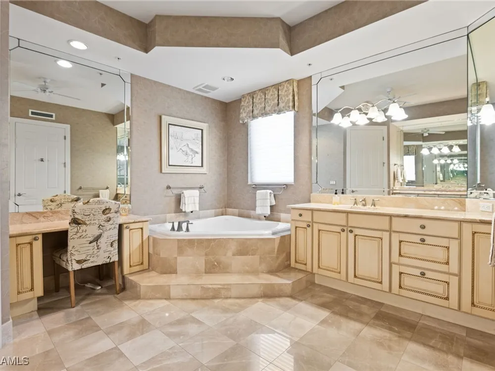 - Wet Bar, Breakfast Bar, Built-in Features, Bathtub, Tray Ceiling(s), Dual Sinks, Entrance Foyer, Eat-in Kitchen, Jetted Tub, Kitchen Island, Living/Dining Room, Custom Mirrors, Separate Shower, Cable TV, Bar, Walk-In Closet(s), Window Treatments, Elevator, High Speed Internet, Split Bedrooms