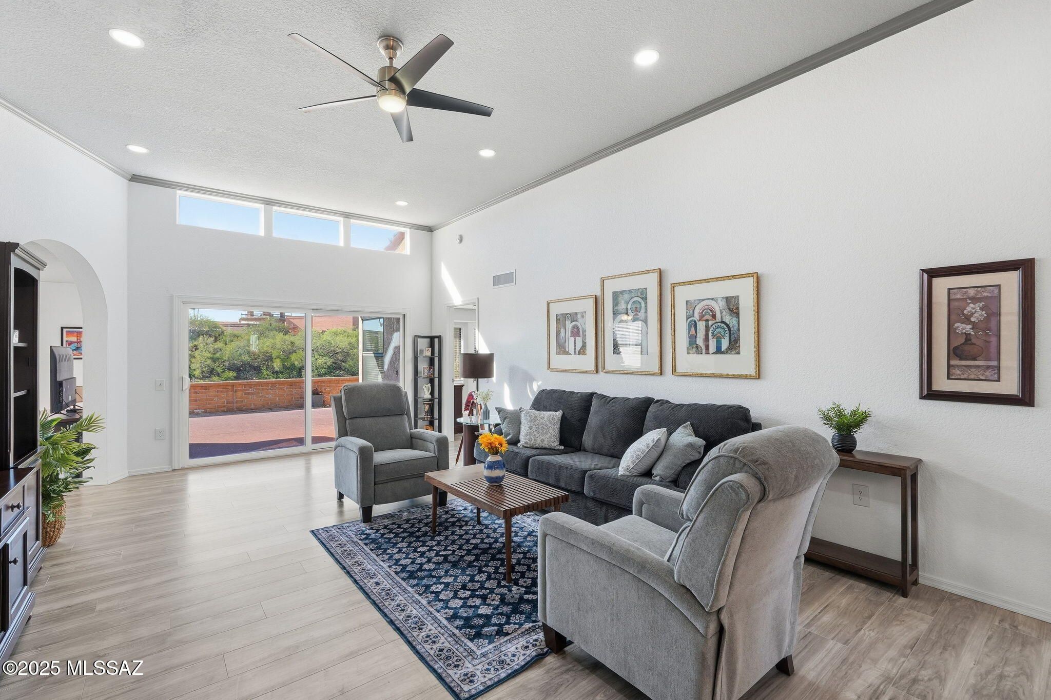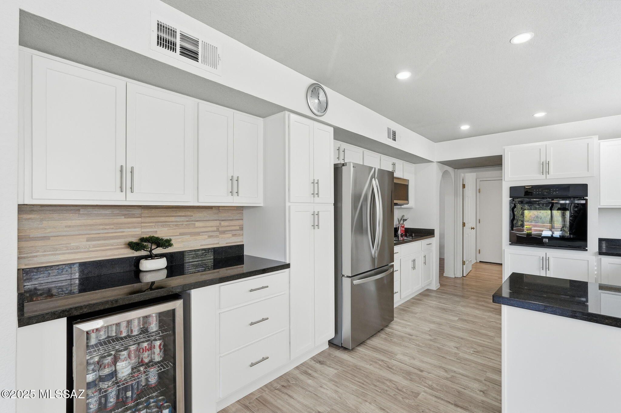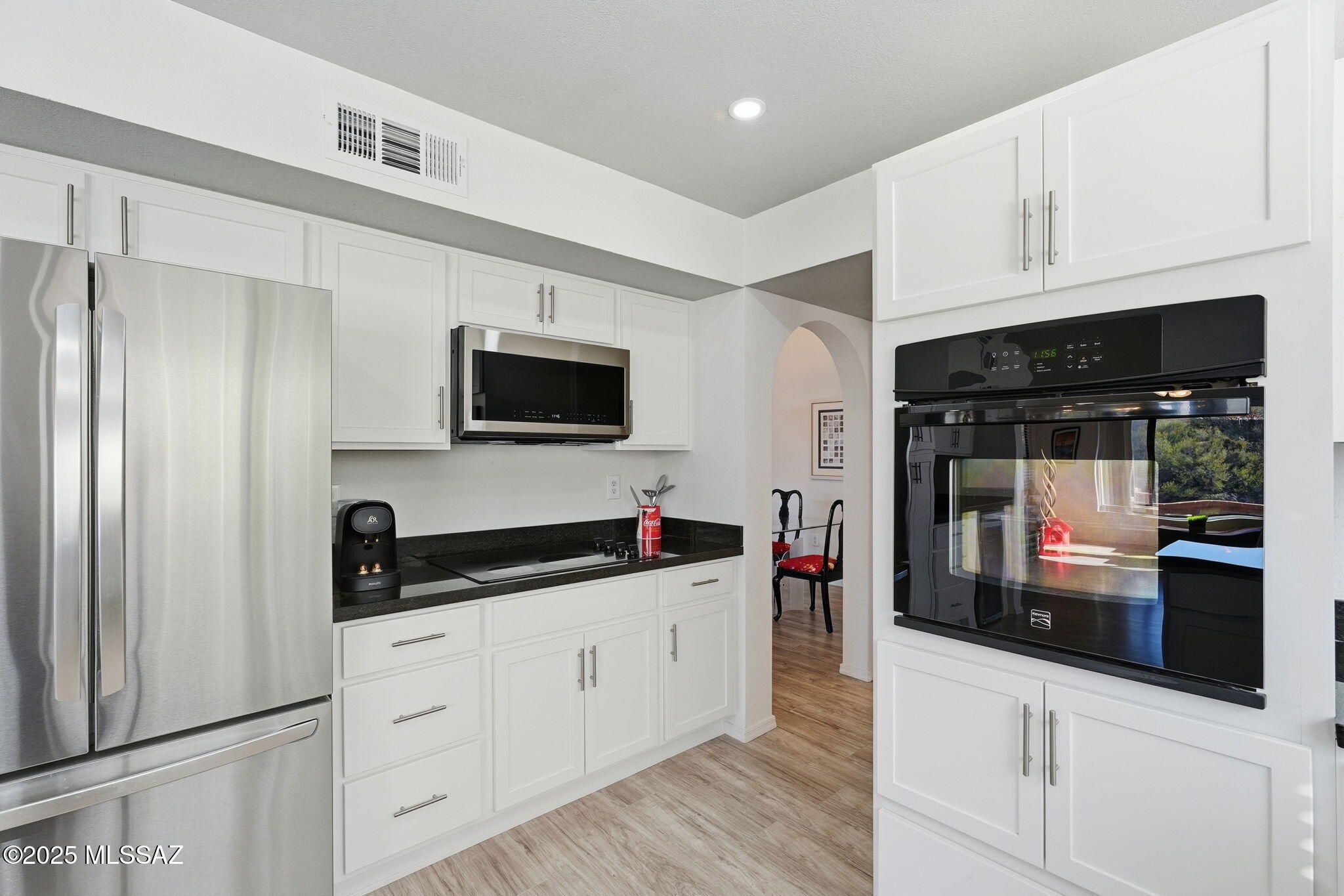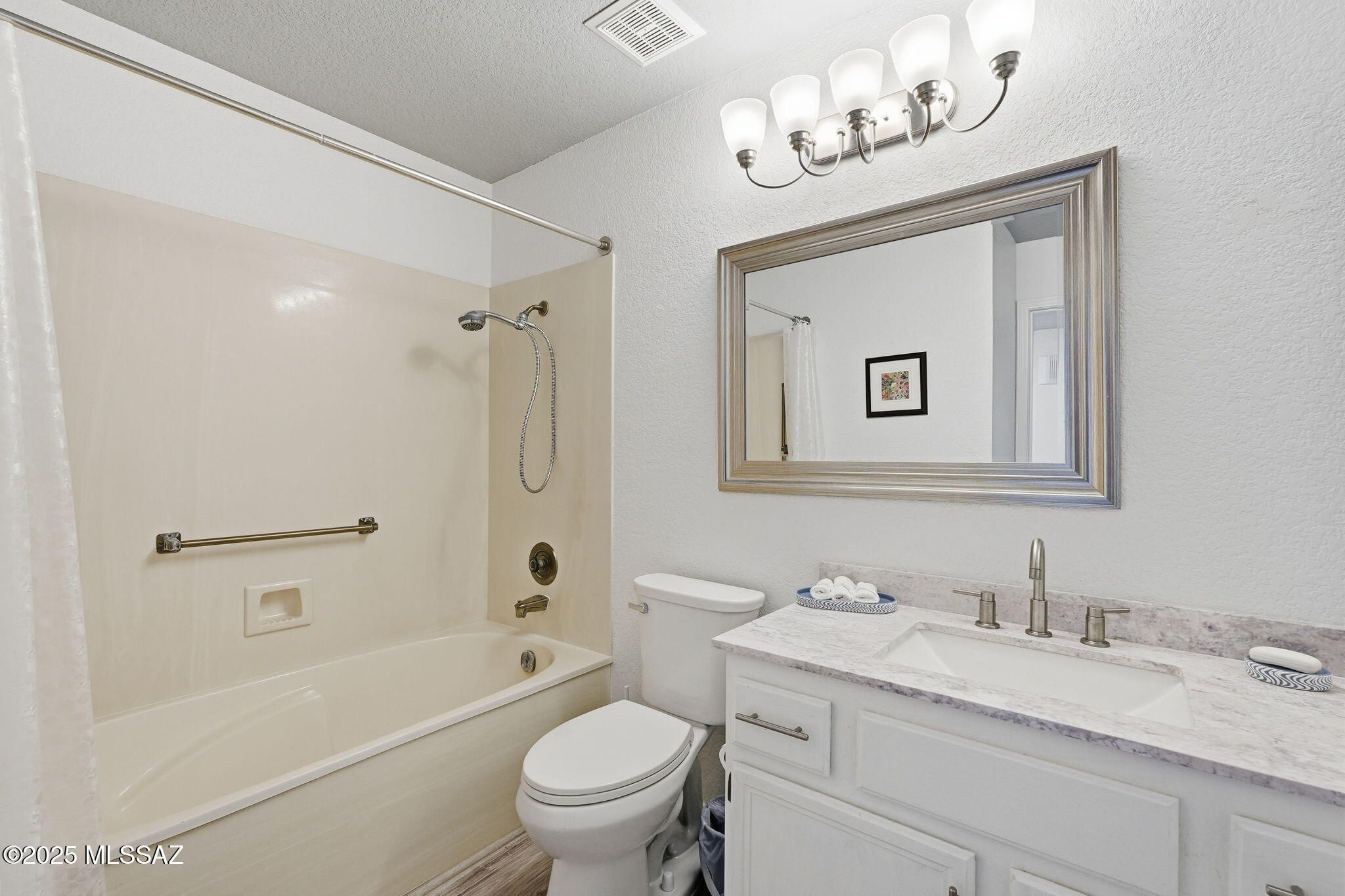 Beautifully updated 2BD/2BA Valencia model (1,753 sq ft) on an elevated golf-course lot in Sun City Oro Valley. Enjoy mountain and fairway views from the covered patio. This move-in ready home features a newly renovated kitchen with new shaker cabinets, new granite counters, and new stainless appliances. Updates include new luxury vinyl plank flooring, new recessed lighting, new blinds, new ceiling fans, and fresh interior and exterior paint. New roof (2024) and new HVAC (2024) provide peace of mind. Epoxy driveway, indoor laundry, and lemon tree complete this exceptional home. Resort amenities include golf, pools, fitness, tennis, pickleball, and clubs.