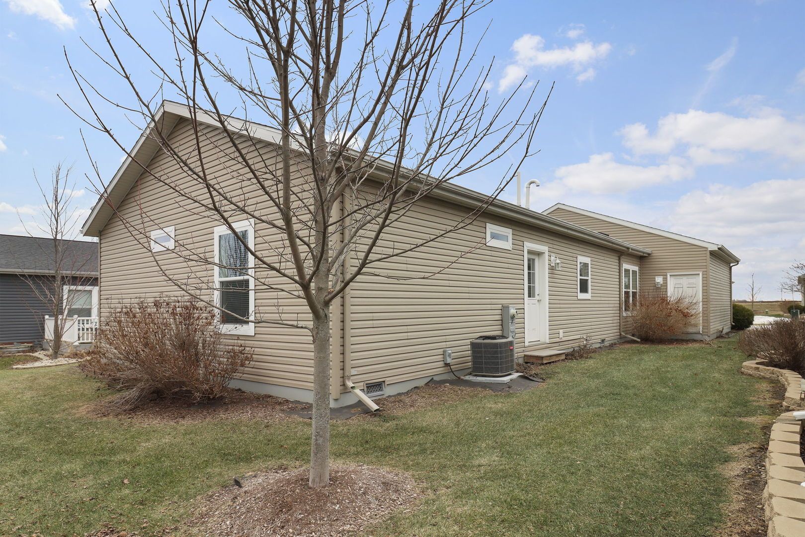 Built in 2018, this Rogers Park model in Saddlebrook Farms, a 55 plus active adult community, offers comfortable single level living designed for ease and everyday convenience. The home features two bedrooms, two full baths and an open layout with a spacious kitchen, center island and stainless steel appliances. Wood laminate flooring runs through the main living areas, keeping the space practical and easy to maintain. The primary suite includes a walk in closet and a private bath with double sinks. A second bedroom works well for guests or a home office. The attached two car garage allows you to pull in out of the weather, adds storage and makes winter days a little easier. Saddlebrook Farms offers a low maintenance lifestyle with amenities that include a clubhouse, fitness room, walking paths, lakes and community activities. Monthly assessments cover water, lawn care and snow removal, so exterior upkeep is taken care of year round. Move in, unpack and enjoy what matters most!