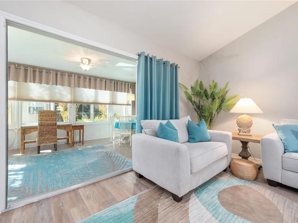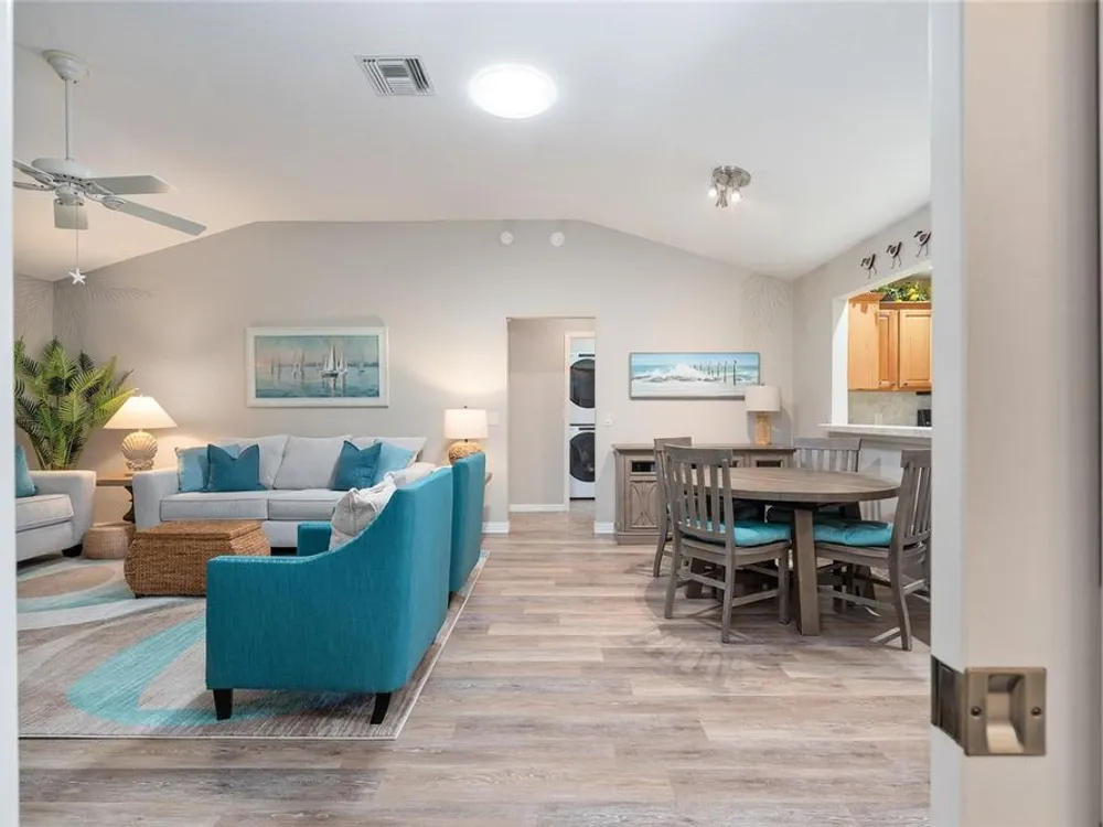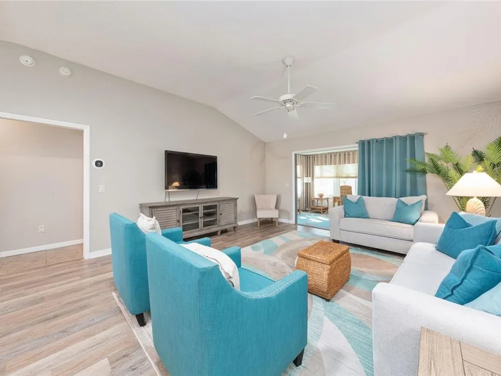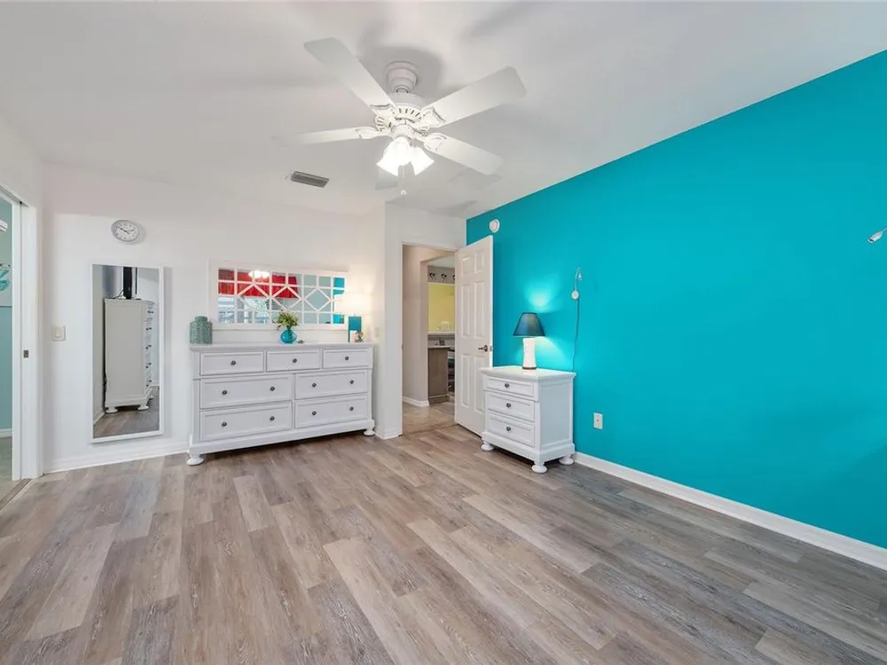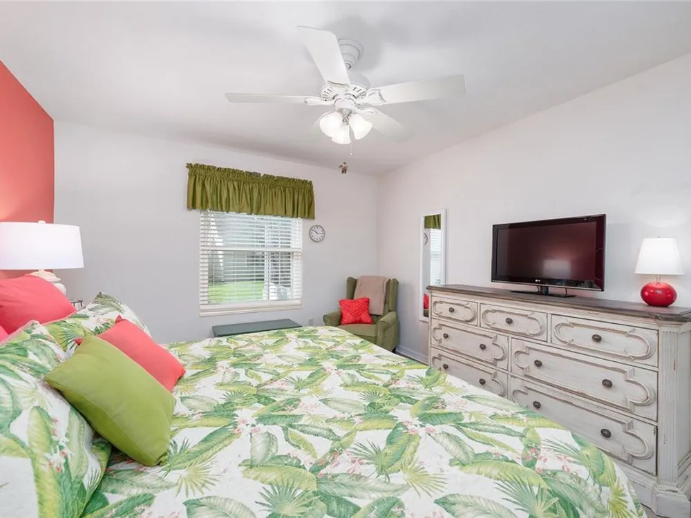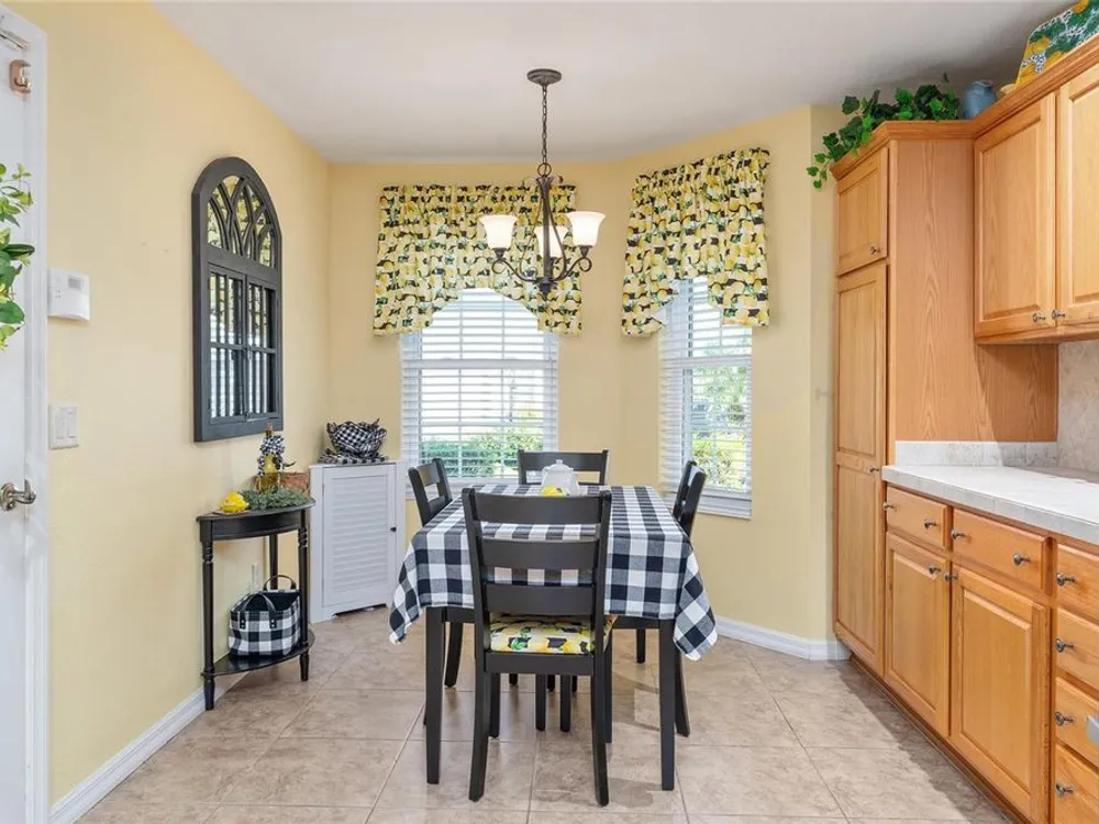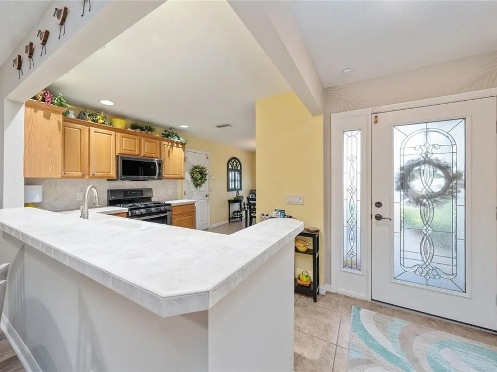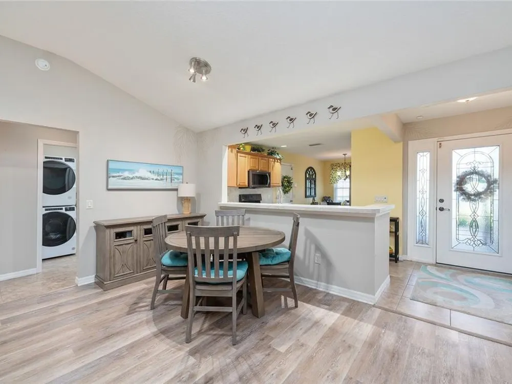 BOND PAID & TURN-KEY! This beautifully maintained 3/2 Wisteria Designer offers 1,512 sq ft under heat and air, plus an additional 240 sq ft bonus room. Every inch of this home reflects care, comfort, and attention to detail, with an inviting open layout that captures the relaxed, joyful spirit of life in The Villages®. The open-concept design fills the home with natural light, complemented by luxury vinyl plank flooring that adds warmth and elegance. Step through to the enclosed patio and covered outdoor area—perfect for morning coffee or evening gatherings with friends. The kitchen shines as the heart of the home, featuring newer smudge-resistant stainless-steel appliances, pull-out cabinetry, a spacious breakfast bar, and ample counter space. Its open sightlines connect seamlessly to the dining and living areas, making entertaining or everyday living effortless. The primary suite offers a peaceful retreat with vaulted ceilings, a large walk-in closet, and an ensuite bath with dual sinks, a walk-in shower, and abundant natural light—creating a true sanctuary for rest and relaxation. The bonus room adds 240 sq ft of heated and cooled flexibility, complete with full A/C ductwork, epoxy flooring, and a ceiling fan—ideal for a den, craft studio, home office, or second living area. Outdoors, enjoy an inviting enclosed patio with epoxy flooring, a ceiling fan, and a tranquil setting surrounded by low-maintenance landscaping. Whether entertaining or unwinding, this home offers the perfect blend of comfort, versatility, and classic Villages charm.