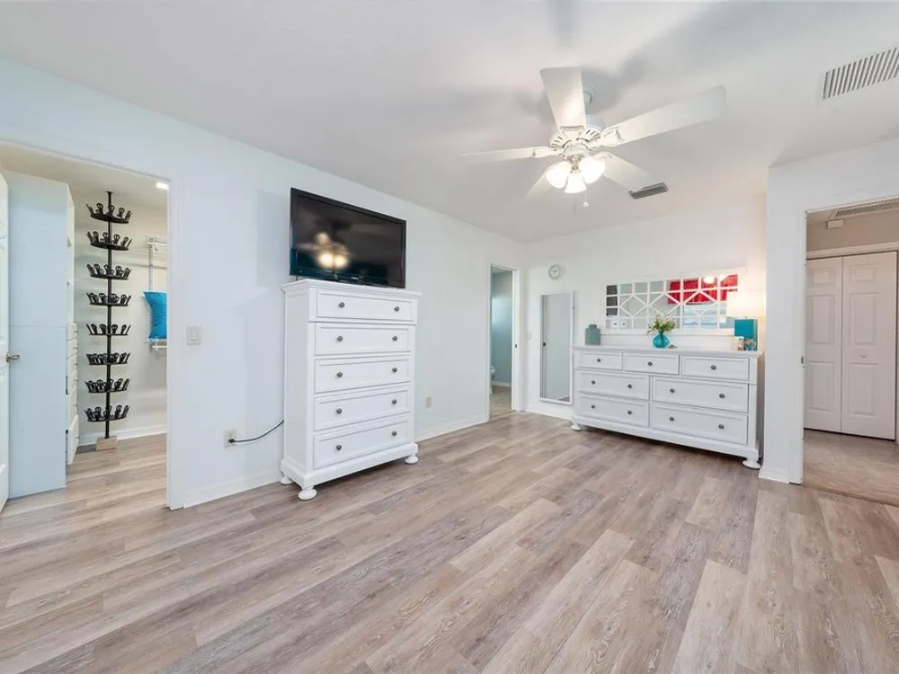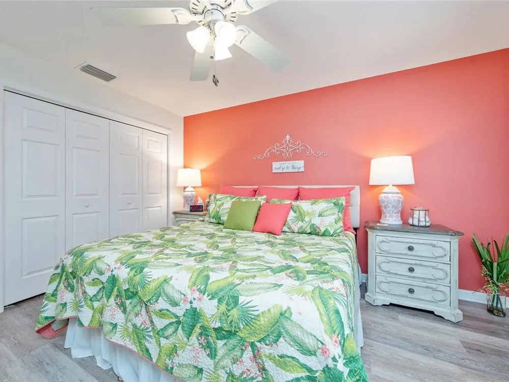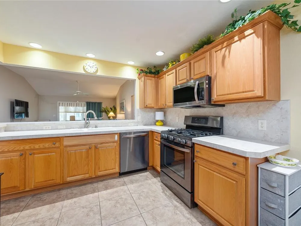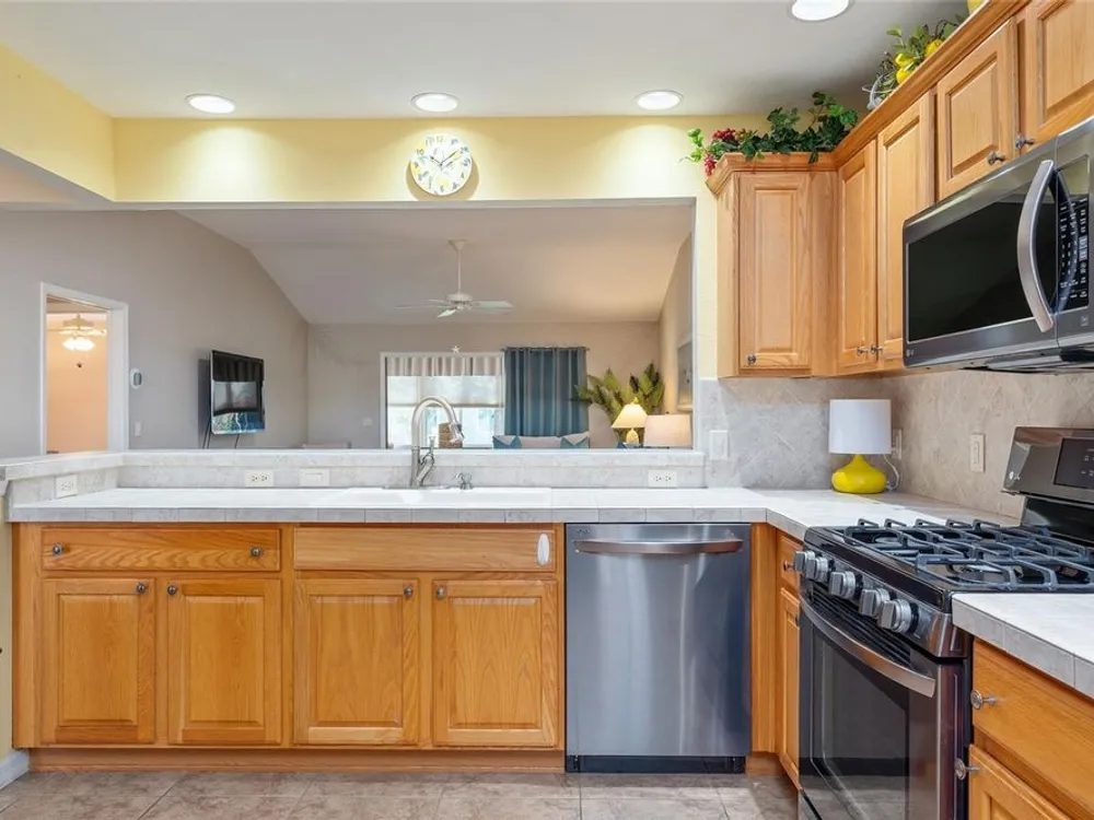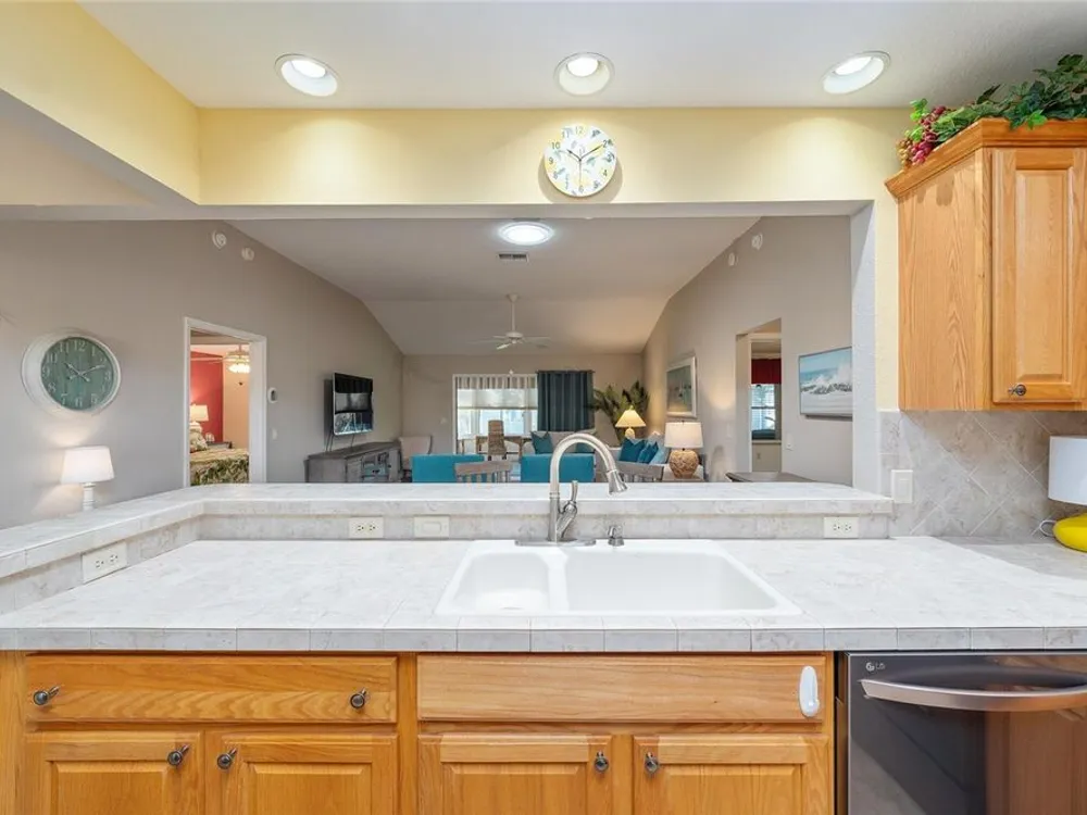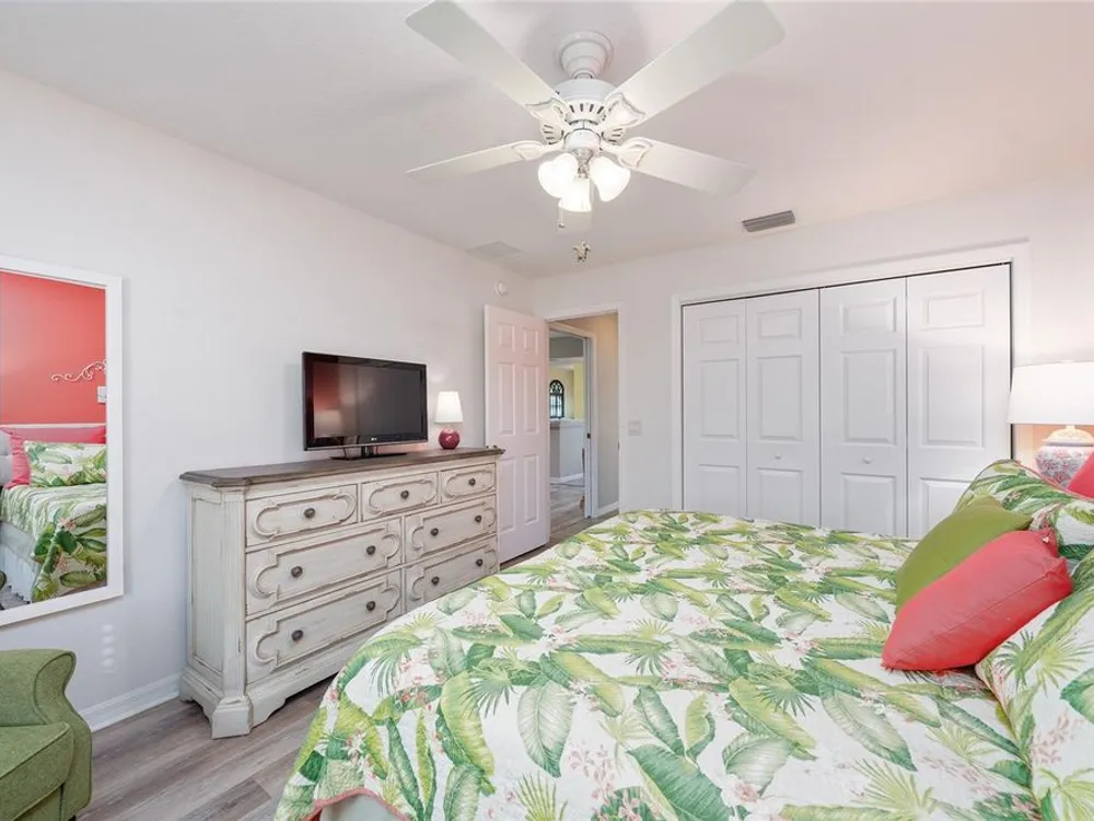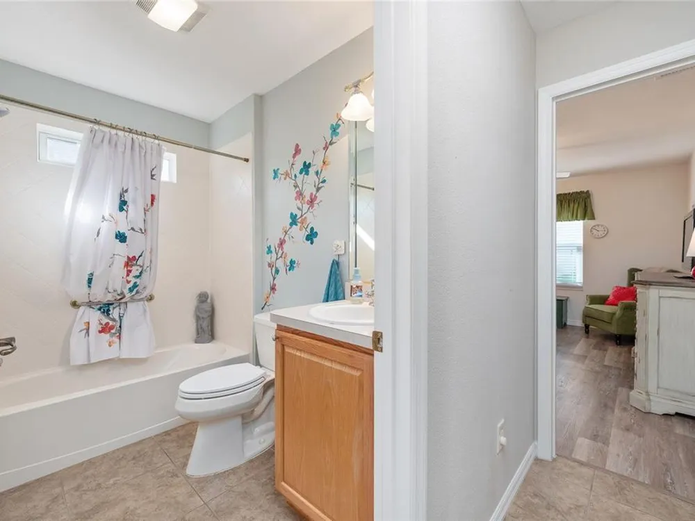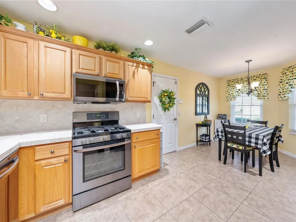 BOND PAID & TURN-KEY! This beautifully maintained 3/2 Wisteria Designer offers 1,512 sq ft under heat and air, plus an additional 240 sq ft bonus room. Every inch of this home reflects care, comfort, and attention to detail, with an inviting open layout that captures the relaxed, joyful spirit of life in The Villages®. The open-concept design fills the home with natural light, complemented by luxury vinyl plank flooring that adds warmth and elegance. Step through to the enclosed patio and covered outdoor area—perfect for morning coffee or evening gatherings with friends. The kitchen shines as the heart of the home, featuring newer smudge-resistant stainless-steel appliances, pull-out cabinetry, a spacious breakfast bar, and ample counter space. Its open sightlines connect seamlessly to the dining and living areas, making entertaining or everyday living effortless. The primary suite offers a peaceful retreat with vaulted ceilings, a large walk-in closet, and an ensuite bath with dual sinks, a walk-in shower, and abundant natural light—creating a true sanctuary for rest and relaxation. The bonus room adds 240 sq ft of heated and cooled flexibility, complete with full A/C ductwork, epoxy flooring, and a ceiling fan—ideal for a den, craft studio, home office, or second living area. Outdoors, enjoy an inviting enclosed patio with epoxy flooring, a ceiling fan, and a tranquil setting surrounded by low-maintenance landscaping. Whether entertaining or unwinding, this home offers the perfect blend of comfort, versatility, and classic Villages charm.