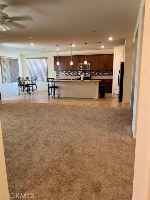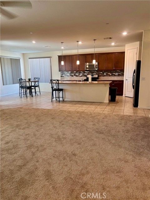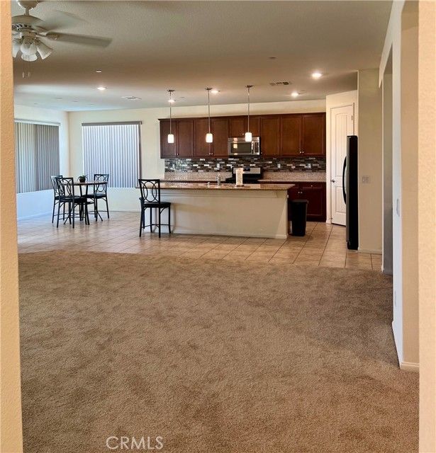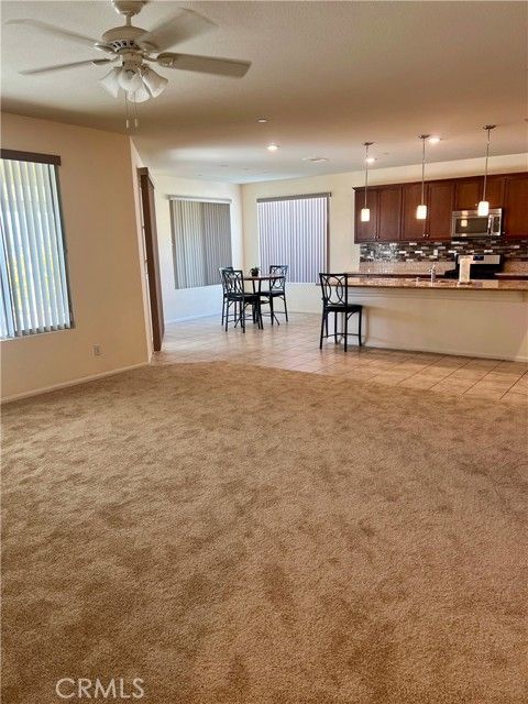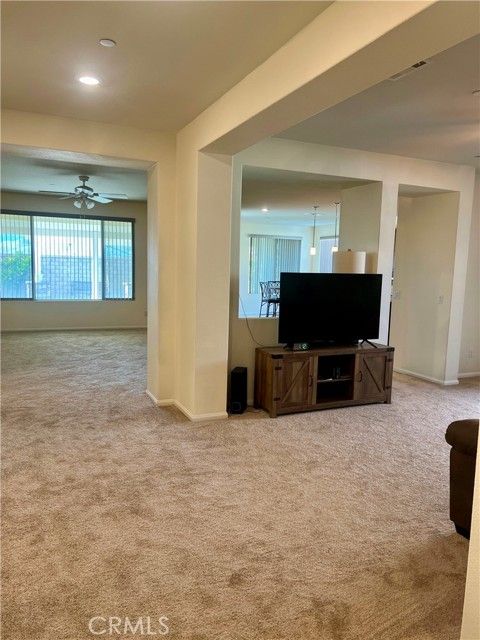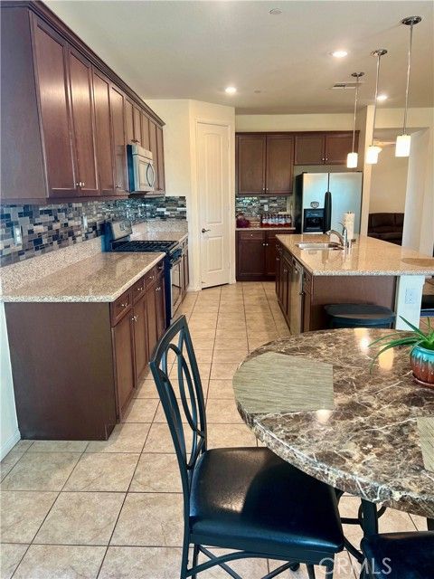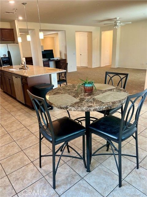 Welcome to 1429 Camino Sueno, a stunning single-story residence nestled in the highly sought-after 55+ Del Webb community in Hemet, California. This beautifully designed home offers approximately 2,796 sq ft of thoughtfully planned living space with three spacious bedrooms and three full bathrooms, perfect for comfortable everyday living and hosting guests. The open and inviting floor plan is bathed in natural light, centered around a chef's kitchen featuring granite countertops, upgraded maple cabinetry with pull-outs, stainless steel appliances, and a convenient walk-in pantry ideal for culinary enthusiasts. The adjoining dining and living areas provide a seamless flow, creating a warm and welcoming space for entertaining or relaxing. Each bedroom is paired with its own full bath, offering privacy and flexibility for visiting family or multi-use space. The owner's suite boasts a spa-inspired bath with dual vanities and a generous walk-in closet. Additional highlights include a built-in office/workspace, a separate laundry room, and a two-car attached garage. Outside, enjoy a low-maintenance backyard perfect for gardening, gatherings, or simply soaking in the beautiful Southern California weather. Residents of Del Webb enjoy access to resort-style amenities, including pools, fit