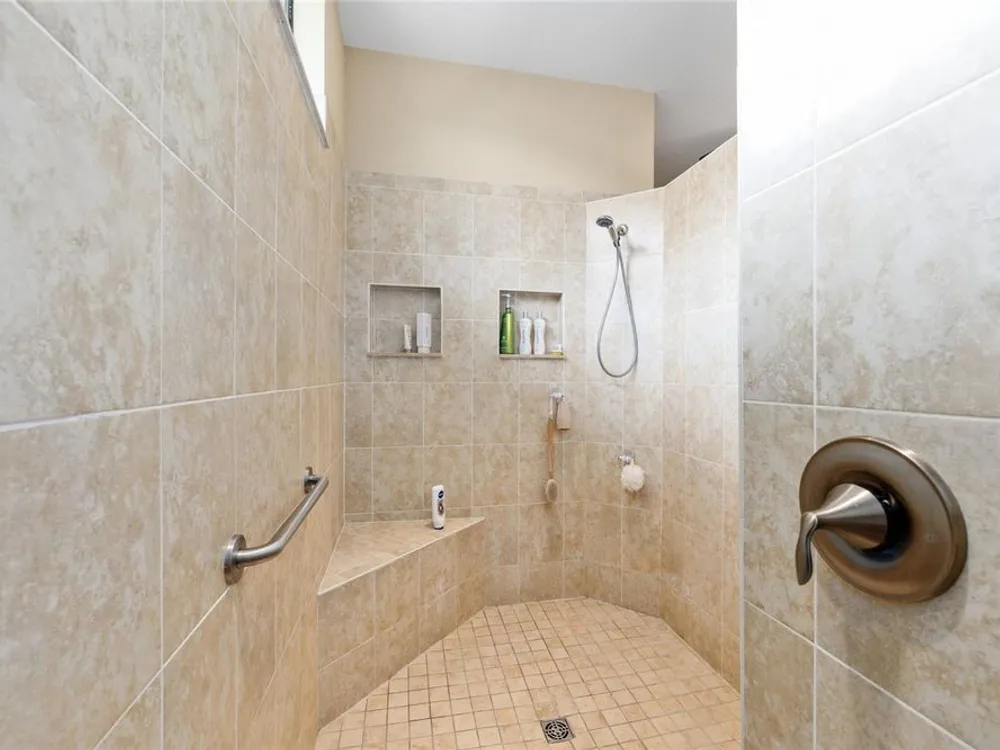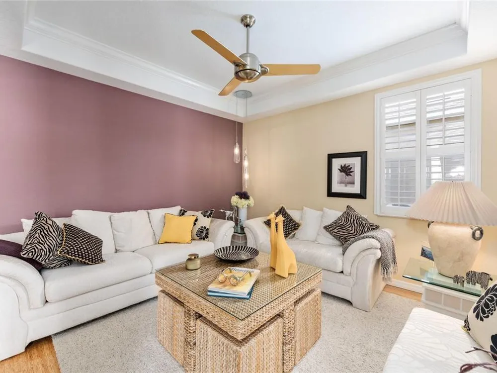 - Built-in Features, Ceiling Fan(s), Coffered Ceiling(s), High Ceilings, Open Floorplan, In-Wall Pest Control, Main Level Primary, Split Bedrooms, Stone Counters, Thermostat, Tray Ceiling(s), Walk-In Closet(s), Window Treatments