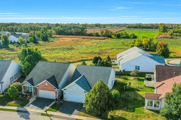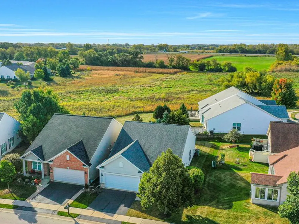 NICELY UPGRADED JAMES MODEL CLUB HOME ON A GREAT LOT ~ APPROX 1450 SQ FT BACKING TO NATURE ~ 2 BEDROOMS, 2 BATHS, 2 CAR INSULATED GARAGE ~ BRIGHT AND OPEN FLOOR PLAN ~ MANICURED LANDSCAPING ~ FRONT PORCH ~ BRICK ELEVATION ~ HARDWOOD FLOORING ~ SPACIOUS LIVING ROOM ~ KITCHEN INCLUDES MAPLE CABINETS, CORIAN COUNTERS, UNDER CABINET LIGHTING, EAT-IN KITCHEN, STAINLESS STEEL FRIDGE (2020) ~ NEW AIR CONDTIONER (2023) ~ BAY WINDOW IN PRIMARY SUITE, ALSO PRIMARY BATH HAS LARGE SHOWER WITH TWO BENCHES, DOUBLE BOWL VANITY, HUGE WALK IN CLOSET ~ SURPRESSION SYSTEM ~ LARGE CUSTOM PAVER PATIO WITH PERGOLA ~ ROOF REPLACED IN 2016 ~COME SEE THE FINEST ACTIVE ADULT AGE 55+ COMMUNITY IN THE MIDWEST!!!