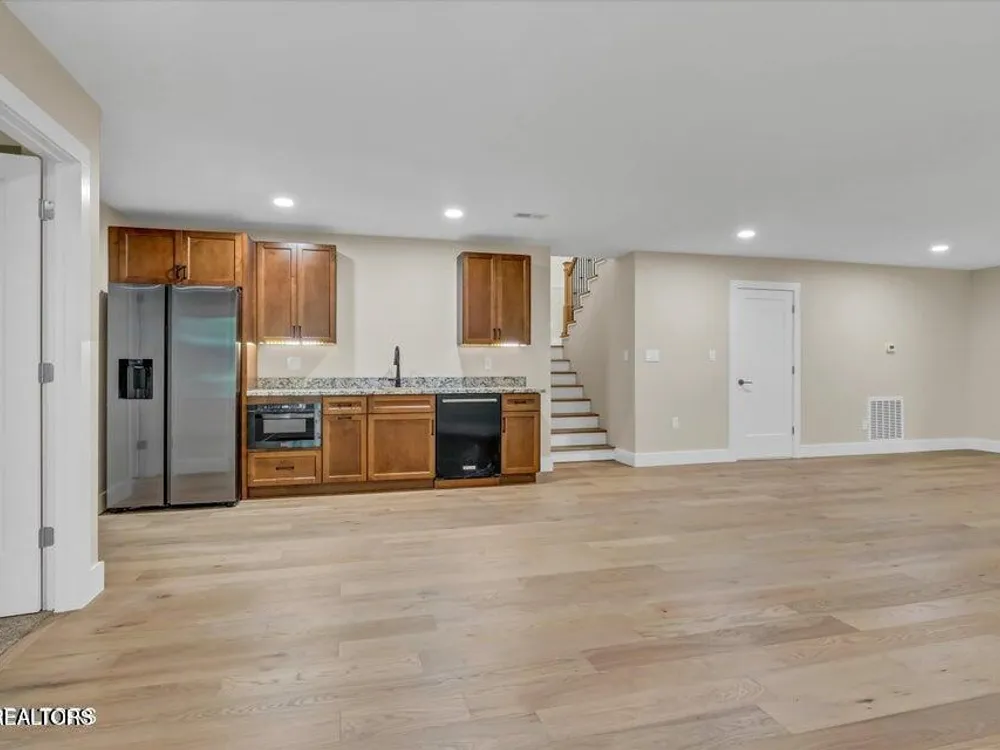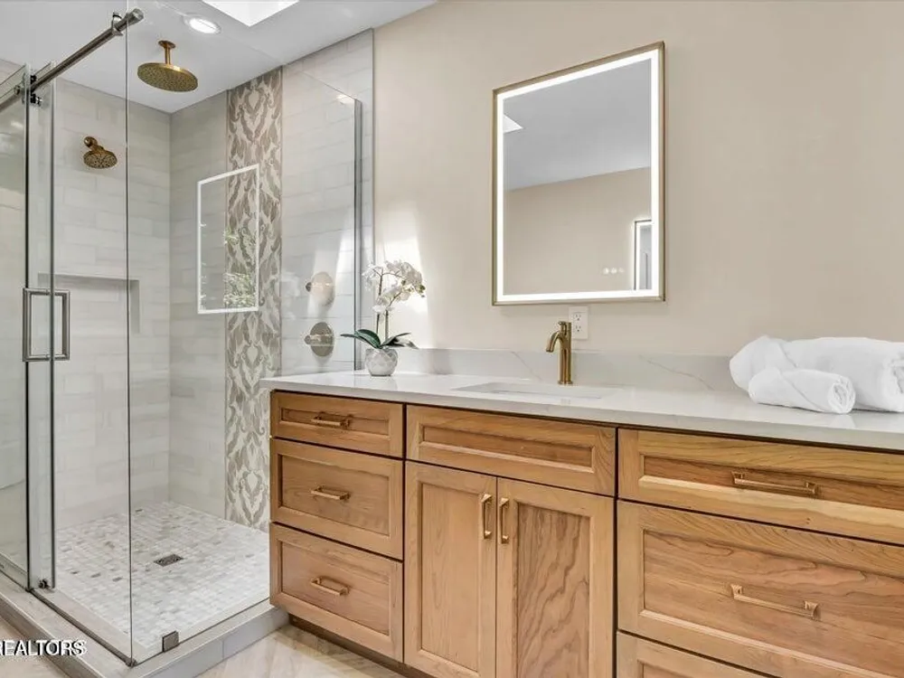 This elegant 3,100 sq ft main floor living home, with a finished lower level, has undergone a transformational $400K renovation. Everything is done! Enter to vaulted ceilings, hardwood floors, and abundant natural light from walls overlooking the expansive deck, private yard, and lake views. The spacious great room features a welcoming foyer, gas fireplace, and walk-up bar with hardwoods throughout. It adjoins a vaulted room that can serve as a formal dining room or office. The gourmet country kitchen boasts a huge island, Quartz countertops, high-capacity and luxury appliances, and undercounter/toekick lighting. Adjacent are the laundry/pantry and powder rooms, and garage with built-in storage. The other side of the house includes 3 bedrooms and 3 bathrooms, with 2 ensuites. The primary suite offers dual closets and vanities, a private toilet room and laser-cut marble tile accents. The 1,300 sq ft finished lower level is perfect for entertaining, storage, workshops, or fitness, with an additional ensuite and kitchenette. The home also features an evergreen entrance courtyard, new roof with gutter guards, new/young HVAC and water heater. Enjoy all the amenities and social activities of Tellico Village. Front and side lawns to be hydroseeded in the fall. The adjacent lot, 145 Inata Circle is included with the sale.