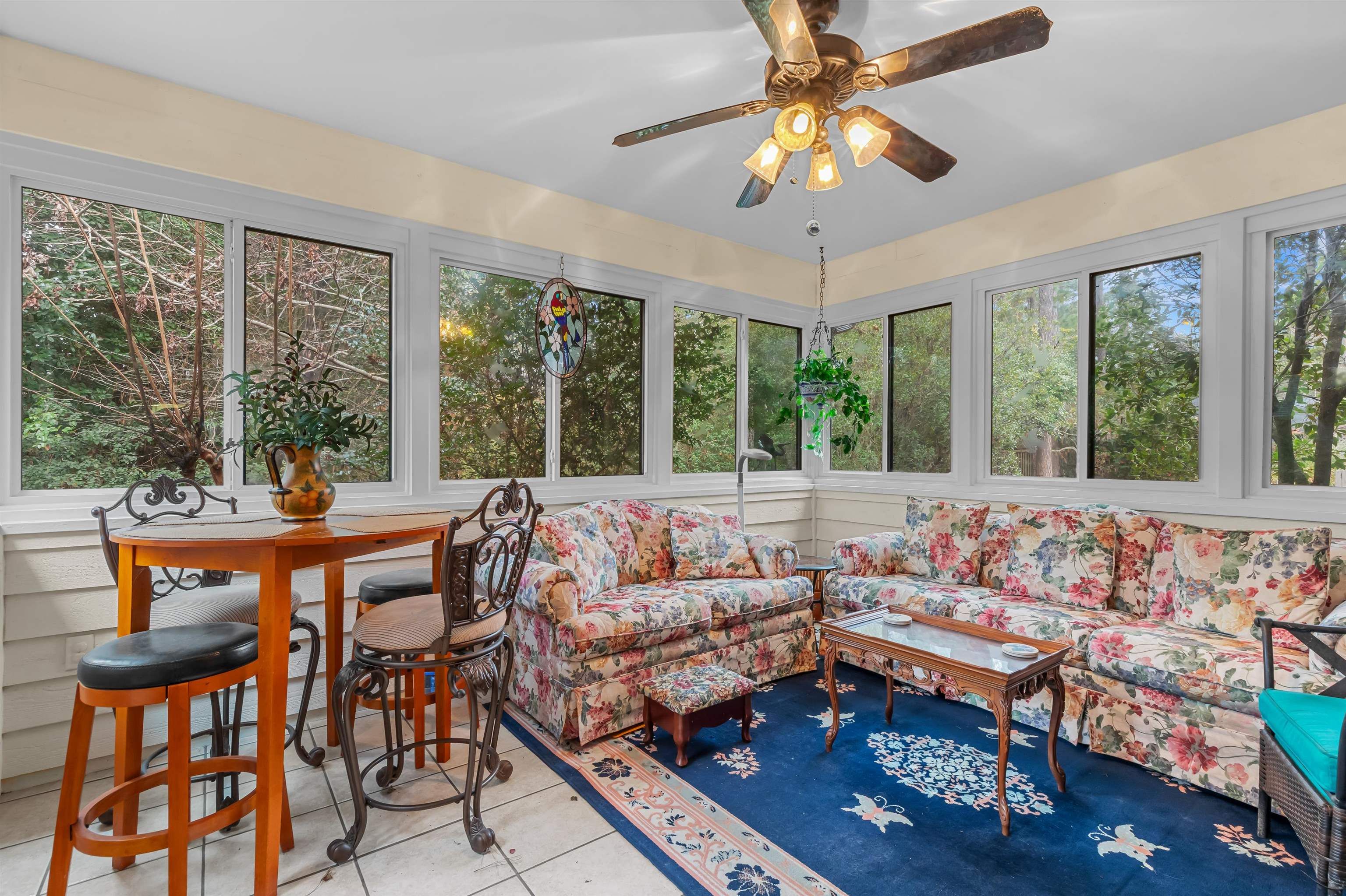 Welcome to 143 Myrtle Trace Dr, located in the highly sought-after 55+ community of Myrtle Trace. This gorgeous 3-bedroom, 2-bathroom home offers approximately 1,500 heated sq. ft. of open living space. The main living area features an elegant vaulted ceiling and a beautiful built-in entertainment center. A separate dining area and cozy breakfast nook provide plenty of space for entertaining. The oversized Carolina room and private backyard offer the perfect blend of comfort and tranquility for relaxing. The master suite is enhanced by a tray ceiling, a large master bath with a whirlpool tub, separate shower, and a huge walk-in closet. Additional upgrades include hardwood and tile floors, stainless appliances, a Murphy bed with built-in cabinetry in the guest bedroom, underground sprinklers, a central alarm system, neutral decor, and beautiful landscaping. Conveniently located near grocery stores, restaurants, entertainment, and the beach, this home is ideal for retirement living. Don’t miss your chance, call today to schedule your private showing! All measurements and square footage are approximate and not guaranteed. Buyer is responsible for verification.
