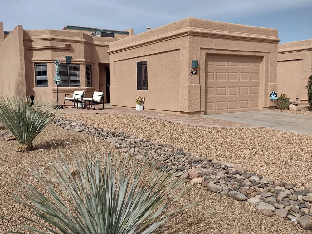 This beautifully updated townhome in Green Valley, AZ was built in 1996. It's a 2-bedroom, 2 bath home, and includes a sunroom and storage room. The property was remodeled in 2023. New items added by the current owner include: HVAC system, appliances (refrigerator and washer/dryer), water softening system, tiled roof, tinted windows on the vaulted ceiling, large patio at the front of the home (pavers), security system (with camera), window coverings (blinds) on all windows, grab bars in both bathrooms, matching tile replaced carpet in guest bedroom, termite contract, and 220 wiring ran to back of the house. This makes for a maintenance free home for years to come. Transferrable warranties or contracts available.