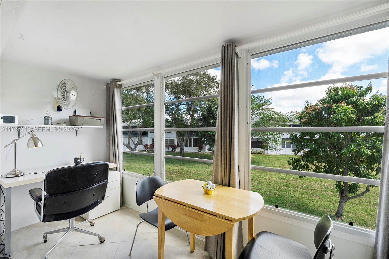 Welcome to your dream condo! This remodeled 1BD, 1.5BA is a turnkey gem, sold furnished. Located just a short stroll to one of the many pools, you can relax on your enclosed patio, which can double as a cozy home office and includes room for storage. Enjoy the serene garden view while sipping your morning coffee. The unit features a stunning open kitchen, ample closet space, and tile flooring throughout. Dive into the resort-style living of Century Village, an active 55+ guard-gated community that feels like a permanent vacation. With heated pools, tennis courts, a clubhouse, theater, fitness center, shuffleboard, pickleball, billiard room, and so much more, you'll never run out of things to do. Don't miss out on this one! Ready to move in and start living your best life!