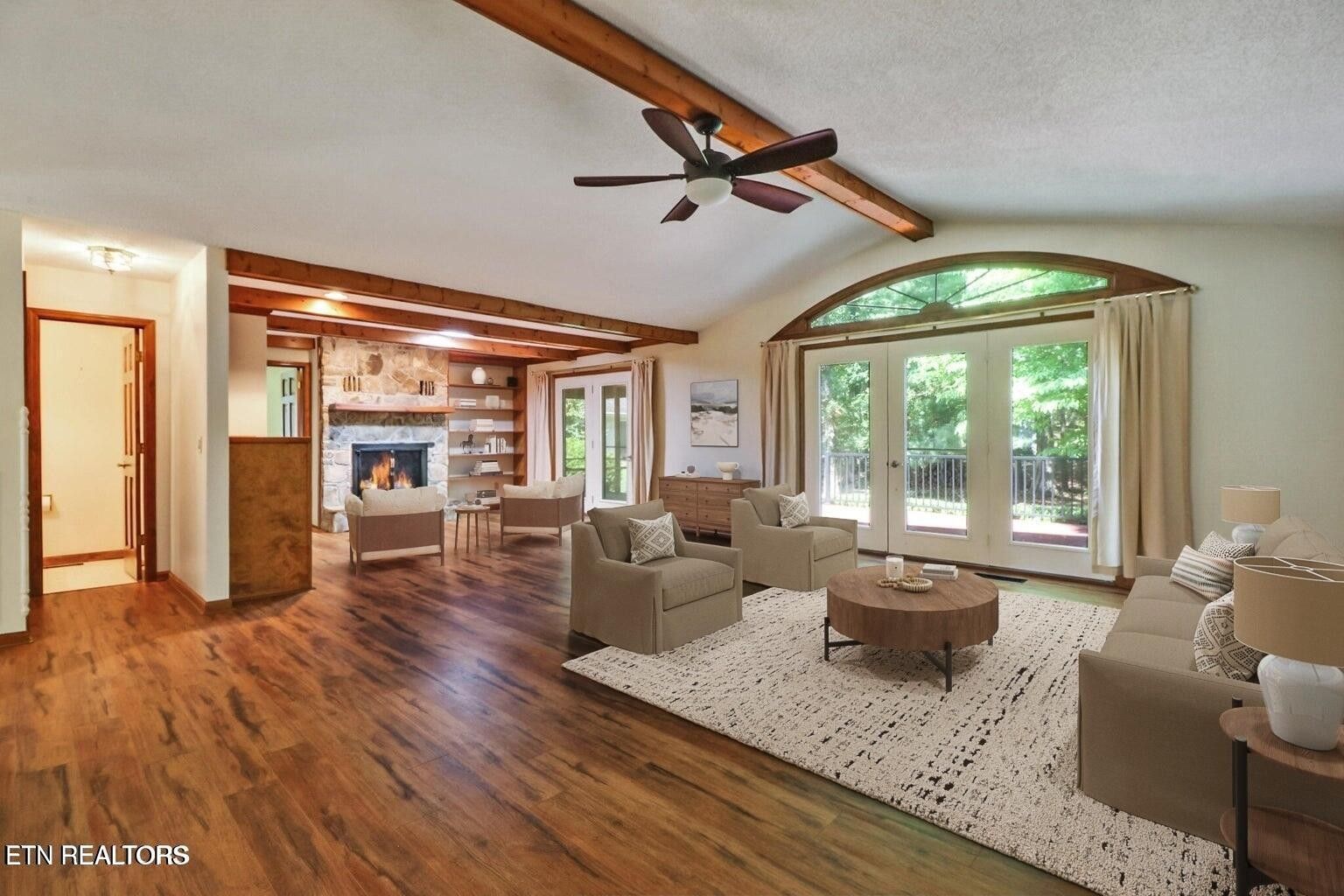 Located in close proximity to the Druid Hill Golf Course with gorgeous mountain vistas, this warm and welcoming ranch-style home has the rustic charm of a mountain retreat. The home features natural wood trim, wood cabinetry and wood flooring that are timeless. The wood beams and shelves along with a stone fireplace and wet bar add visual interest and rustic charm. The home features 3 bedrooms (split) and 2-1/2 baths. The formal living room blends seamlessly with the den. Solid wood pocket doors lead to a formal dining room off the living room. There is also a pocket door that separates the guest wing. This is perfect if you have an elderly parent or adult child living with you - there's room for a sitting area, bedroom and bath. The kitchen is bright and cheery with a skylight and bay window in the breakfast nook. The kitchen features lots of wood cabinetry including a pantry cabinet, solid surface countertops with tile backsplash and hardwood flooring. Down the hallway off the kitchen, the laundry area was relocated to the master bathroom. The water and electric is still there. At the end of the hall is space that could be an office or computer area. There is also access to the master wing through this hall. The master suite features a spacious master closet, master bath with step-in, tile shower, his and her vanities and the washer and dryer. The master bedroom has built-ins and access to a wonderful screened porch (re-screened in 2020). From the screened porch there is access to the large Trex deck (installed in 2020) with just a few steps down to the private back yard. The 2-Car garage has storage and a workshop area. Crawl space is encapsulated with a dehumidifier and sump pump. The hot water heater and HVAC were replaced in Dec, 2024. Please see all updates in the documents. Come take a look!