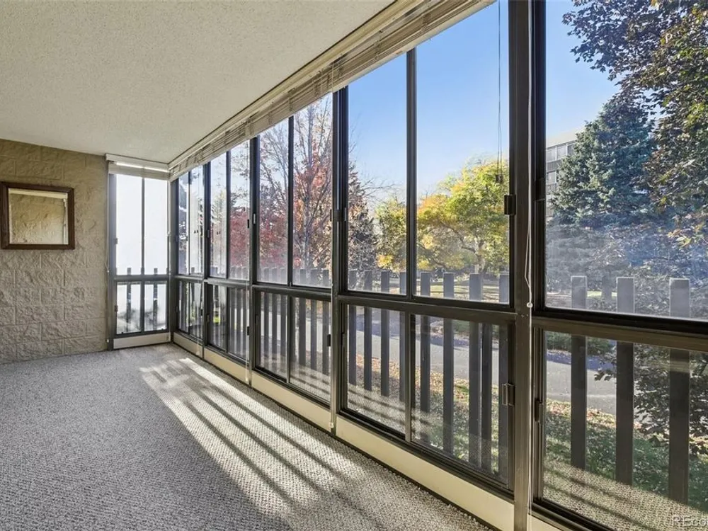 Opportunity knocks with one of the nicest residences to hit the market in Heather Gardens! Surrounded by the greenery of mature trees, this cheerful Somerset K model offers a uniquely private and peaceful setting—a rare find in this sought-after 55+ community and will not disappoint! With 2 bedrooms, an open-concept layout, and a truly special extra-large enclosed glass lanai, this home offers comfort, style, and a strong sense of connection to nature. Whether you're sipping your morning coffee or unwinding with a book, the lanai—spanning the entire length of the residence—feels like your very own private retreat, with two sets of sliding glass doors inviting the outdoors in! Inside, you'll find spacious rooms with freshly painted walls, a cheery white kitchen, and the added convenience of in-unit laundry. A secured underground parking space ensures ease and peace of mind year-round and 2 dedicated storage units are an added convenience. Located on over 200 acres of beautifully maintained grounds, Heather Gardens offers an active, resort-like lifestyle tailored for 55+ adults. Residents enjoy access to a beautiful clubhouse, complete with on-site staff, a business center, billiards room, indoor pool, sauna, hot tub, and a fully equipped fitness center. Outdoor amenities abound, including a seasonal pool, tennis courts, and picturesque gardens and ponds. Residents enjoy access to the on-site Rendezvous Restaurant, and a Par 32, 9-hole golf course. You’ll have plenty of opportunities to connect, stay active, and thrive. And with a central location just minutes from I-25, medical facilities, shopping, and dining, everything you need is right at your doorstep. Don’t miss your chance to live in one of Heather Gardens’ most desirable residences—Welcome Home!!!