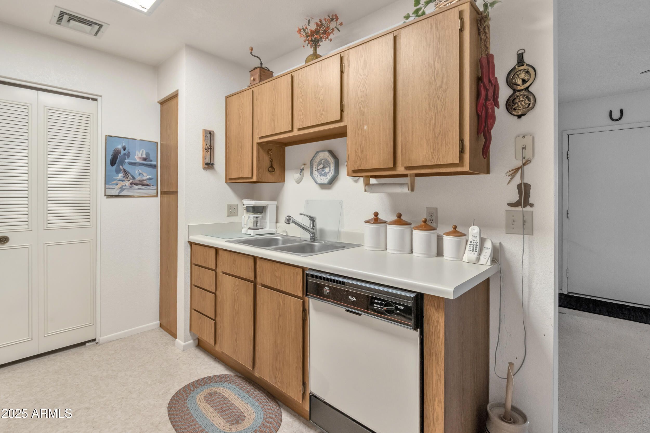 We invite you to explore resort-style living in prestigious, guard-gated 55+ Sun Village! This well-designed home offers a kitchen, inside laundry, and private patio.Step into a vibrant, active lifestyle with a 47,000 sq ft recreation center and resort-style amenities including an 18‑hole par‑3 walking golf course & Pro Shop, scenic lakes with walking/biking trails, heated pool & spa with waterfall and shaded cabanas, Art Center, Fitness Center, Library, Billiards, Horseshoe Pits, Kachina Ballroom, Multi-Purpose Room (bingo/movies/concerts/video spot), Sewing Room, Resident Lounge, Gift Gallery, Salon, Church, RV storage, Shuffleboard, Pickleball, Tennis, Ping-Pong, Woodshop, Memorial Rose Garden, plus more clubs, classes & events—all within walking distance of shop