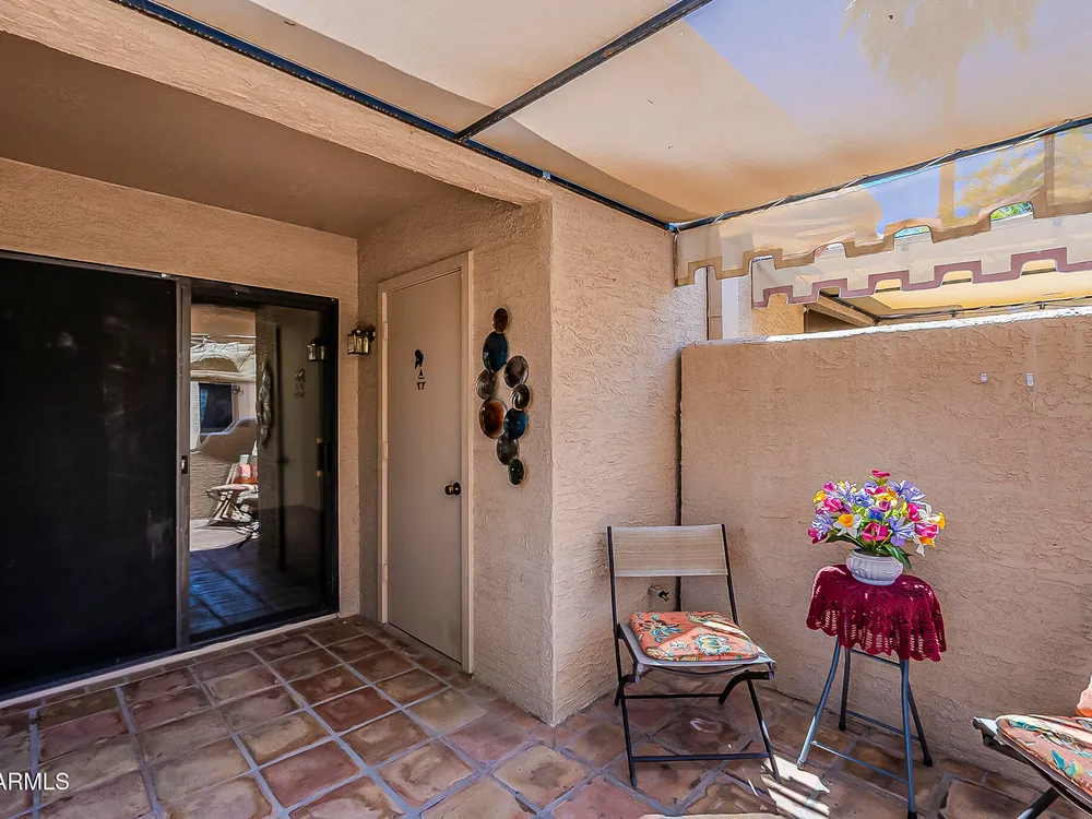 This condominium/townhouse features approximately 938 square feet of living space with two bedrooms and two bathrooms. The open concept floor plan offers a comfortable and efficient layout. The home boasts newer luxury vinyl flooring, providing a modern and durable surface. The private patio offers an outdoor space for relaxation or entertaining. The arched entry adds an elegant touch, while the newer windows allow ample natural light to fill the interior. An extra storage unit provides additional space, and the mature landscaping with beautiful palm trees creates a serene atmosphere. The homeowner's association maintains the common areas, ensuring a well-kept community. This home would be ideal for those seeking a low-maintenance lifestyle with desirable features in a pleasant setting. Welcome to Sun Village, a 24 hr guarded & gated adult community located in the heart of Surprise, Arizona. The community amenities are vast with an 18-hole, par three golf course, Pima Lake, an amazing community center featuring a huge heated swimming pool and spa, tennis and pickle ball courts, shuffleboard, horseshoe pits, exercise facilities, billiard room, sewing and crafts room and world class performers for community members and their families to enjoy. Just minutes away from the community you'll find the Spring Training facilities for MLB's Texas Rangers and Kansas City Royals. Don't miss this opportunity!
