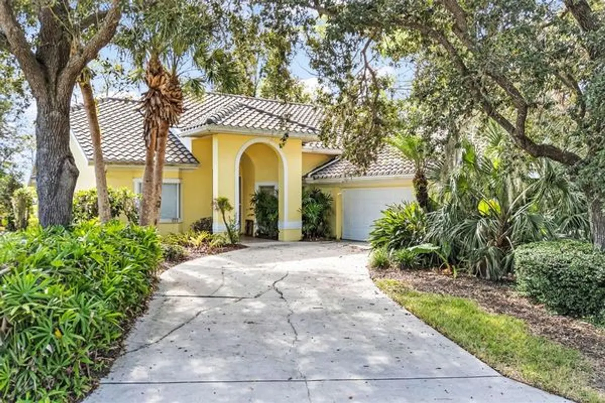 One or more photo(s) has been virtually staged. Welcome home to the last house on a private cul-de-sac in the highly sought-after Riverwood community! This beautifully appointed 3-bedroom, 2-bathroom, 2-car-garage residence offers the perfect blend of comfort, privacy, and resort-style living. Step inside to find vaulted ceilings, a light and bright open floor plan, and a stylish kitchen featuring granite countertops, stainless steel appliances, and a dining area with windows overlooking the lanai and pool. The spacious primary suite offers walk-in closets, sliding door access to the lanai, and an ensuite bath with dual sinks, a garden tub, and a separate step-in shower. On the opposite side of the home, two guest bedrooms provide privacy—one with its own door leading to the lanai. The guest bath includes dual sinks and a step in shower. A large indoor laundry room with a utility sink and custom window treatments complete the interior. Step outside to your private oasis featuring a sparkling pool with a new cage (2023) and a 2021 roof for peace of mind. Surrounded by lush landscaping and tranquil wooded views that extend toward the golf course, this backyard retreat is perfect for relaxing or entertaining year-round. As part of the vibrant Riverwood community, residents enjoy a par-72 championship golf course, a state-of-the-art fitness center, a resort-style pool, pickleball courts, and Har-Tru tennis courts. Beyond the gates, you’ll find easy access to world-class fishing, boating, waterfront dining, shopping, and the beautiful sandy beaches of the Gulf. Conveniently located between Sarasota and Fort Myers, this home offers the best of comfort, convenience, and resort-style living. Schedule your private showing today and experience all that Riverwood has to offer!