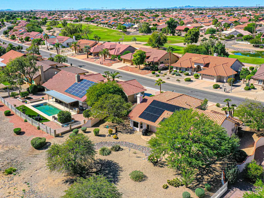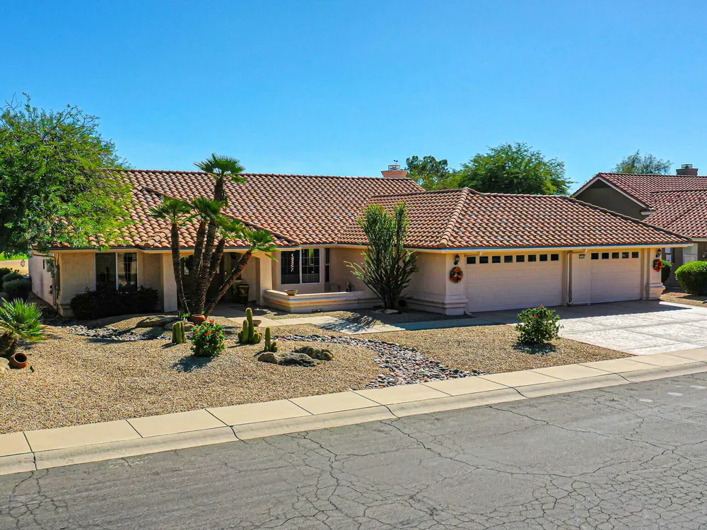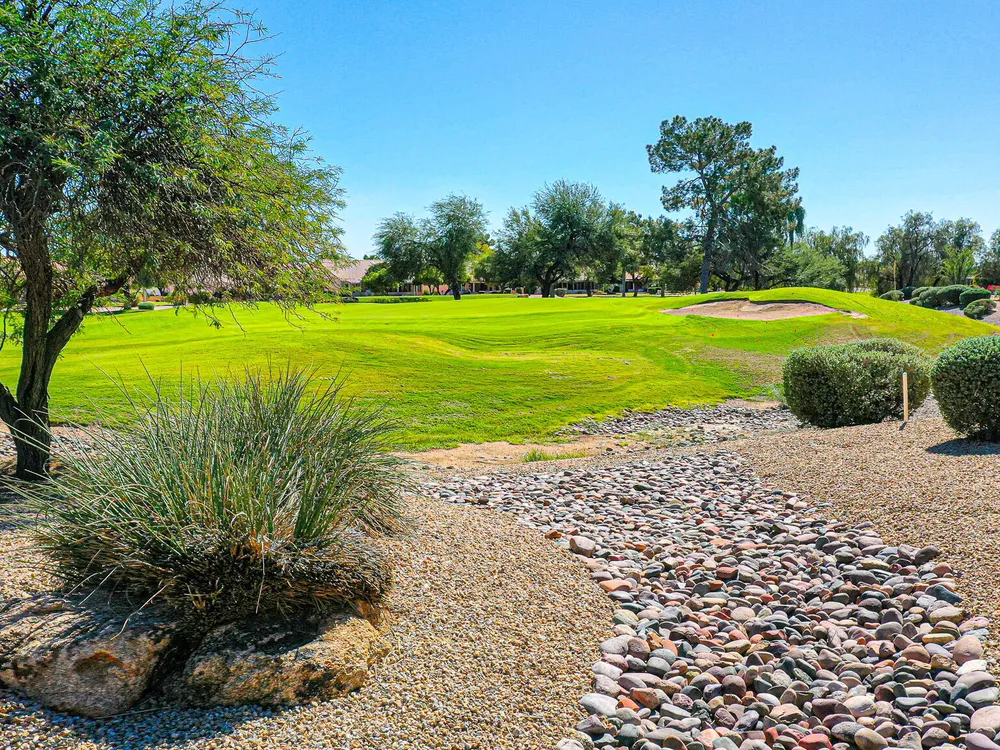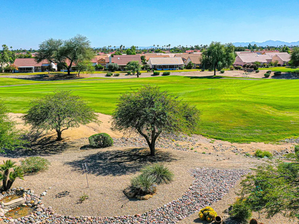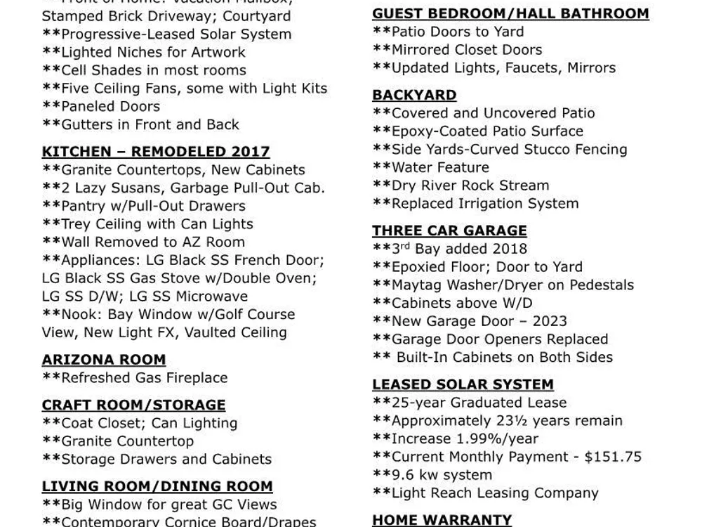 Located on the 6th green of Trail Ridge CG, on an idyllic street of stately golf course homes on both sides of the street, all with larger lots, this Energy-Efficient, 3-Car Garage Cromwell with a South-Facing Patio is waiting for you. All major components have been replaced: Roof Underlayment - 2024; HVAC - 2024; Water Heater - 2025. Starting in 2017, much of the home was refreshed with Wood-Like LV Flooring, Complete Kitchen Remodel, including Appliances & Granite C-Tops, Cabinetry added in the Craft Room, and new Irrigation System. An efficient Leased Solar System is included. The list continues so please click on ''More'' for a list of ALL the features of this home. Features at 14307 W Whitewood Dr. GENERAL **Located at 6th Green, Trail Ridge GC **Roof Underlayment - 2024 **HVAC - 2024; Water Heater - 2025 ** 2017 Remodel: Kitchen; Flooring; Added Cabinetry in Craft Room **Front of Home: Vacation Mailbox; Stamped Brick Driveway; Courtyard **Progressive-Leased Solar System **Lighted Niches for Artwork **Cell Shades in most rooms **Five Ceiling Fans, some with Light Kits **Paneled Doors **Gutters in Front and Back KITCHEN - REMODELED 2017 **Granite Countertops, New Cabinets **2 Lazy Susans, Garbage Pull-Out Cab. **Pantry w/Pull-Out Drawers **Trey Ceiling with Can Lights **Wall Removed to AZ Room **Appliances: LG Black SS French Door; LG Black SS Gas Stove w/Double Oven; LG SS D/W; LG SS Microwave **Nook: Bay Window w/Golf Course View, New Light FX, Vaulted Ceiling ARIZONA ROOM **Refreshed Gas Fireplace CRAFT ROOM/STORAGE **Coat Closet; Can Lighting **Granite Countertop **Storage Drawers and Cabinets LIVING ROOM/DINING ROOM **Big Window for great GC Views **Contemporary Cornice Board/Drapes **Vaulted Ceiling **Graceful Dining Room Light Fixture BEDROOM HALLWAY **Coat Closet **Granite C-Top at Storage Cabinet DEN **Double-Door Entry; Built-In Desk PRIMARY BEDRROM ENSUITE **Bay Window; Some Vaulting **Refreshed Bathroom: Faucets, Lights, Mirrors **Dual Cultured Marble Integrated Sinks **Walk-In Closet; Linen Closet **Soaker Tub; Separate Shower **Private Commode Room GUEST BEDROOM/HALL BATHROOM **Patio Doors to Yard **Mirrored Closet Doors **Updated Lights, Faucets, Mirrors BACKYARD **Covered and Uncovered Patio **Epoxy-Coated Patio Surface **Side Yards-Curved Stucco Fencing **Water Feature **Dry River Rock Stream **Replaced Irrigation System THREE CAR GARAGE **3rd Bay added 2018 **Epoxied Floor; Door to Yard **Maytag Washer/Dryer on Pedestals **Cabinets above W/D **New Garage Door - 2023 **Garage Door Openers Replaced ** Built-In Cabinets on Both Sides LEASED SOLAR SYSTEM **25-year Graduated Lease **Approximately 23½ years remain **Increase 1.99%/year **Current Monthly Payment - $151.75 **9.6 kw system **Light Reach Leasing Company HOME WARRANTY **Choice Home Warranty to transfer **Home warranty until 4/25/2030