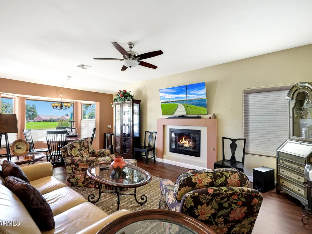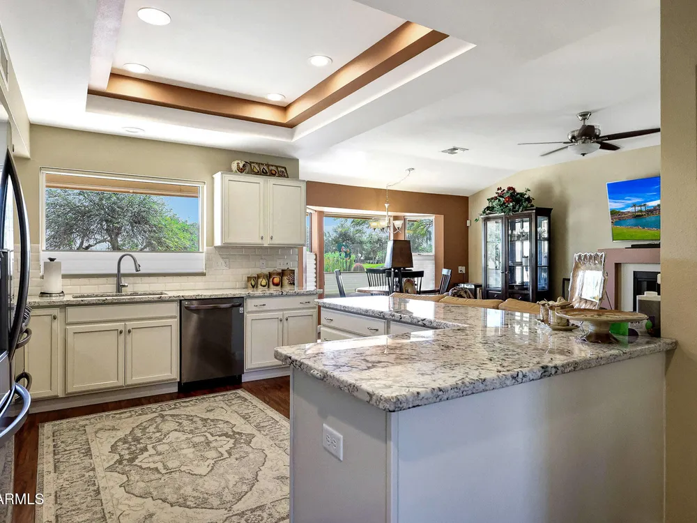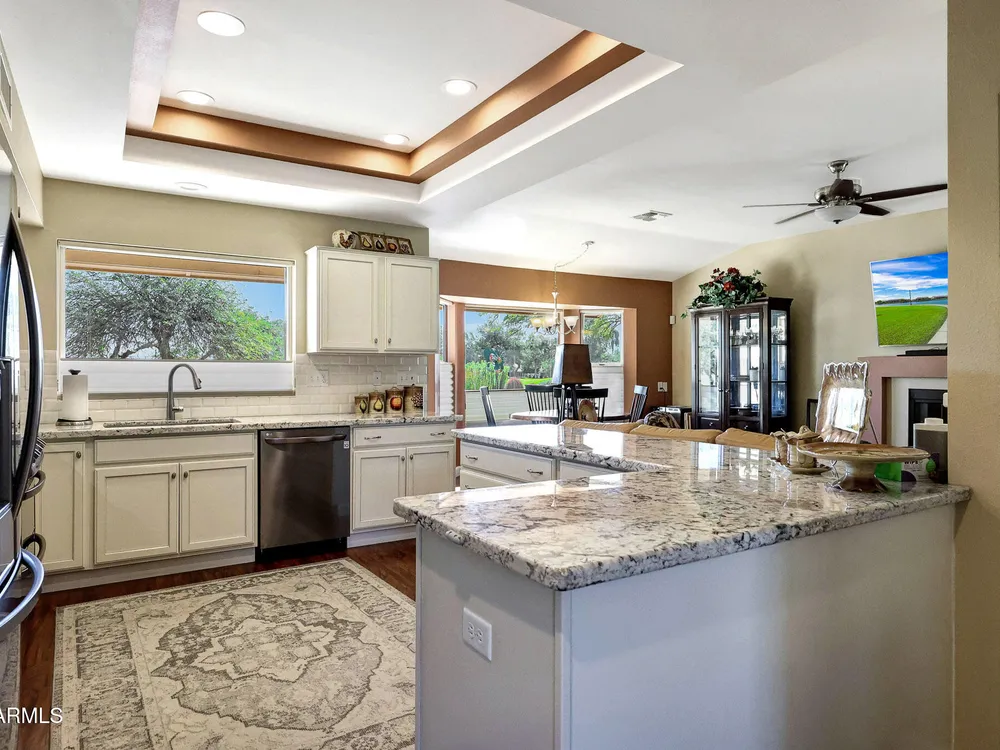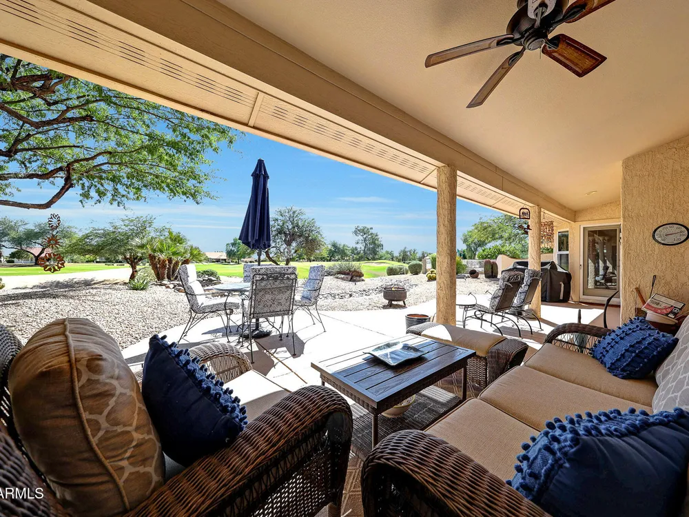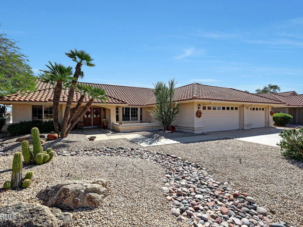 Located on the 6th green of Trail Ridge CG, on an idyllic street of stately golf course homes on both sides of the street, all with larger lots, this Energy-Efficient, 3-Car Garage Cromwell with a South-Facing Patio is waiting for you. All major components have been replaced: Roof Underlayment - 2024; HVAC - 2024; Water Heater - 2025. Starting in 2017, much of the home was refreshed with Wood-Like LV Flooring, Complete Kitchen Remodel, including Appliances & Granite C-Tops, Cabinetry added in the Craft Room, and new Irrigation System. An efficient Leased Solar System is included. The list continues so please click on ''More'' for a list of ALL the features of this home. Features at 14307 W Whitewood Dr. GENERAL **Located at 6th Green, Trail Ridge GC **Roof Underlayment - 2024 **HVAC - 2024; Water Heater - 2025 ** 2017 Remodel: Kitchen; Flooring; Added Cabinetry in Craft Room **Front of Home: Vacation Mailbox; Stamped Brick Driveway; Courtyard **Progressive-Leased Solar System **Lighted Niches for Artwork **Cell Shades in most rooms **Five Ceiling Fans, some with Light Kits **Paneled Doors **Gutters in Front and Back KITCHEN - REMODELED 2017 **Granite Countertops, New Cabinets **2 Lazy Susans, Garbage Pull-Out Cab. **Pantry w/Pull-Out Drawers **Trey Ceiling with Can Lights **Wall Removed to AZ Room **Appliances: LG Black SS French Door; LG Black SS Gas Stove w/Double Oven; LG SS D/W; LG SS Microwave **Nook: Bay Window w/Golf Course View, New Light FX, Vaulted Ceiling ARIZONA ROOM **Refreshed Gas Fireplace CRAFT ROOM/STORAGE **Coat Closet; Can Lighting **Granite Countertop **Storage Drawers and Cabinets LIVING ROOM/DINING ROOM **Big Window for great GC Views **Contemporary Cornice Board/Drapes **Vaulted Ceiling **Graceful Dining Room Light Fixture BEDROOM HALLWAY **Coat Closet **Granite C-Top at Storage Cabinet DEN **Double-Door Entry; Built-In Desk PRIMARY BEDRROM ENSUITE **Bay Window; Some Vaulting **Refreshed Bathroom: Faucets, Lights, Mirrors **Dual Cultured Marble Integrated Sinks **Walk-In Closet; Linen Closet **Soaker Tub; Separate Shower **Private Commode Room GUEST BEDROOM/HALL BATHROOM **Patio Doors to Yard **Mirrored Closet Doors **Updated Lights, Faucets, Mirrors BACKYARD **Covered and Uncovered Patio **Epoxy-Coated Patio Surface **Side Yards-Curved Stucco Fencing **Water Feature **Dry River Rock Stream **Replaced Irrigation System THREE CAR GARAGE **3rd Bay added 2018 **Epoxied Floor; Door to Yard **Maytag Washer/Dryer on Pedestals **Cabinets above W/D **New Garage Door - 2023 **Garage Door Openers Replaced ** Built-In Cabinets on Both Sides LEASED SOLAR SYSTEM **25-year Graduated Lease **Approximately 23½ years remain **Increase 1.99%/year **Current Monthly Payment - $151.75 **9.6 kw system **Light Reach Leasing Company HOME WARRANTY **Choice Home Warranty to transfer **Home warranty until 4/25/2030