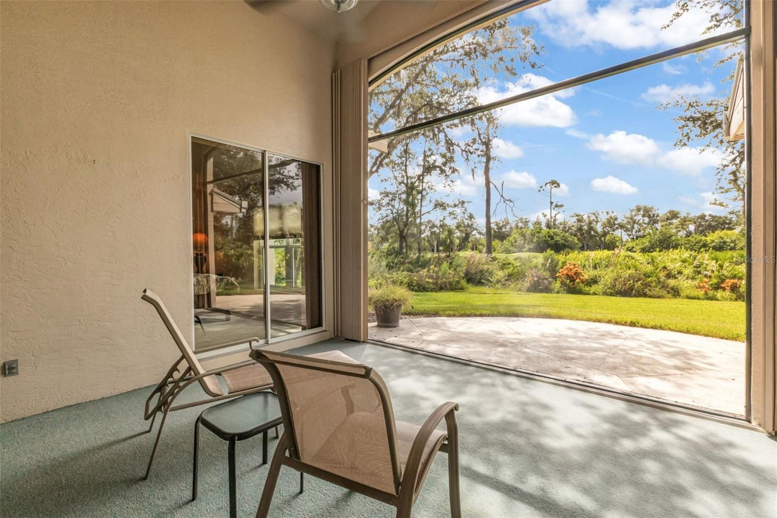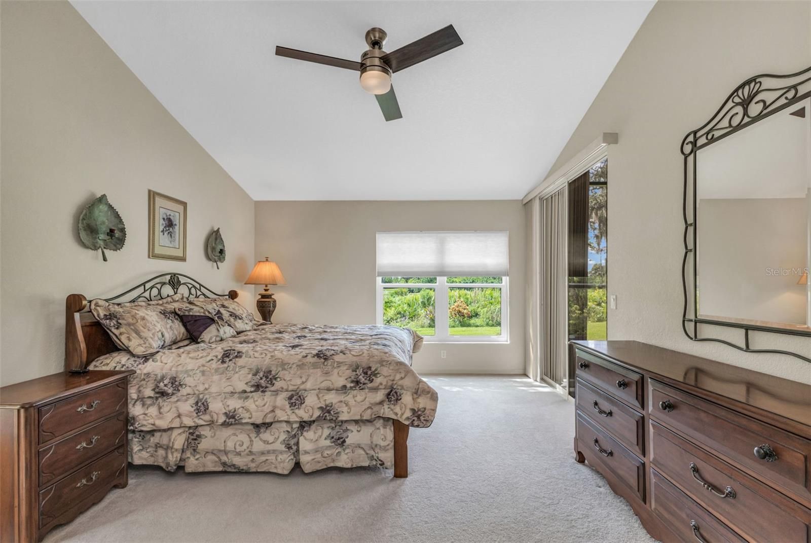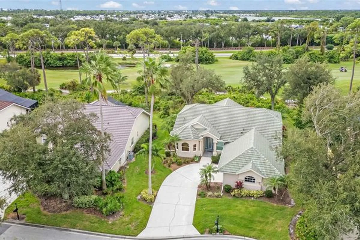 Located in the beautiful gated community of Riverwood & neighborhood of Stonebridge, this charming 2-bedroom, 2-bath home with a den or office is perfectly positioned at the end of a quiet cul-de-sac on the 9th fairway, offering both privacy and lovely golf course views. Just a short stroll from the community center, you’ll have easy access to the many amenities that make this neighborhood so special. With an open and split floor plan, this home blends comfort and functionality while creating a bright and welcoming atmosphere from the moment you step inside. The main living area greets you with soaring ceilings, soft natural light, and an easy flow that makes the home feel both spacious and warm. The living room features sliders to the lanai topped with transom windows, creating a light-filled and airy setting. The family room flows into the kitchen, creating an inviting gathering space. Expansive picture windows line the back wall, framing peaceful views of the golf course and garden. The kitchen features solid maple wood cabinets, stainless steel appliances, a breakfast bar, and a cozy breakfast nook accented by an aquarium window that overlooks the lush landscaping. Off the living area is a laundry room with built-in storage. The lanai is generously sized and features a clear view screen, allowing you to enjoy the scenery without visual barriers. Just beyond, a spacious brick paver patio extends the living space outdoors, creating a perfect place to relax, grill, or gather with friends. There is also room to add a pool if desired. A separate office or den at the front of the home offers flexibility and charm with its lovely bay window, making it an ideal space for working or reading. The primary suite is tucked away for privacy and comfort, featuring sliders to the lanai, a walk in closet, dual sinks, a spa tub, and a tiled walk in shower. The guest bedroom and bath can be closed off with a pocket door to create a private suite for visitors. Additional features include a newer roof installed in 2017, impact resistant windows, an impact resistant garage door 2024, and an HVAC system and hot water heater that were both replaced in 2021. The hot water heater also comes with a 12-year transferable warranty for added peace of mind. Also included, Drexel Heritage MBR Suite and Dining Room with Hutch, 2 large leafs and 6 chairs all in a beautiful cherry finish.The lanai was rescreened in 2022, making this home move-in ready with valuable updates already in place. As part of the vibrant Riverwood community, residents enjoy a par-72 championship golf course, a state-of-the-art fitness center, a resort-style pool, pickleball courts, and Har-Tru tennis courts. Beyond the gates, you will find easy access to world-class fishing, boating, waterfront dining, shopping, and the beautiful sandy beaches of the Gulf. Conveniently located between Sarasota and Fort Myers on Florida’s West Coast, this home offers a wonderful blend of comfort, convenience, and resort-style living. Immediate occupancy available!