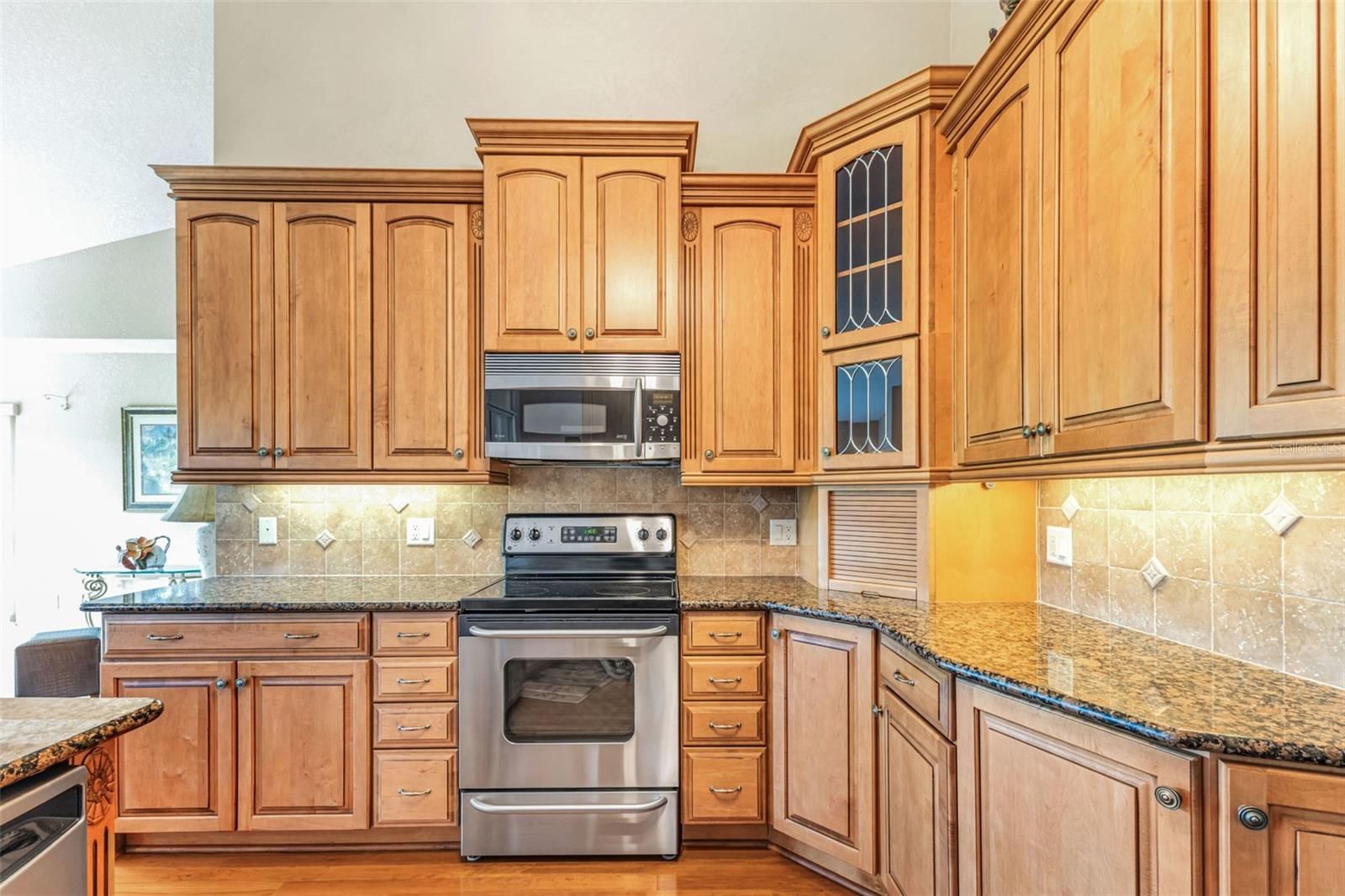 - Built-in Features, Ceiling Fan(s), Open Floorplan, Solid-Wood Cabinets, Split Bedrooms, Stone Counters, Walk-In Closet(s), Window Treatments