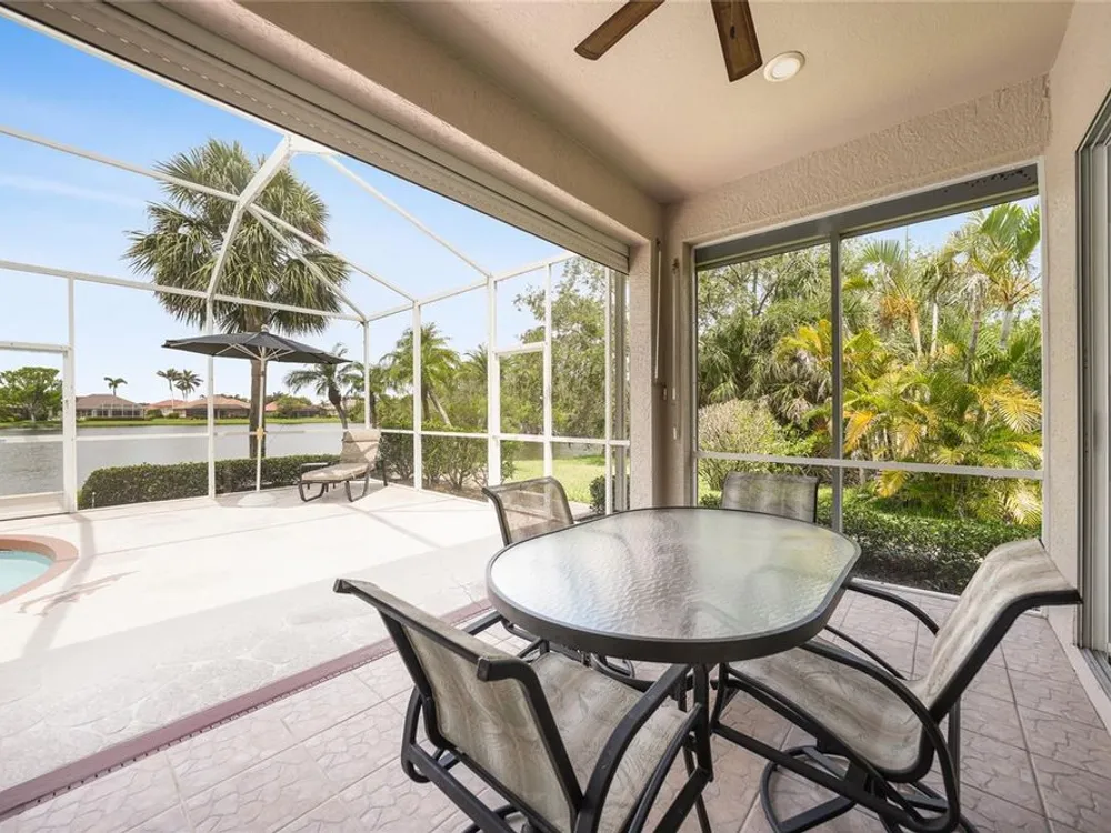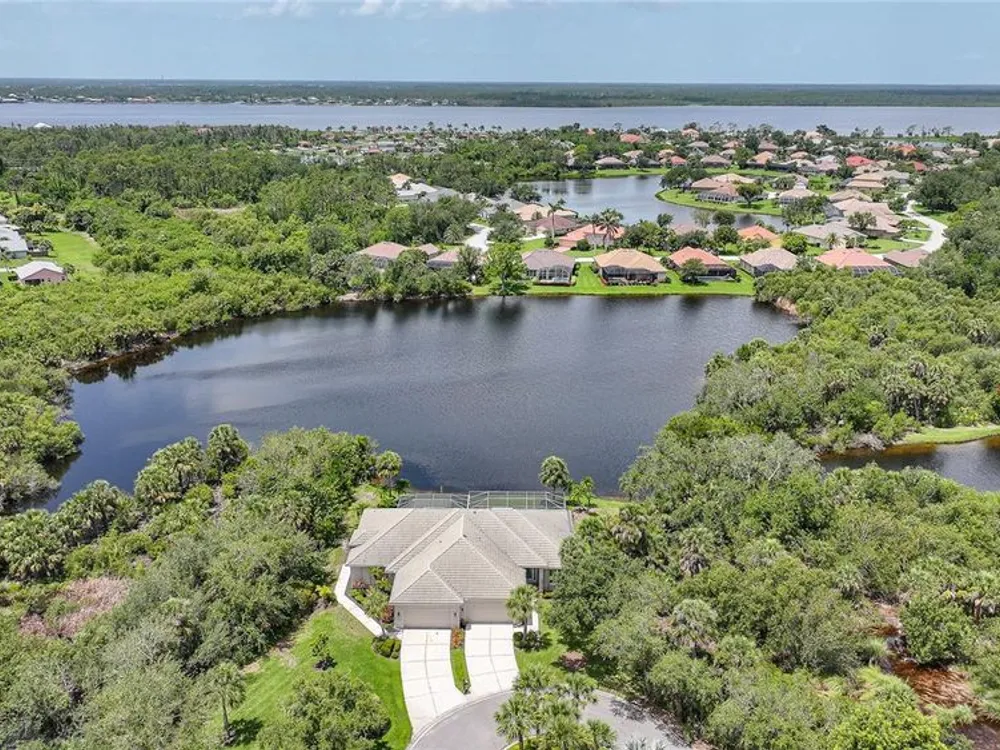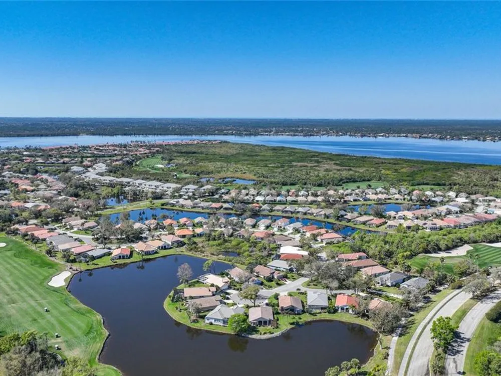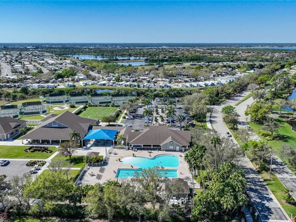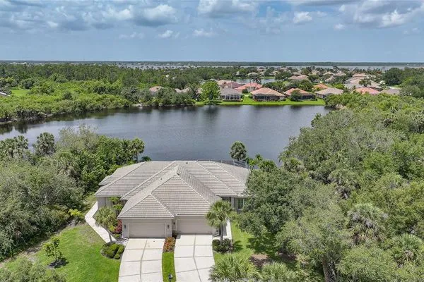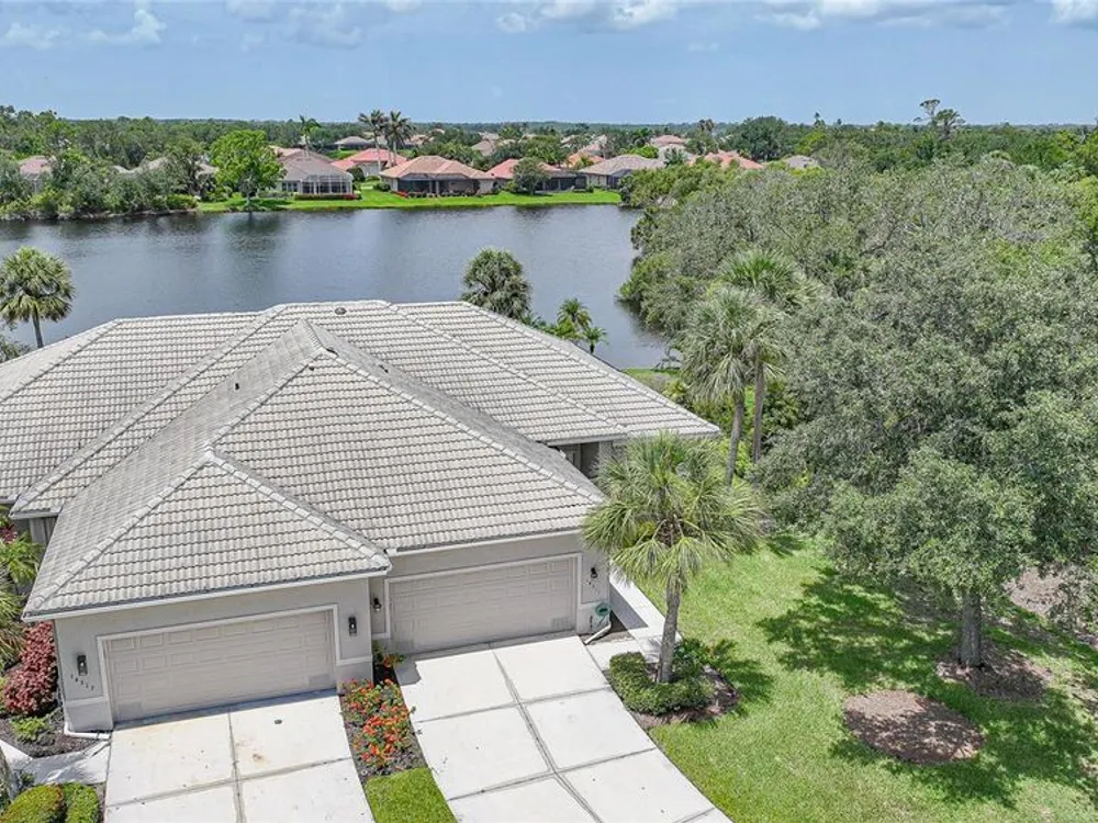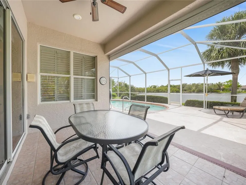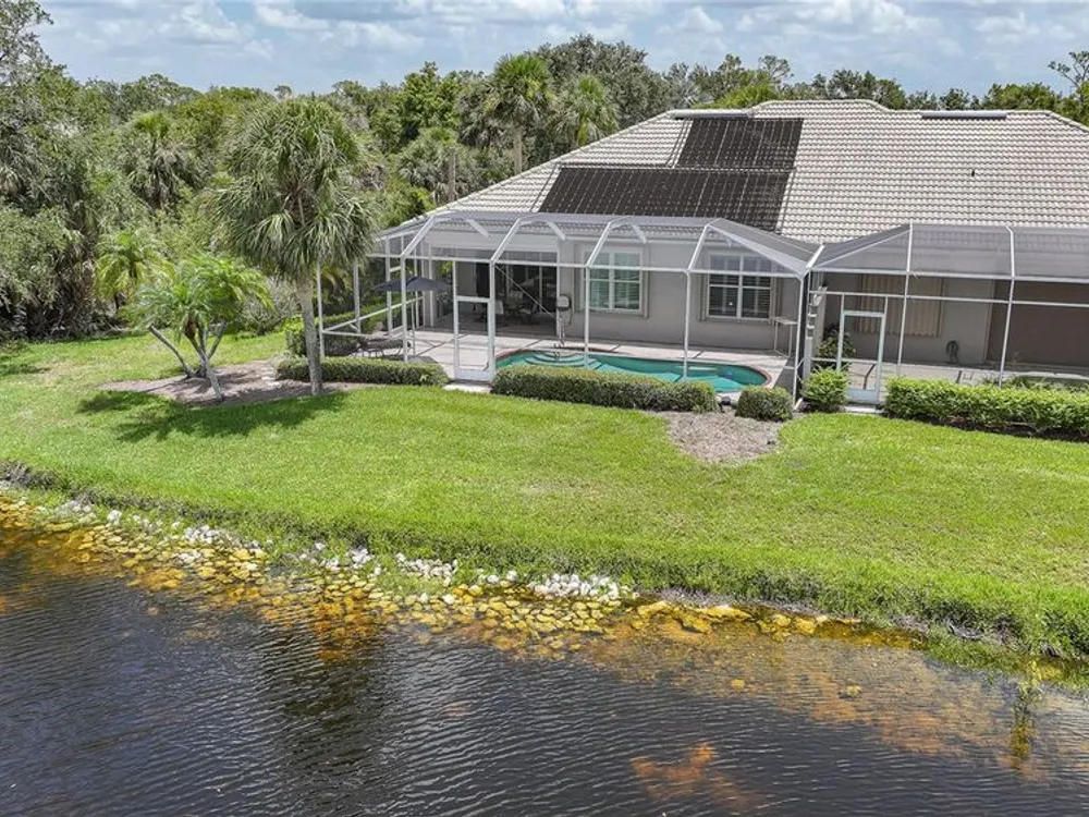 One or more photo(s) has been virtually staged. Welcome to your private lakefront oasis in the heart of Riverwood! This beautiful 2-bedroom, 2-bath villa with a den and solar-heated pool offers the perfect blend of style, comfort, and location. Nestled at the end of a quiet cul-de-sac and adjacent to a serene nature preserve, the home captures stunning southwestern views—ideal for savoring both sunrise serenity and sunset splendor. Step inside to discover a modern, open-concept living space designed for everyday luxury and effortless entertaining. The stylishly renovated kitchen serves as the heart of the home, while the expansive living and dining areas flow seamlessly to the enclosed lanai and private pool—creating an inviting retreat for gatherings with family and friends. Enjoy added conveniences like a 2-car garage, dedicated laundry room, and an upgraded primary bath. Located within the gates of Riverwood, one of Southwest Florida’s premier communities, residents enjoy a rich array of resort-style amenities. Take advantage of the 72-par championship golf course (private memberships and public play available), a private beach club on Manasota Key (subject to availability), and a vibrant activity center featuring a resort pool and spa, tennis, pickleball, bocce, croquet, and more. With a 24-hour fitness center, dog park, library, arts and crafts room, and a full-time Activities Director curating year-round events, there's always something to enjoy. Nature lovers will relish birdwatching, biking, kayaking on the Myakka River, or simply soaking in the peaceful natural beauty that surrounds you. This villa isn’t just a home—it’s the lifestyle you’ve been waiting for.
