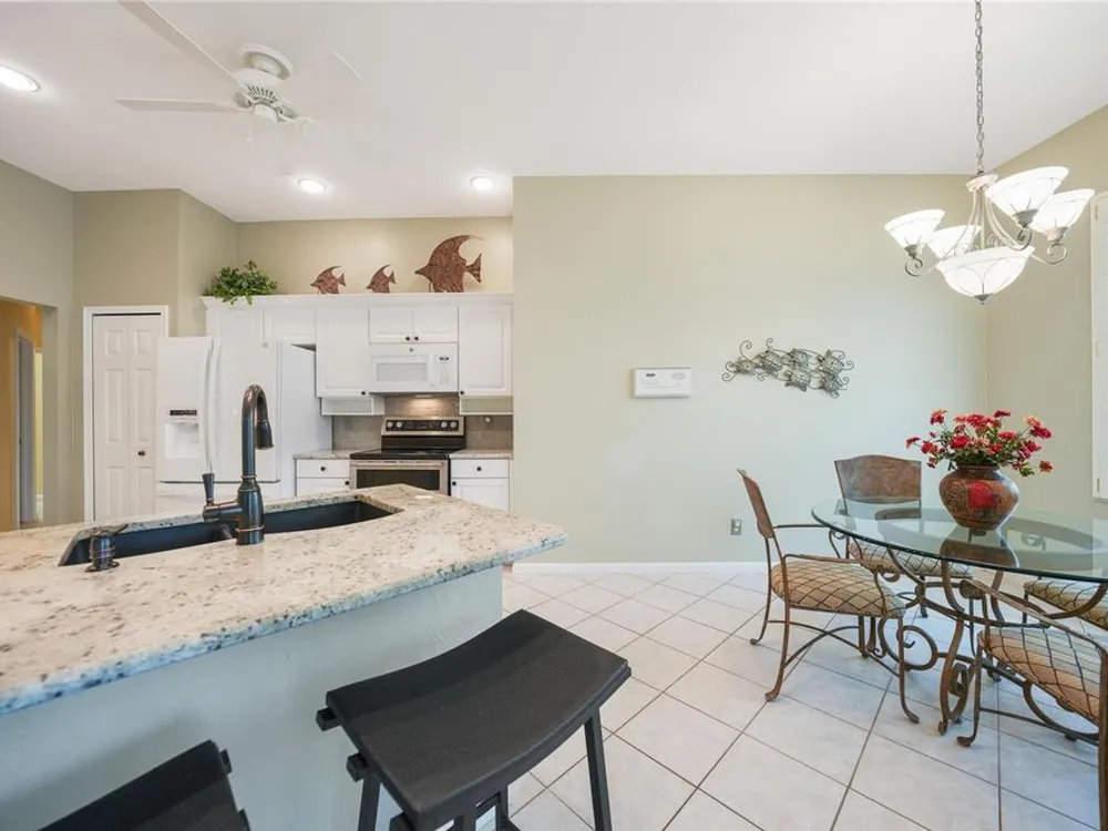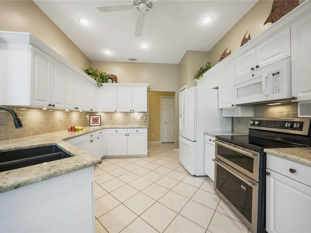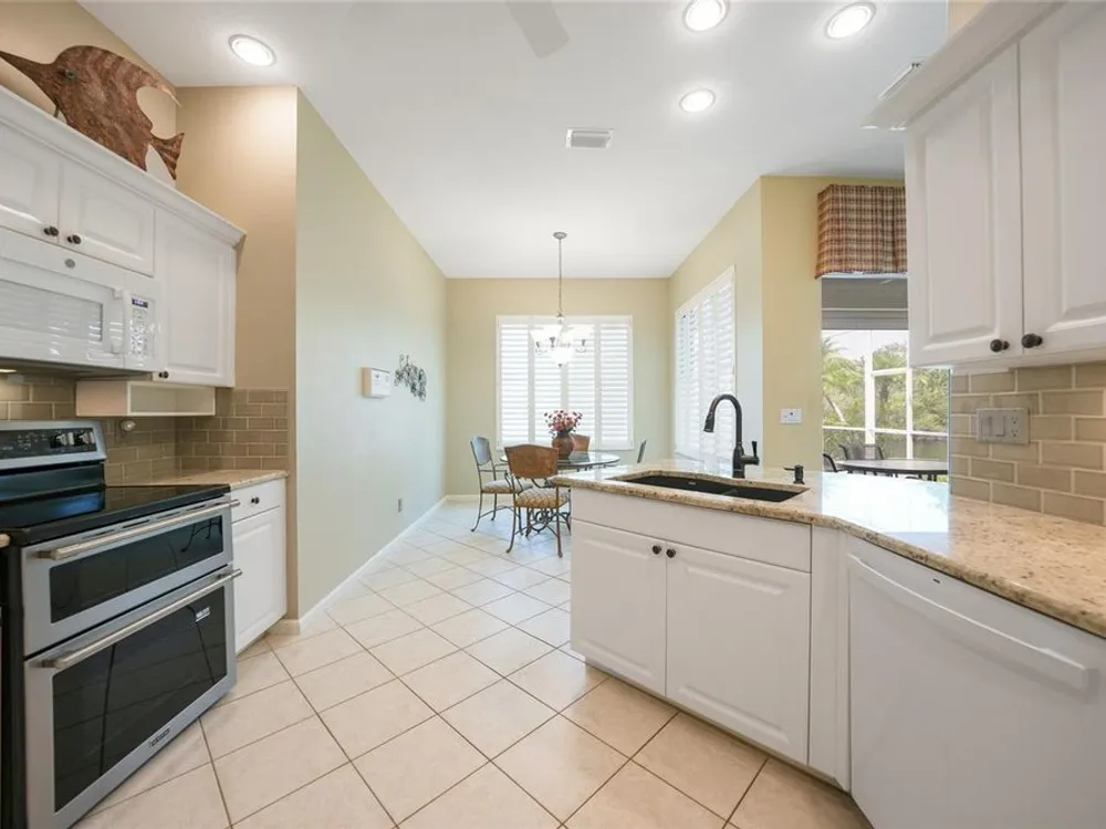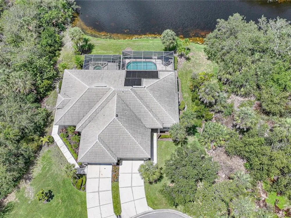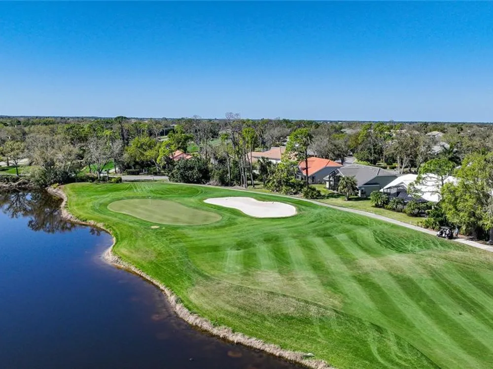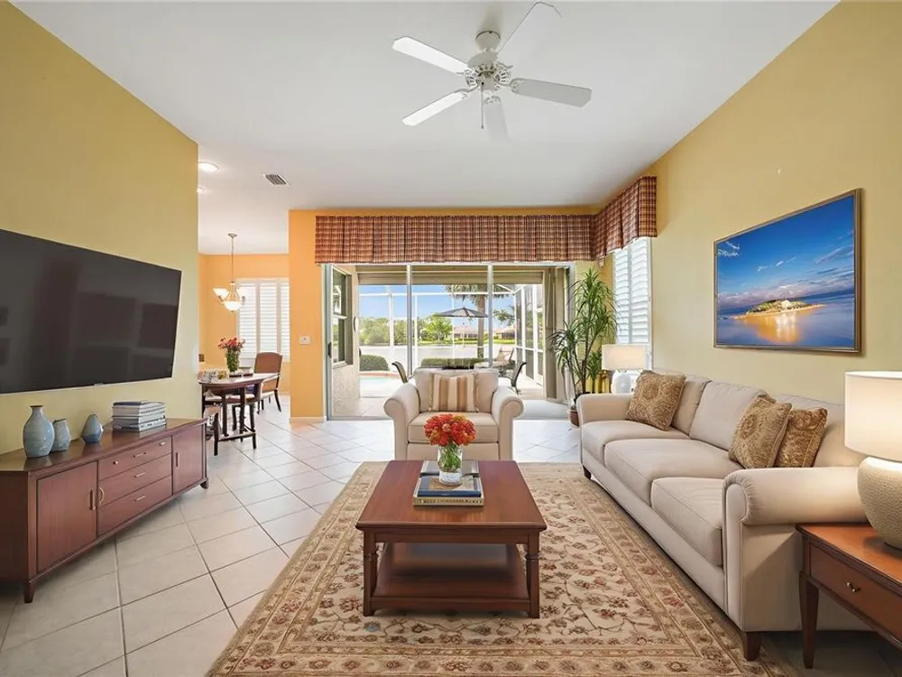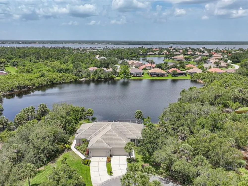 One or more photo(s) has been virtually staged. Welcome to your private lakefront oasis in the heart of Riverwood! This beautiful 2-bedroom, 2-bath villa with a den and solar-heated pool offers the perfect blend of style, comfort, and location. Nestled at the end of a quiet cul-de-sac and adjacent to a serene nature preserve, the home captures stunning southwestern views—ideal for savoring both sunrise serenity and sunset splendor. Step inside to discover a modern, open-concept living space designed for everyday luxury and effortless entertaining. The stylishly renovated kitchen serves as the heart of the home, while the expansive living and dining areas flow seamlessly to the enclosed lanai and private pool—creating an inviting retreat for gatherings with family and friends. Enjoy added conveniences like a 2-car garage, dedicated laundry room, and an upgraded primary bath. Located within the gates of Riverwood, one of Southwest Florida’s premier communities, residents enjoy a rich array of resort-style amenities. Take advantage of the 72-par championship golf course (private memberships and public play available), a private beach club on Manasota Key (subject to availability), and a vibrant activity center featuring a resort pool and spa, tennis, pickleball, bocce, croquet, and more. With a 24-hour fitness center, dog park, library, arts and crafts room, and a full-time Activities Director curating year-round events, there's always something to enjoy. Nature lovers will relish birdwatching, biking, kayaking on the Myakka River, or simply soaking in the peaceful natural beauty that surrounds you. This villa isn’t just a home—it’s the lifestyle you’ve been waiting for.