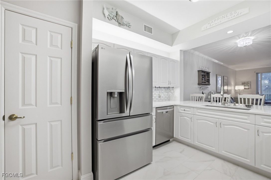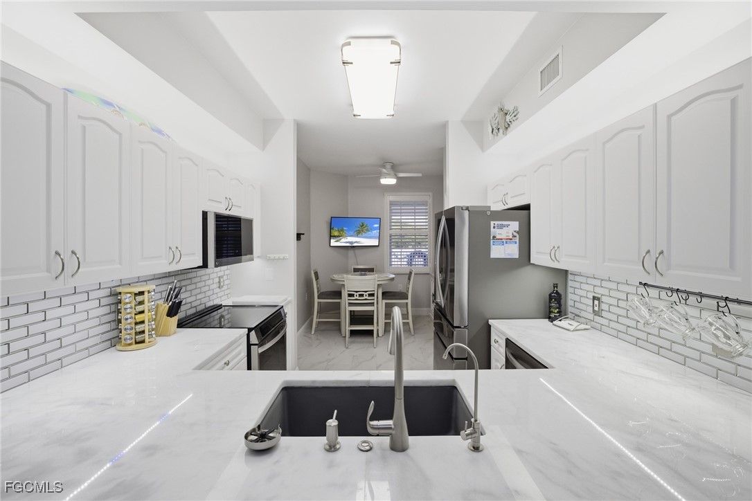 Welcome to easy, resort-style living in the sought-after Legends Golf & Country Club—a gated Fort Myers community known for its vibrant lifestyle and beautiful surroundings. This 2-bedroom, 2-bath Bristol Bay III condo is move-in ready and shines with a complete renovation by the current owner, blending comfort, style, and peace of mind. The building features a common elevator, plus a new roof and carport (2025), while the residence itself feels fresh and modern throughout. Enjoy an updated kitchen and baths, LG stainless steel appliances, a Whirlpool washer and dryer, plantation blinds, new lighting and ceiling fans, and porcelain tile in the main living areas. The screened lanai is a true highlight—overlooking the tranquil lake and delivering stunning southern skies day after day. While Bristol Bay III does not include a golf membership, residents enjoy the 'Social Membership' with full access to the active Legends Country Club lifestyle, which includes: tennis, pickleball, and bocce courts; a grand clubhouse with (3) restaurants, bar & grill, business center, library, hobby room, and a full calendar of social events; a fitness center with sauna; resort-style pool & spa, and so much more. Scenic bike and jogging paths wind throughout the community. Bristol Bay itself is surrounded by natural preserve and offers its own community pool and grilling areas, creating a relaxed, neighborhood feel. The Legends enjoys a prime Fort Myers location just off Daniels Parkway and minutes to I-75, placing everyday conveniences within easy reach—including grocery stores, restaurants, pharmacies, and big-box shopping. Quick access to JetBlue Park, the Lee Health Sports Complex, and Southwest Florida International Airport makes travel and entertainment effortless. Residents are also a short drive to our world-renowned beaches and Gulf water activities, while being surrounded by an abundance of local culture, arts, history, and outdoor nature experiences. Whether you’re seeking a seasonal retreat or a full-time Florida lifestyle, this beautifully updated condo delivers comfort, views, and amenities in one of Fort Myers’ most popular communities. Schedule your private showing today and start enjoying life at The Legends.