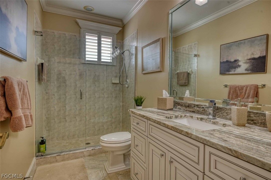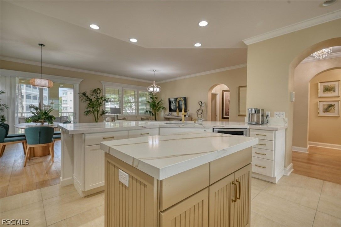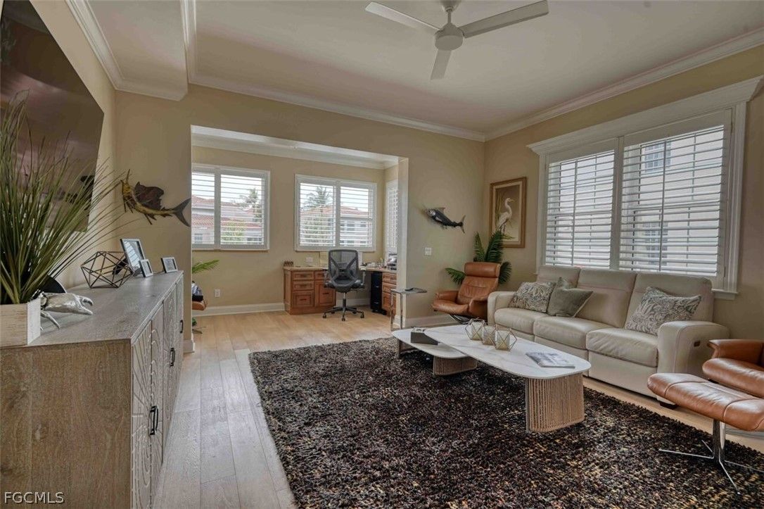 Elegant and sophisticated 2nd floor Harbour Links condo at Gulf Harbour Yacht & Country Club. 3 Bedrooms and 2 Baths in this great room floor plan offering both casual and formal living spaces. Updates include PGT rated Hurricane Impact Glass at all windows and doors, plantation shutters at all windows, wood flooring, quartz counter tops, new cabinetry at Kitchen and Baths, new tile at showers, soaking tub, comfort height toilets, new faucets, lighting fixtures, ceiling fans, whole house water filtration system, updated appliances, no see-um screens and new tile at Lanai that runs the entire width of condo, overlooking the 10th fairway. Oversized double car garage, new A/C and newly painted. Absolutely stunning condo! Gulf Harbour is ideally located near great shopping and dining venues, medical facilities, beaches and airport. Optional club membership offers golf, tennis, fitness center, marina and restaurants. You Deserve The Best!