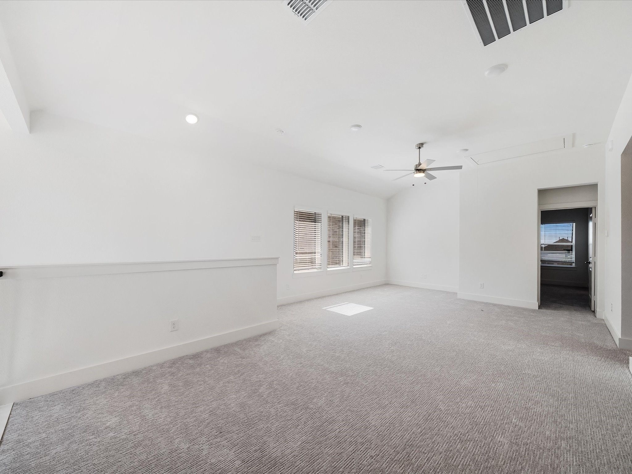 Ready Now! Step into the epitome of modern living with this brand-new Monarch Home, where architectural sophistication blends seamlessly with everyday comfort. The Catherine Plan features 3-bedroom, 3.5-bath masterpiece includes a spacious game room and a functional pocket office, offering versatility for both entertainment and work-from-home lifestyles. Designed for discerning tastes, the home boasts premium finishes throughout. The Chef-Inspired Kitchen is outfitted with a JennAir appliance package, including double ovens and a 5-burner gas cooktop, making it a culinary dream. Enjoy the elegant touch of quartz countertops, a pot filler, Blanco Silgranit sink, and soft-close cabinetry with upgraded hardware. A decorative backsplash adds a sleek, modern flair. Gather around the crystal-accented gas fireplace under the ambient glow of luxury Kichler lighting. The Karastan Cultivated wood flooring in common areas downstairs and Mother in law suite down, combined with 8-foot doors and 12x24 sleek tile accents, creates a clean and contemporary vibe. The Resort-Worthy Primary Suite has a luxurious primary bath featuring floating cabinets, a large frameless glass shower, decorative tiles, framed mirrors, and quartz countertops with undermount sinks. Enjoy effortless indoor-outdoor flow with a large covered patio—perfect for entertaining, relaxing evenings, or weekend barbecues, rain or shine. Enjoy gridless modern windows that provide unobstructed views and flood the home with natural light. The community is in fabulous location near an abundance of shopping, dining, entertainment, just minutes from PGA. Located within the highly acclaimed Frisco Independent School District, this home ensures top-tier education in a thriving community. Every detail in this Monarch Home reflects a commitment to excellence and precision craftsmanship, promising a lifestyle of comfort, elegance, and modern flair.