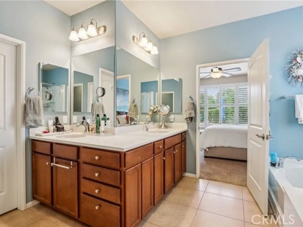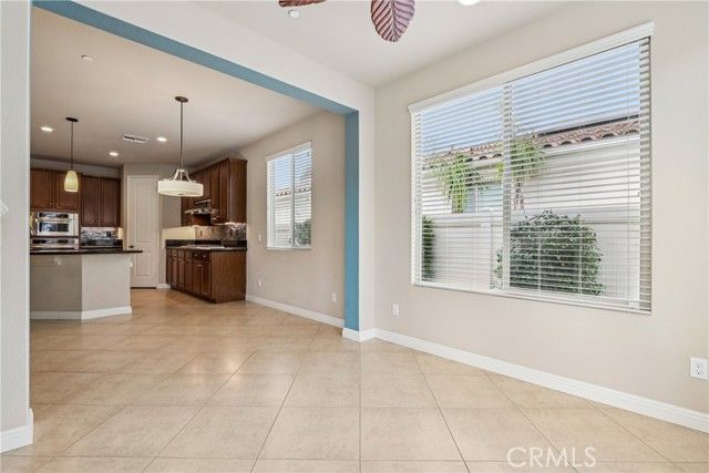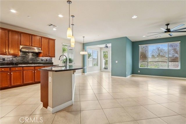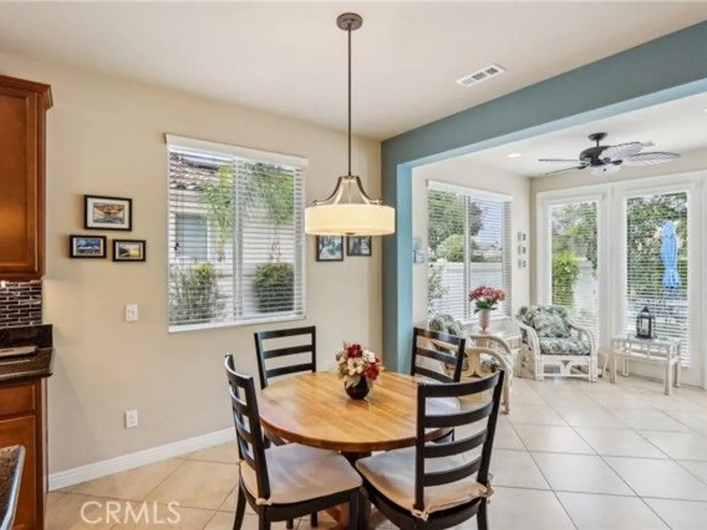 Welcome to resort-style living in the highly sought-after 55+ Solera Diamond Valley Community by Del Webb! This meticulously upgraded 2-bedroom, 2-bathroom home with a den/office offers 1,734 square feet of stylish and functional living space designed for comfort and elegance. From the moment you arrive, the exceptional curb appeal is evident with top-of-the-line drought-tolerant landscaping and a river rock bed creating a stunning, low-maintenance front yard. The beauty continues in the backyard with equally impressive water-wise landscaping—your private outdoor oasis. Inside, you’ll be impressed by the tile flooring laid diagonally at a 45-degree angle, elevating the home’s custom feel. The open-concept kitchen is a true showstopper, featuring an upgraded stainless steel appliance package, a built-in range, a walk-in pantry, designer tile backsplash, a huge center island, and sleek upgraded fixtures. Whether you’re hosting or enjoying a quiet night in, the layout flows beautifully into the living and dining areas. A gorgeous sunroom adds extra living space and includes a cozy fireplace, perfect for year-round relaxation. The spacious primary suite serves as a serene retreat, complete with a generous walk-in closet, a luxurious bath, dual sinks, and a step-in shower. The guest bedroom and second full bath are perfect for visitors or multi-purpose use. Need a home office or hobby room? The dedicated den/office offers flexible space to meet your needs. A well-appointed laundry room with extra storage keeps everything organized, and the garage includes built-in cabinets for even more storage solutions. The community amenities are second to none, offering something for everyone. Stay active in the state-of-the-art fitness center with a walking track, or enjoy socializing in the library, billiard room, or theater room. Two outdoor pools, an indoor pool, bocce ball, tennis, and pickleball courts provide endless opportunities for recreation. With a busy calendar of daily, monthly, and annual events, this vibrant community is the perfect place to enjoy your next chapter. Don’t miss out on this incredible home and lifestyle!