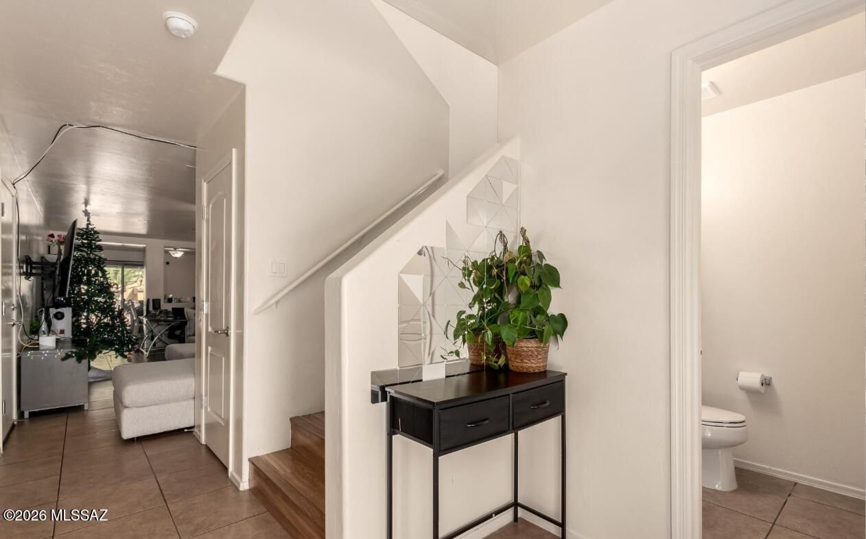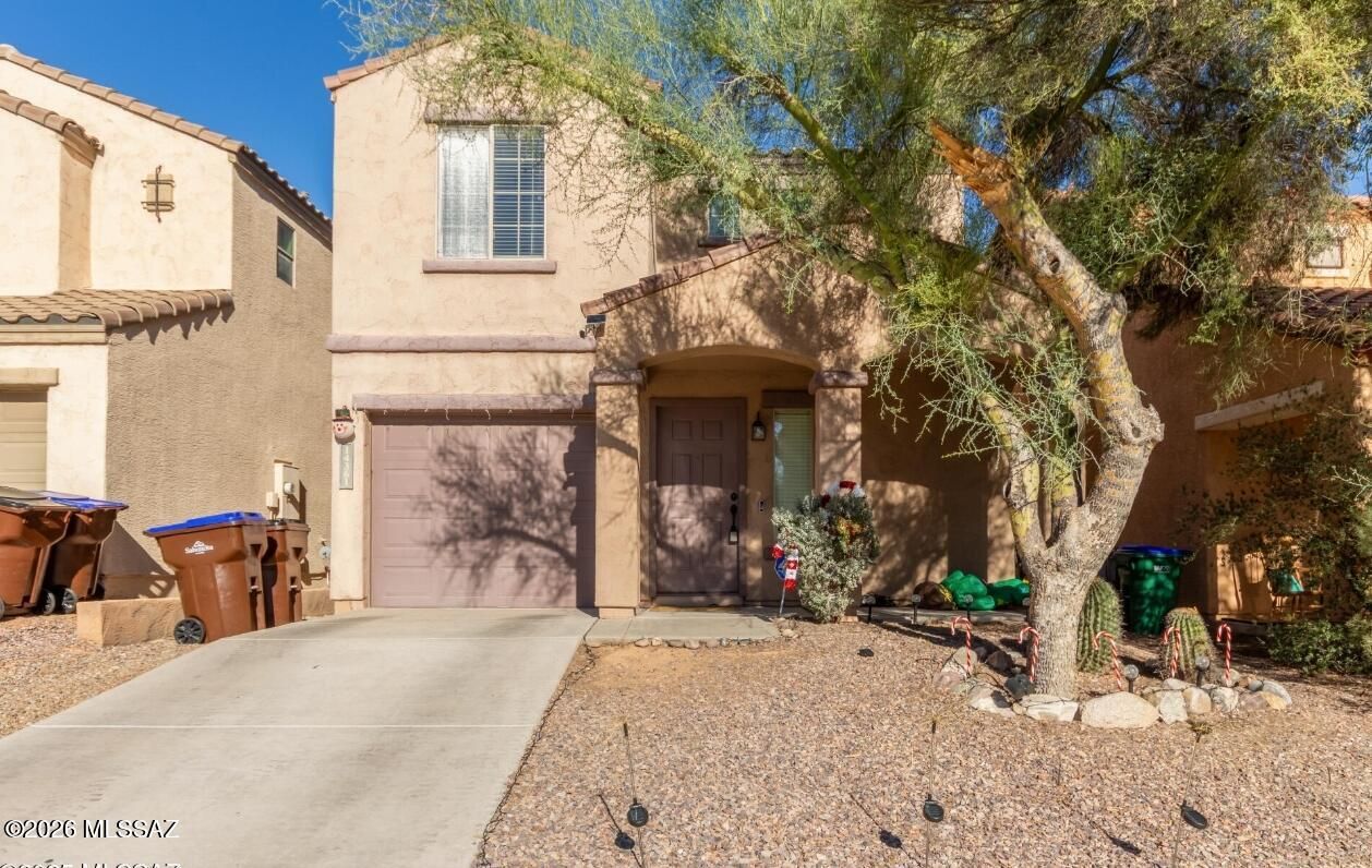 Discover comfort and convenience in this beautifully refreshed two-story home located in the sought-after community of Rancho Sahuarita. This move-in-ready residence features fresh interior paint, stylish tile and laminate flooring throughout the main living areas, and a bright, functional layout ideal for both everyday living and entertaining. Upstairs offers three spacious bedrooms and two full baths, including a welcoming primary suite with generous closet space, while a convenient downstairs powder room is perfect for guests. The tandem two-car garage provides ample parking and storage. Enjoy a private backyard with mature shade trees--perfect for relaxing or gatherings. Residents enjoy pools, parks, trails, fitness centers, and year-round community events.