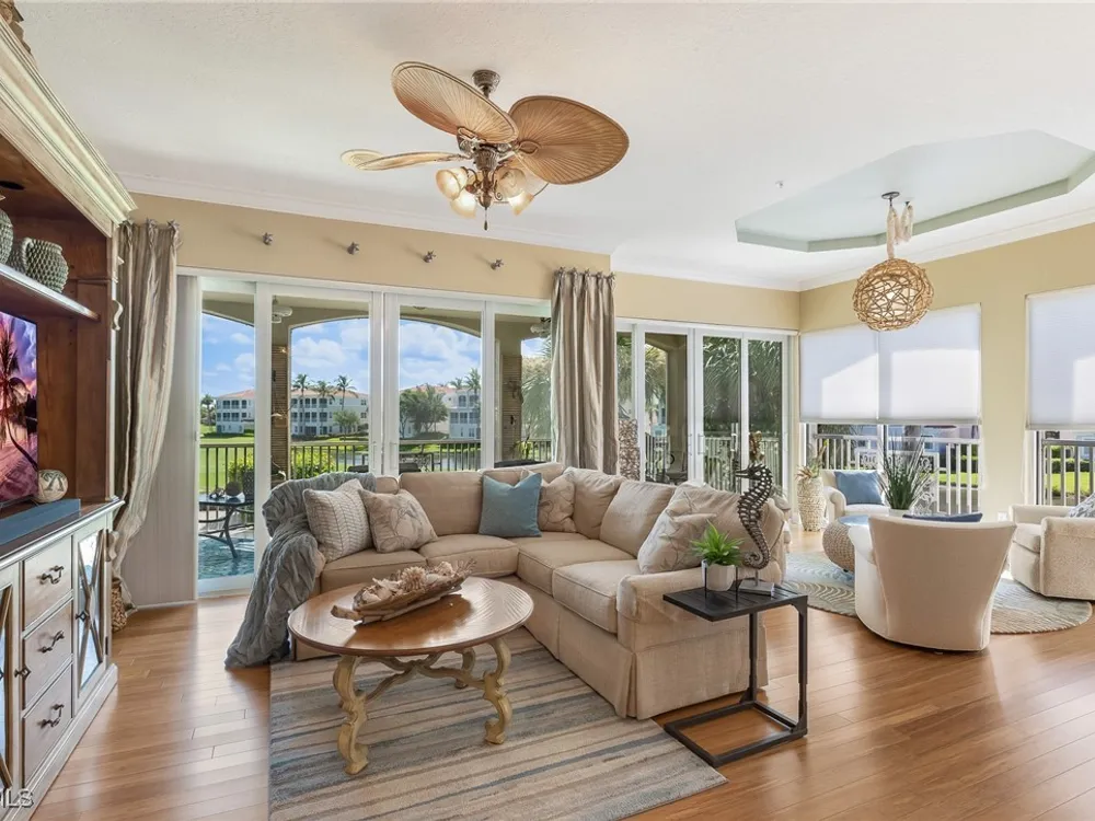 HUGE PRICE REDUCTION!!!! MOTIVATED SELLER!!!A rarely available residence in prestigious Harbour Landings in Gulf Harbour Yacht & Country Club community! This beautifully maintained condo offers the perfect blend of luxury, comfort, and Florida lifestyle living. ENJOY THE CONVENIENCE OF BEING ACROSS THE STREET FROM THE MARINA! THIS UNIT IS BEING SOLD TURNKEY! THE OVERSIZED LANAI HAS STUNNING VIEWS OF THE LAKE AND GOLFCOURSE!! Featuring an open and airy floor plan with abundant natural light, this spacious home boasts 3 bedrooms, 2.5 bathrooms, and over 2,400 sq ft of living space with a private elevator entering into your residence. A 2 car plus golf cart garage adjoins this unit Enjoy a large chef’s kitchen with travertine flooring, granite countertops, marble tile backsplash, stainless steel appliances, and ample cabinet storage. The primary suite includes tray ceilings, walk-in closets, and a spa-like en-suite bath with dual vanities, soaking tub, and separate shower. The expansive screened lanai provides serene views – ideal for relaxing with a morning coffee or entertaining guests. Located just steps from the community pool and close to the marina, golf course, fitness center, tennis courts, and clubhouse, this home offers a resort-style experience in one of Fort Myers’ most coveted gated communities. Don't miss this one!! . Minutes from white sandy beaches, shopping, dining, and RSW airport