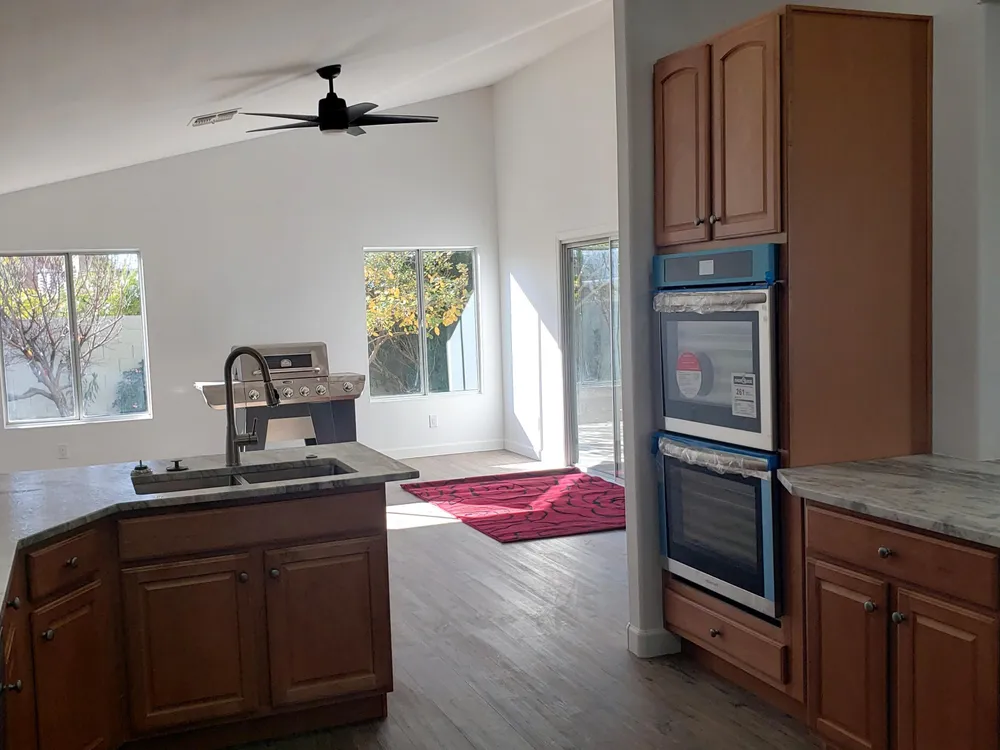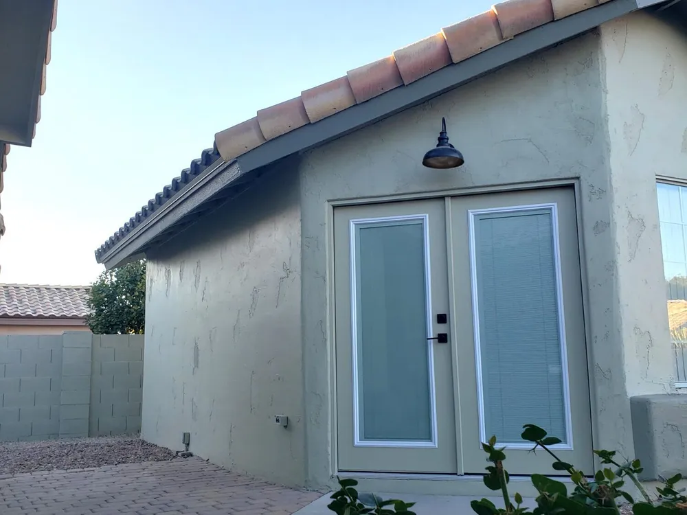 MUST SEE home & casita upgrades including new floors, lights, fans, faucets, sinks, toilets, door hardware, entry door, inside & outside paint. New HVAC units, Quartzite counters & Maple cabinets thru-out. Entertaining open floorplan for big screen tv above new fireplace seen into kitchen & dining area. Plus separate den or dining rm. Huge master bedroom w/bath w/dbl sink vanity, jetted tub, walk in tiled shower & custom closet. Irrigated backyard plants & trees for privacy. Covered patio w/mister. Enjoy AGE 55+ Sun Village Resort's 18 hole par 3 golf course, huge updated, heated pool & spa, pickleball, tennis, fitness gym, woodshop, sewing club, billiards, big screen tv & restaurant. Lots of shopping & restaurants within a mile. Realtor related to Seller.