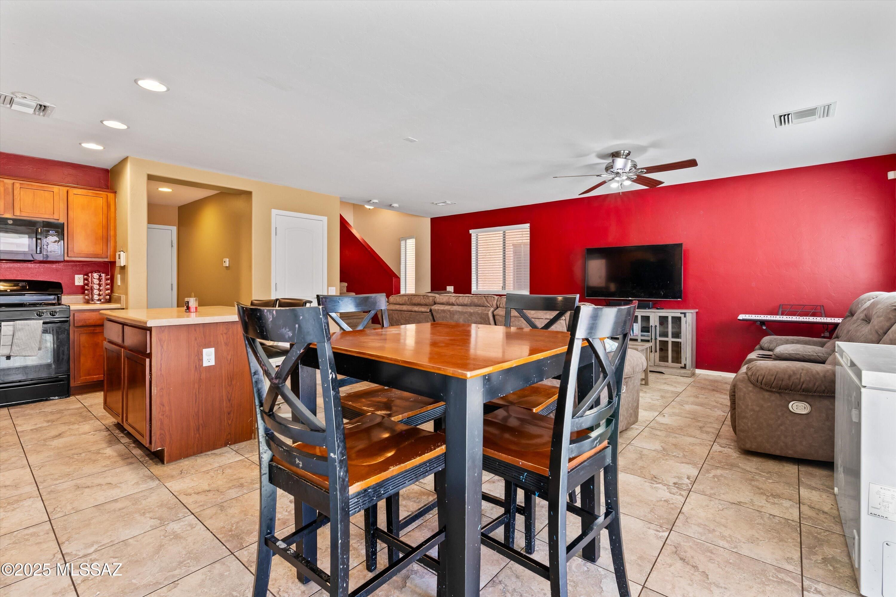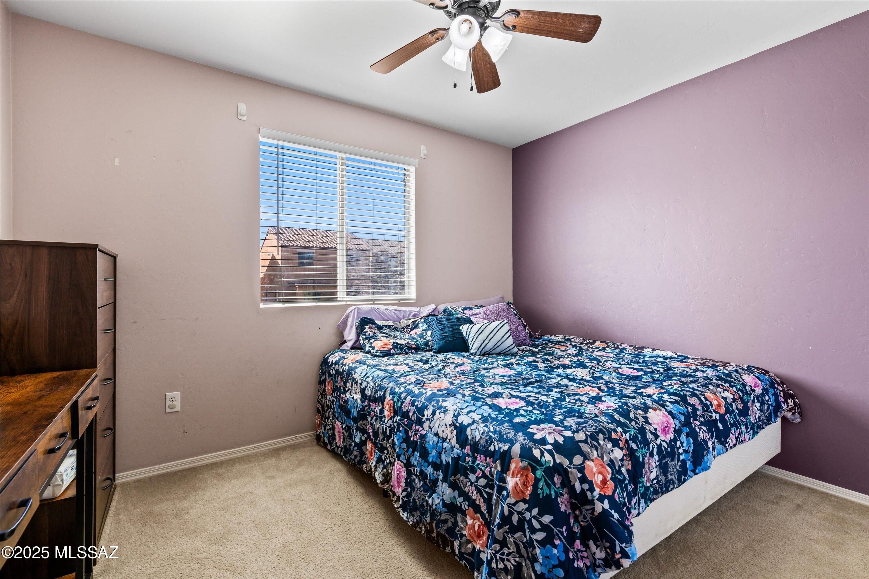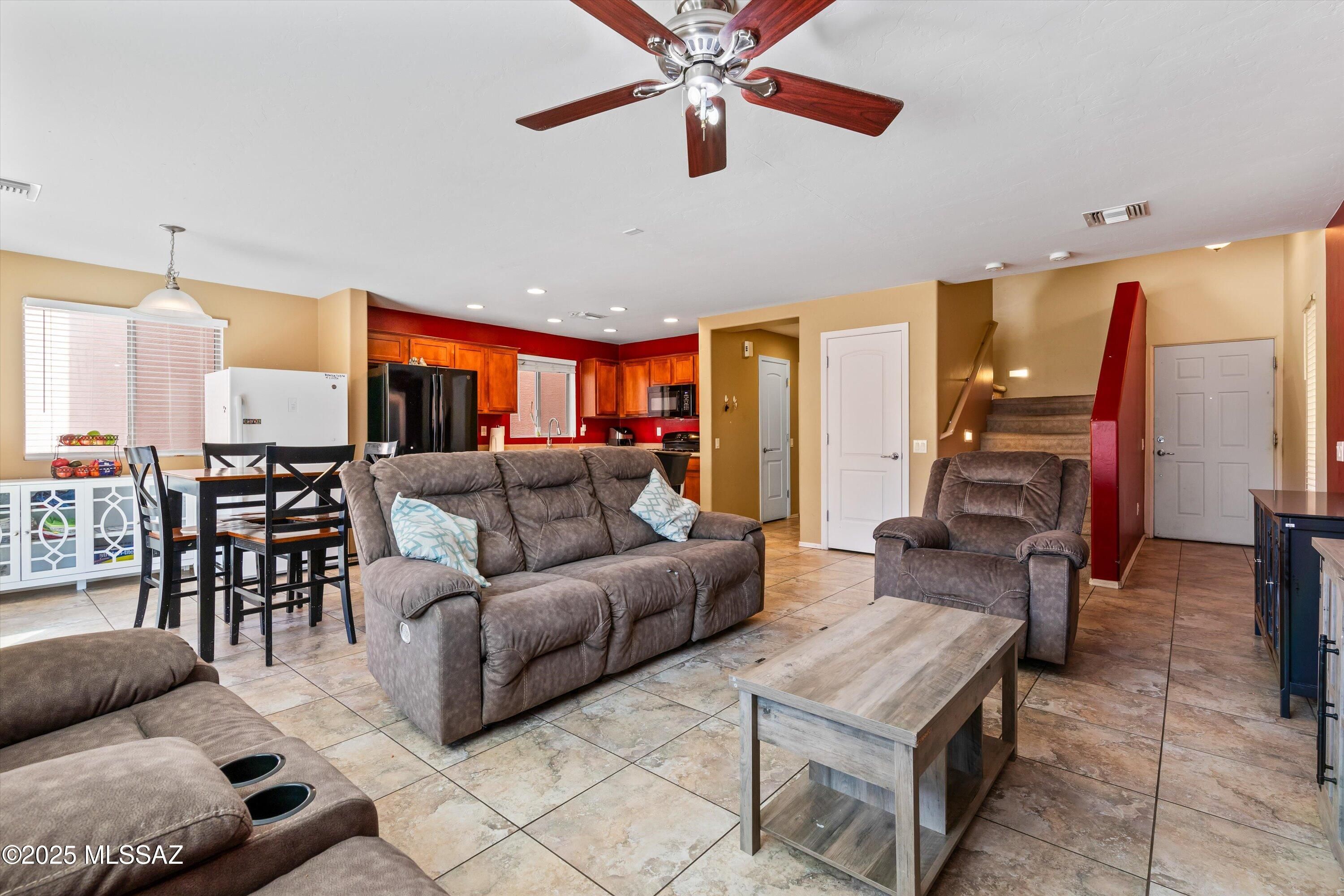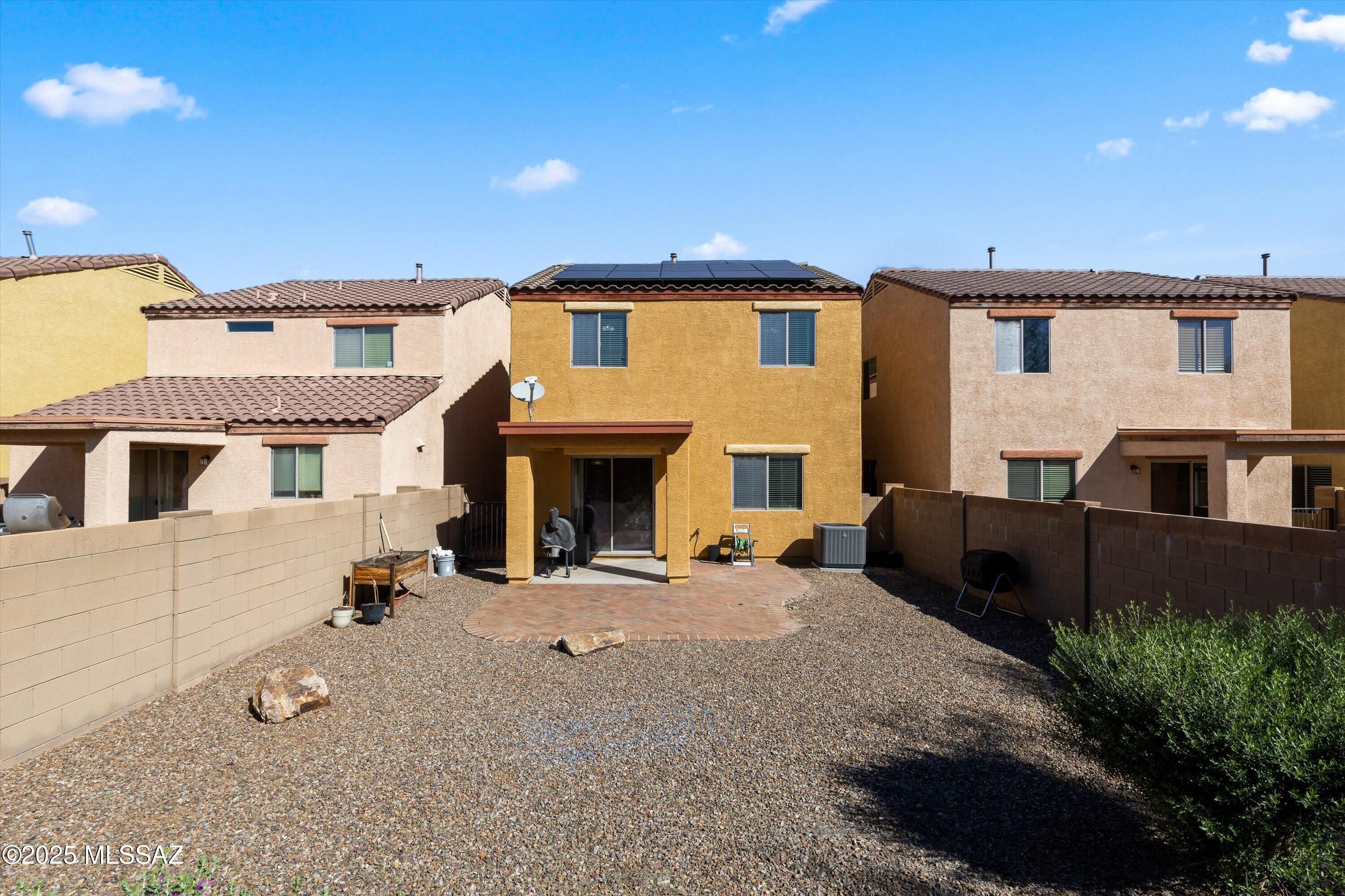 Beautiful two-story home in the highly desirable community of Rancho Sahuarita with owned solar! Enjoy an open floor plan with ceramic tile and carpet throughout, a spacious kitchen with black appliances and crown-molded cabinets, and a large primary suite with a walk-in closet. New HVAC (2 years old) and a landscaped backyard make this home move-in ready. Rancho Sahuarita offers amazing amenities--parks, pools, fitness center, tennis, basketball, and more--all close to shopping, schools, and easy freeway access!