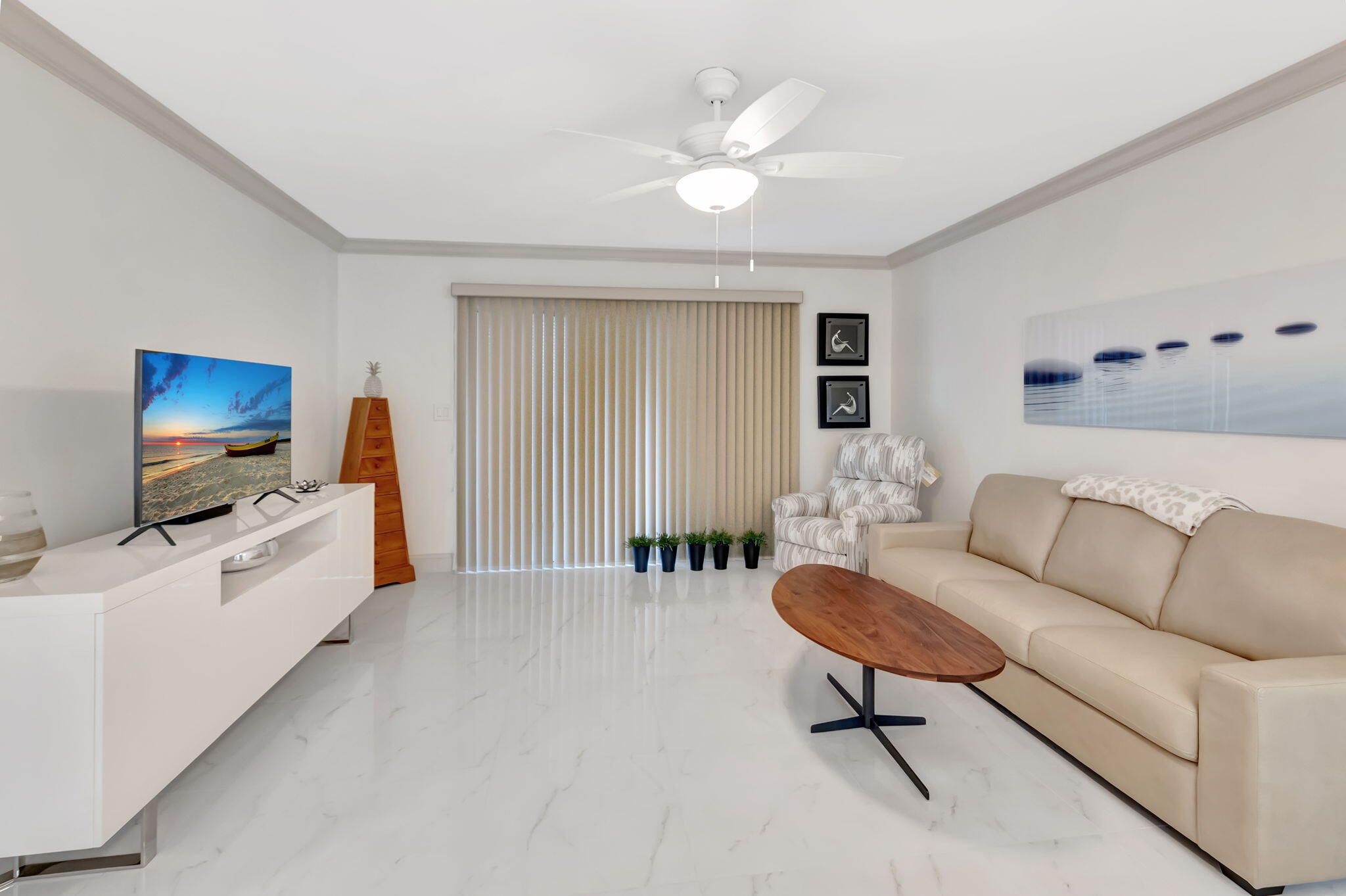 Beautifully updated condo with peaceful water views, impact windows, accordion shutters, plantation shutters, custom window treatments, and sleek porcelain tile floors throughout. The bright open kitchen features quartz countertops, stainless-steel appliances, and ample storage. Both bathrooms are tastefully remodeled, and the home is completely move-in ready.Located in the desirable 55+ community of Huntington Lakes, residents enjoy resort-style amenities including a newly renovated clubhouse with indoor and outdoor pools, fitness center, tennis, pickleball, bocce, and a 610-seat theater. Section 1 offers its own saltwater pool, hot tub, and Waterside clubhouse. Beautifully landscaped and ideally located near shopping, dining, Atlantic Ave and Delray's beautiful beaches.