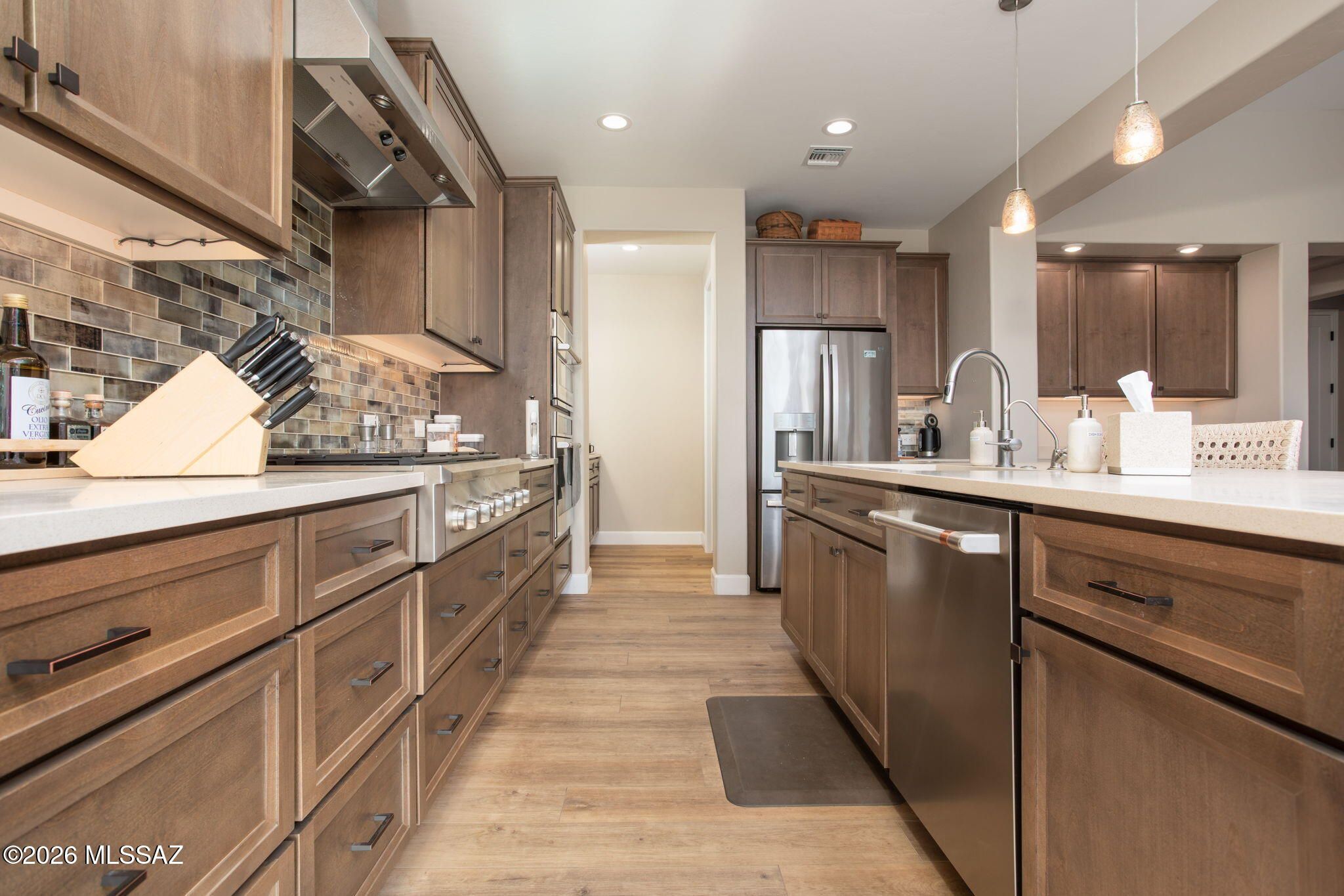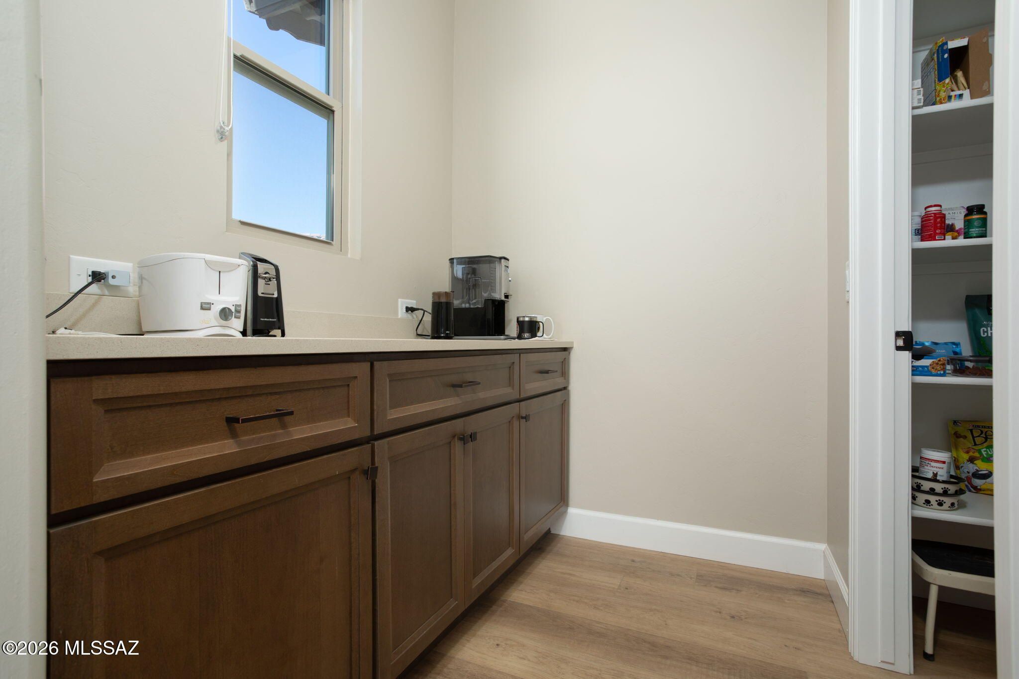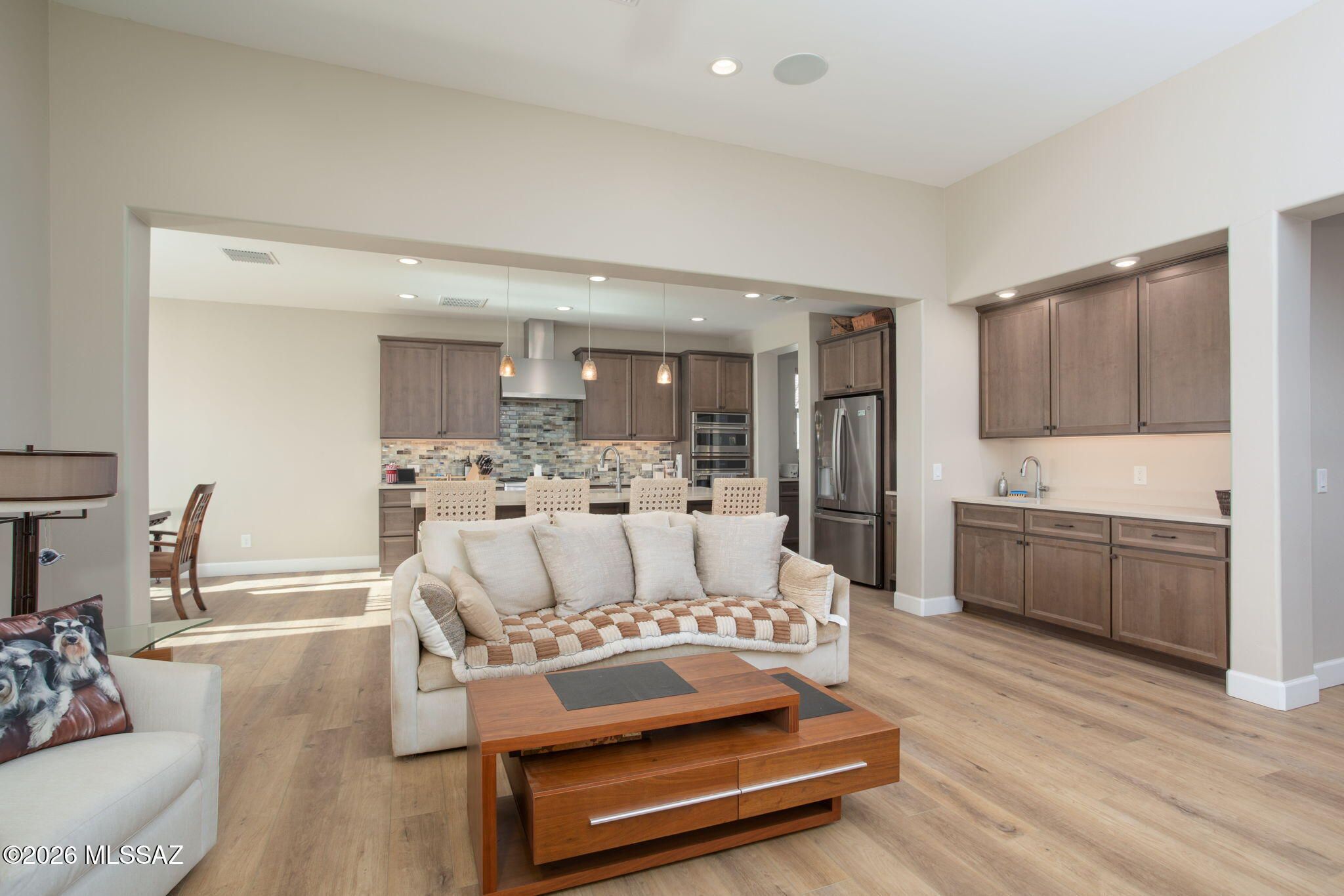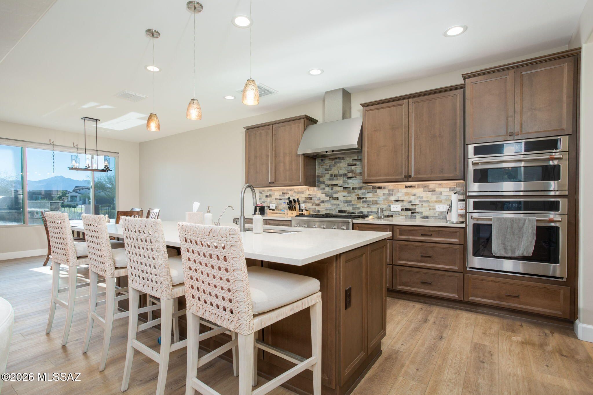 Stunning 2021 Pavona Model rivals new construction w/its impressive array of upgrades. Step inside to discover elegant vinyl plank flooring throughout, gleaming quartz countertops, SS appliances, and a spacious walk-in pantry w/abundant storage. Owner's ste. boasts a sophisticated dual vanity, exquisite all-tile shower, w/generous walk-in closet. Outside, your private Oasis awaits w/fountain & covered patio complete w/rolling shutters-ideal AZ Room for yr-round enjoyment. Entertain in style w/ outdoor kitchen, perfect for alfresco dining. Exceptional oversized lot & a rare find, backing to a peaceful common area ensuring unmatched privacy. Elec/vehicle charger. Many premium features and designer touches. This remarkable home won't be available long. Schedule your showing today!