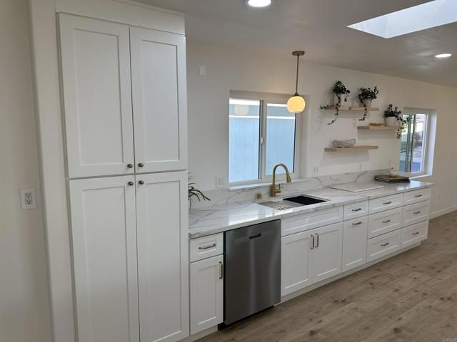 Views, Views, Views! Sit on the patio and enjoy the views of the hills and the cool ocean breezes. Located in beautiful Pilgrim Creek Estates, a highly desirable 55+ gated community where you own the land! This 2 bedroom, 2 bath home has over 1,900 square feet of living area and has just been beautifully remodeled with an all new kitchen with quartz counters, stainless steel appliances and gold touches throughout. This home is a gem with many amenities unlike other homes in the community including a large driveway, extended garage with room for a workshop, patio with panoramic view of the hills, solar, and a complete interior renovation. Upgrades include new flooring throughout, new ceiling fans, new lighting, new dual pane windows and more. Large living room with 2 picture windows to enjoy the view of the hills. Remodeled master bathroom looks like a luxury hotel with a beautiful custom shower with a rain shower and hand held sprayer, new vanity and a bidet. Large guest bedroom with a remodeled guest bathroom. Large laundry room with a built in sink. Close to all shopping and dining and a short drive to beaches and harbor. Pilgrim Creek Estates is a beautifully landscaped community that offers many amenities including a clubhouse with a full kitchen, billiard tables, gym, heated pool, jacuzzi and free RV parking. Low HOA fees of $425 per month includes water, trash and sewer fees.