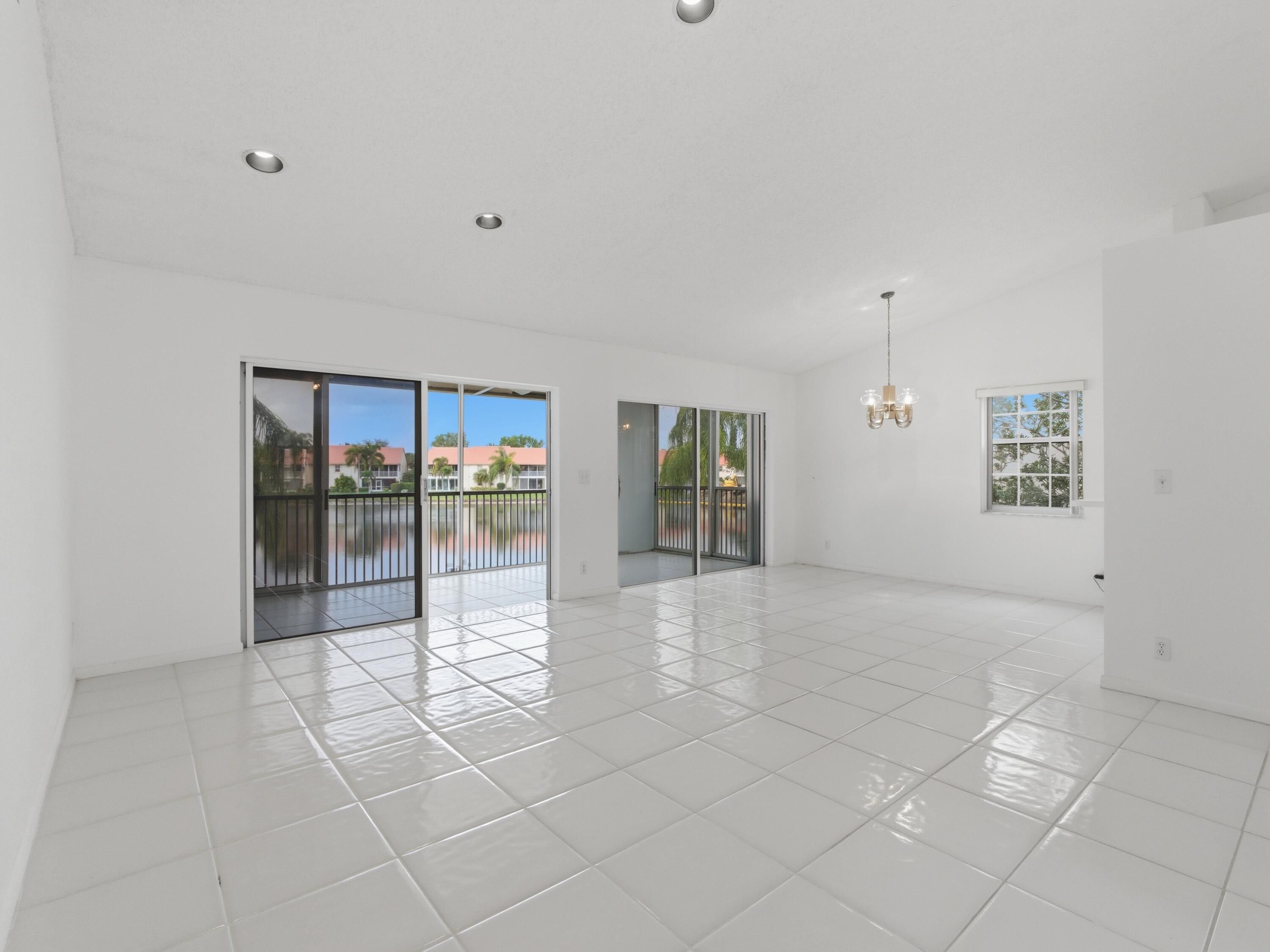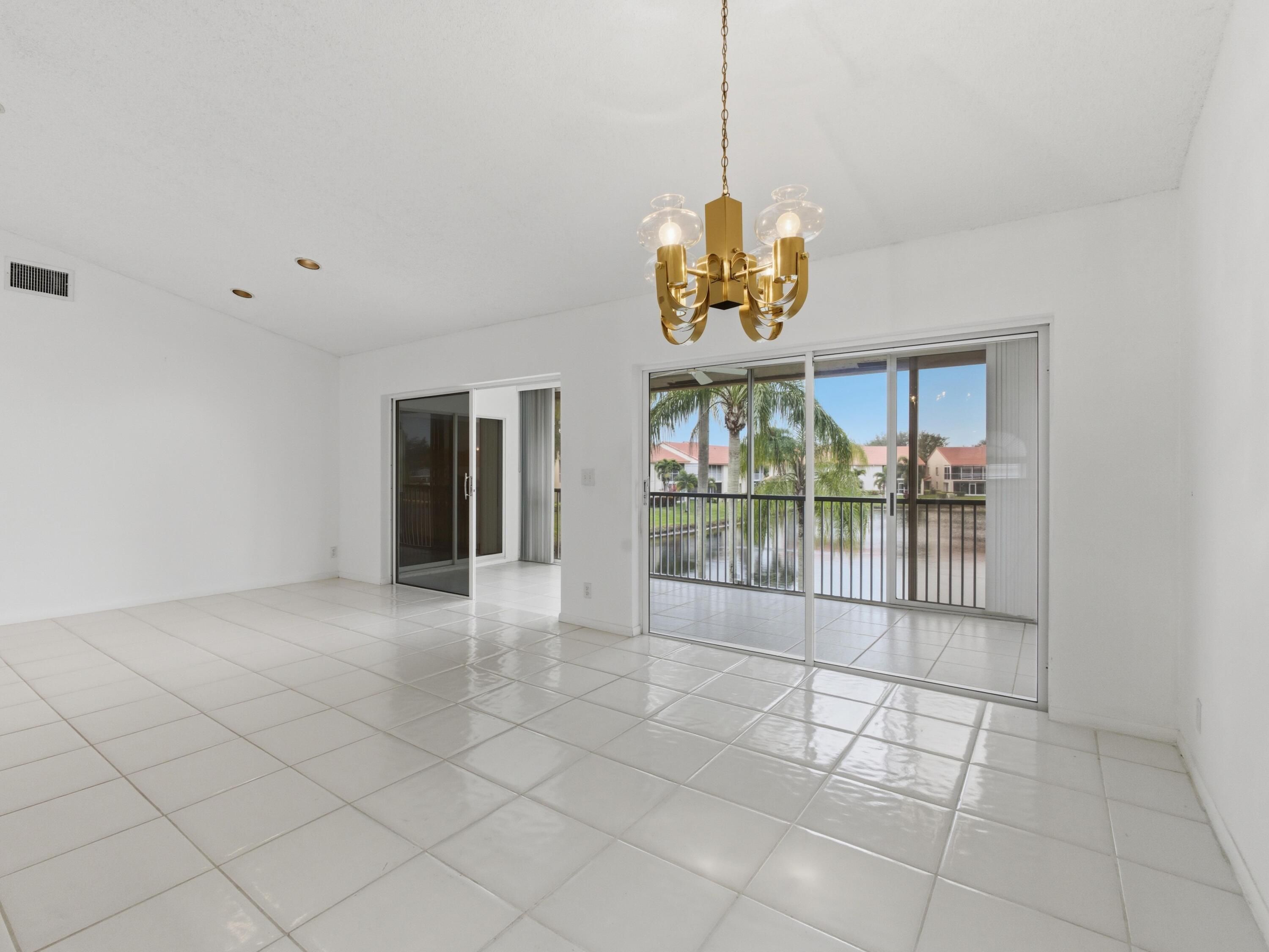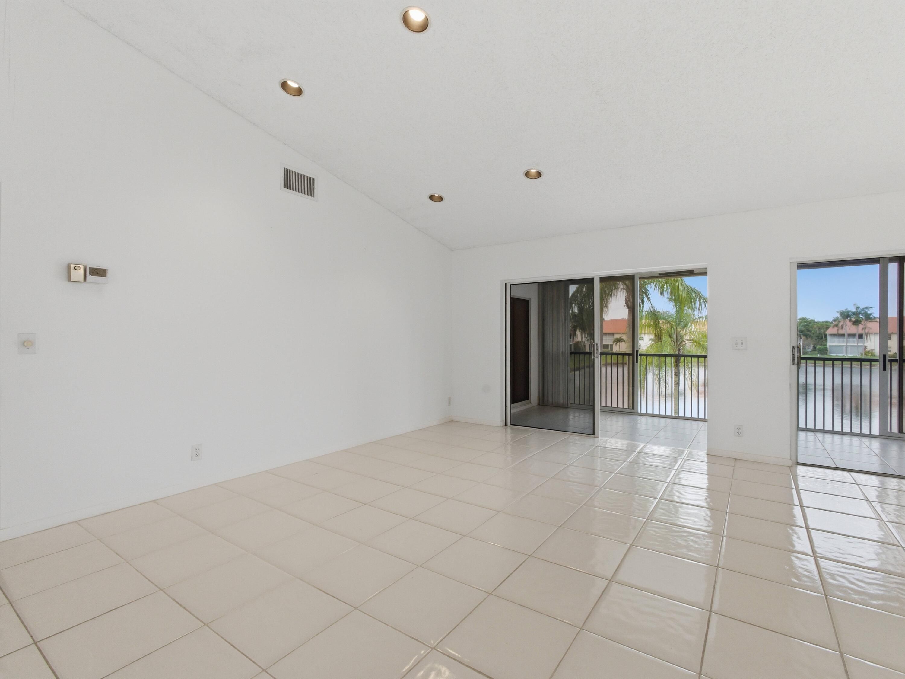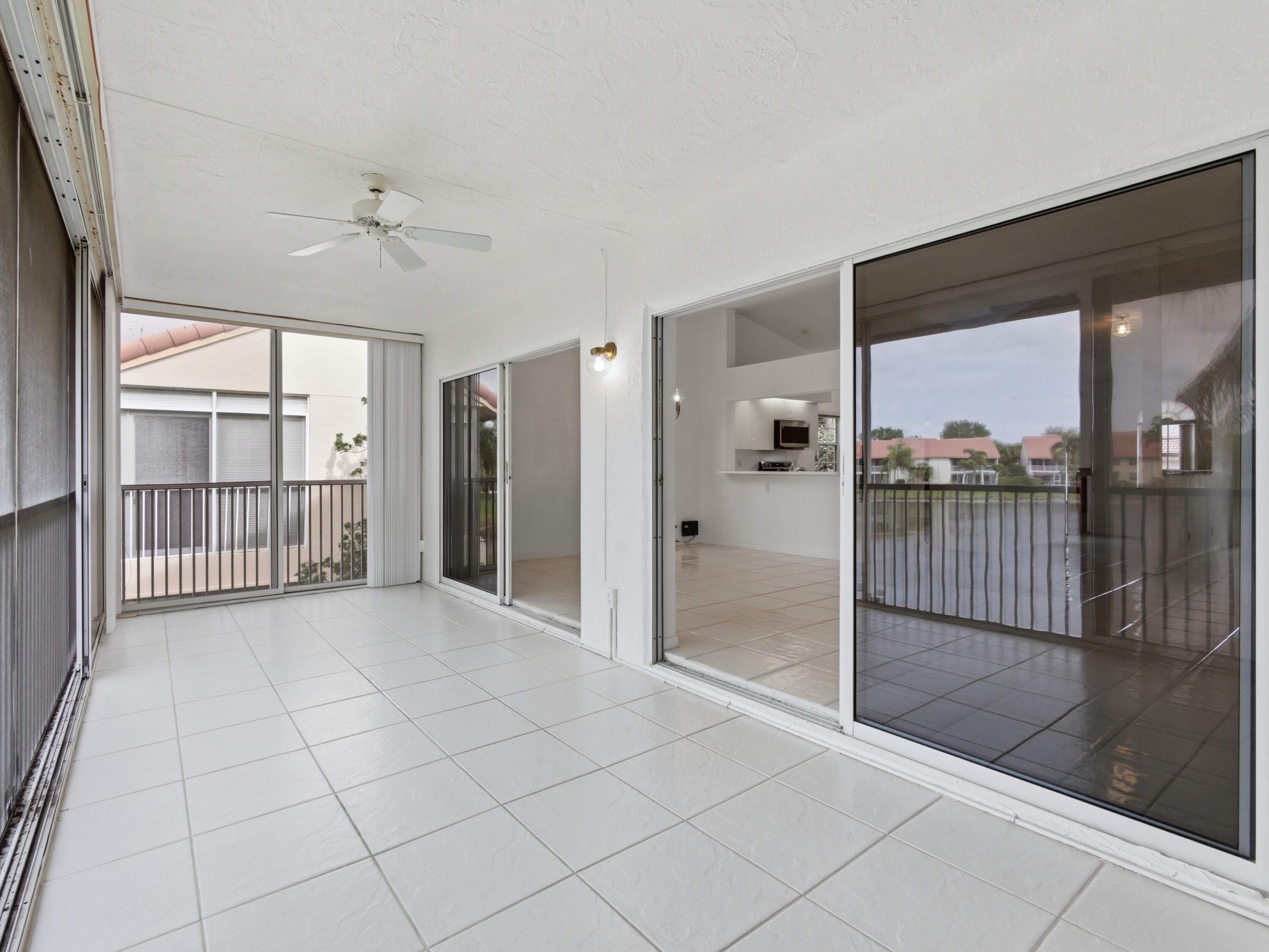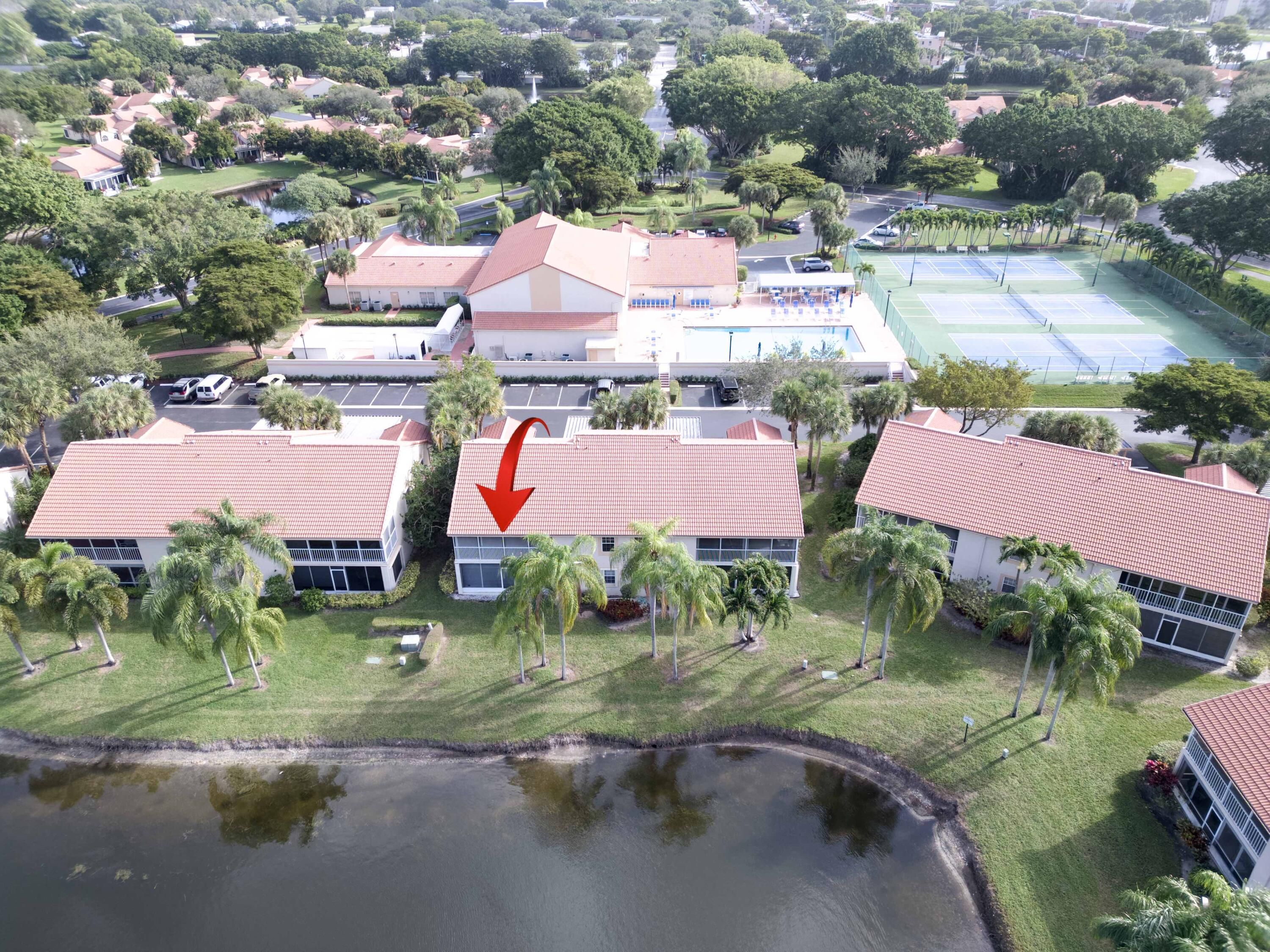 WOW! Welcome to this rarely available, expansive, light-filled, WATERFRONT condo with soaring ceilings and a huge patio overlooking a breathtaking lake, located in the highly desirable Emerald Pointe in Delray Beach. This beautifully maintained 55+ gated community is known for its meticulous upkeep and lush landscaping, creating a peaceful and resort-like environment. The condo's generous layout feels exceptionally open and airy, enhanced by dramatic ceiling heights, abundant natural light, and tasteful upgrades, including Brand-New appliances (2026) and carpet (2026). The bright eat-in kitchen features stainless steel appliances and flows effortlessly into the living and dining areas, perfect for both everyday comfort and entertaining. Offering two spacious bedrooms, two full bathrooms, plus a versatile third bedroom used as a den or media room, this home provides flexibility and room to spread out. Step outside to the large lanai/patio, where tranquil lake views create the perfect backdrop for morning coffee or evening relaxation. Residents enjoy ample parking and an impressive array of amenities, including a grand clubhouse with ballroom, shows and activities, multiple card rooms, library, fitness center, billiards and game rooms, as well as a heated pool, hot tub, tennis and pickleball courts, and on-site management. HOA fees conveniently include roof repair and replacement, cable, internet, alarm, landscaping, exterior insurance, exterior maintenance, and all amenities. Ideally located in West Delray, close to excellent shopping and dining, this huge, light, and bright lakefront condo offers exceptional space, views, and lifestyle.