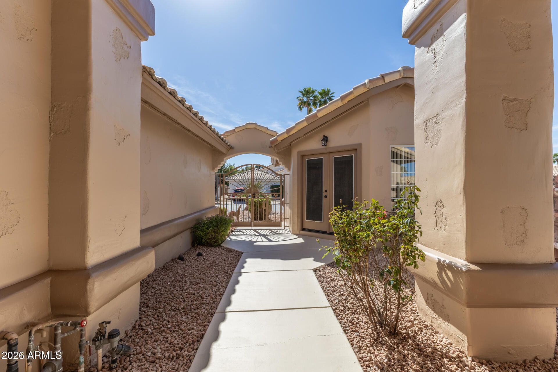 Beautifully upgraded and move-in ready home on an oversized interior corner lot. The Main Home features 2 Bedrooms & 2 Baths with a separate 1 Bedroom 1 Bath Casita for your guests or Hobby Room. Spacious Primary Bedroom features Bay Windows, Soaring Vaulted Ceilings; Primary Bath with oversized shower, dual sinks, private toilet room, large Walk-In Closet & separate exit to the backyard. Gorgeous eat-in Kitchen boasts Stainless Steel Appliances, beautiful white cabinetry & extensive granite countertops. The kitchen layout features a charming breakfast nook and a formal dining room which can also be converted into a den. This is a flexible space to meet your lifestyle. Large Living Room with Soaring Vaulted Ceilings & many windows to filter in bright natural light is perfect for entertaining. Some of the Many Upgrades thru out in both Main Home & Casita include expansive wood-look porcelain tile in all the right places, new Shaw carpet, & Granite Countertops in all 3 bathrooms. The beautifully landscaped Back Yard has a full-size covered patio that expands the full width of the home, ideal for year-round outdoor enjoyment & relaxation. Front features Inviting Courtyard with Security Gate. Additional Highlights are Fresh Two-tone Exterior paint (2026); New Roof House & Casita (1/2026), Shaw Brand Carpet (2/2026), new interior & exterior Door Hardware (2/2026); New Exterior Lighting (2/2026); Freshly Coated Concrete in Courtyard & Back Patio. Sun Village is a 55+ Guard Gated, Resort Style Community. Enjoy the 18-hole par 3 "no riding" golf course, large, heated pool & spa, pickleball, tennis, fitness gym, woodshop, billiards, onsite entertainment in our ballroom and onsite restaurant. So many amenities to enjoy! Close to Freeway access, with many shopping centers and restaurants are all close by.