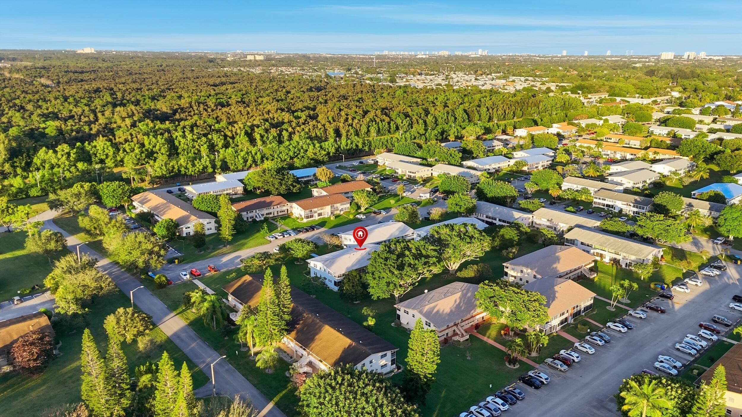 Rare opportunity in Century Village. This bright, quiet, renovated corner 1-bedroom, 1.5-bath home offers features almost never found in the community, including a PRIVATE IN-UNIT WASHER/DRYER, DISHWASHER, and CENTRAL AIR. The open-concept layout is filled with natural light and showcases a granite kitchen, clean modern finishes, and a peaceful corner-unit setting with added privacy. Step onto the balcony and enjoy breezes, birdsong, and a calming open outlook. Century Village delivers an unmatched 55+ lifestyle with a 1,200-seat theater, expansive clubhouse, fitness center, resistance pool, woodworking studio, sailboat lessons, 17 pools, endless clubs, and courtesy shuttle service to shopping and dining. A standout home in a community where this level of convenience is truly hard to find