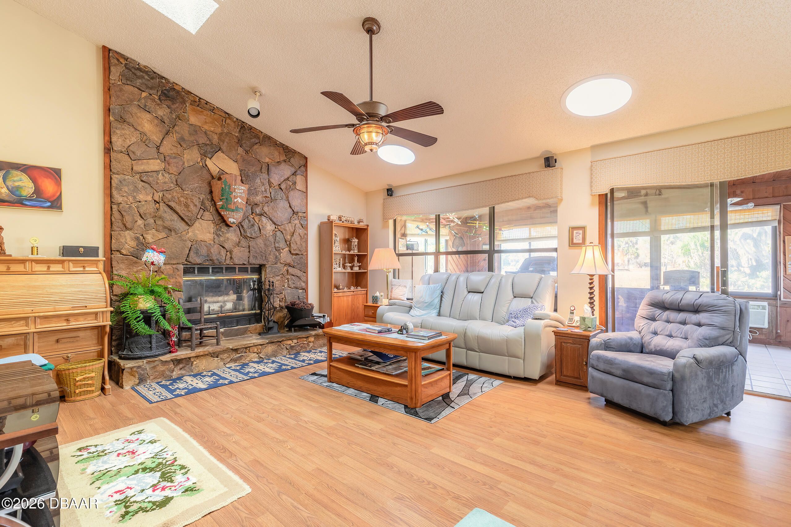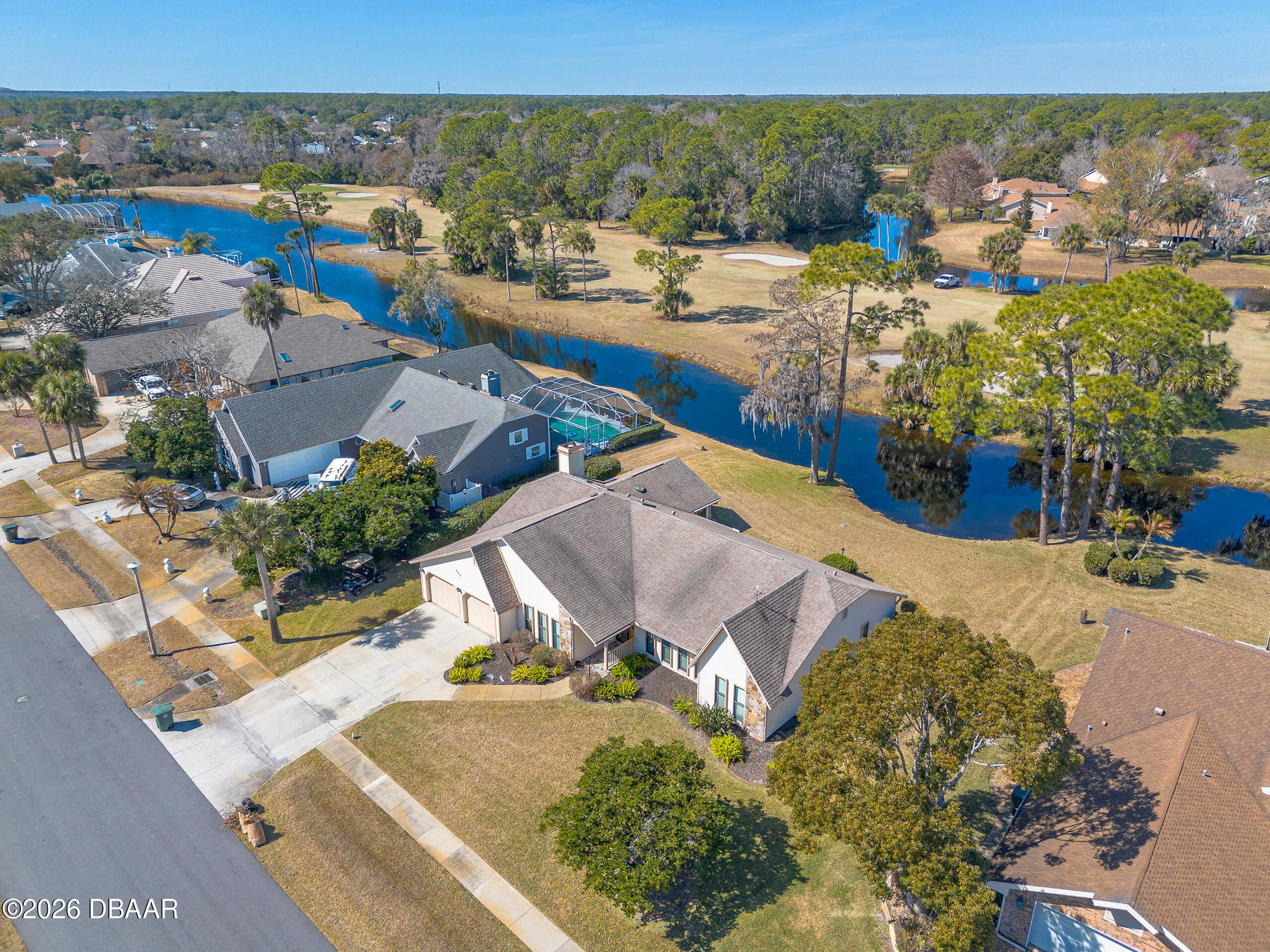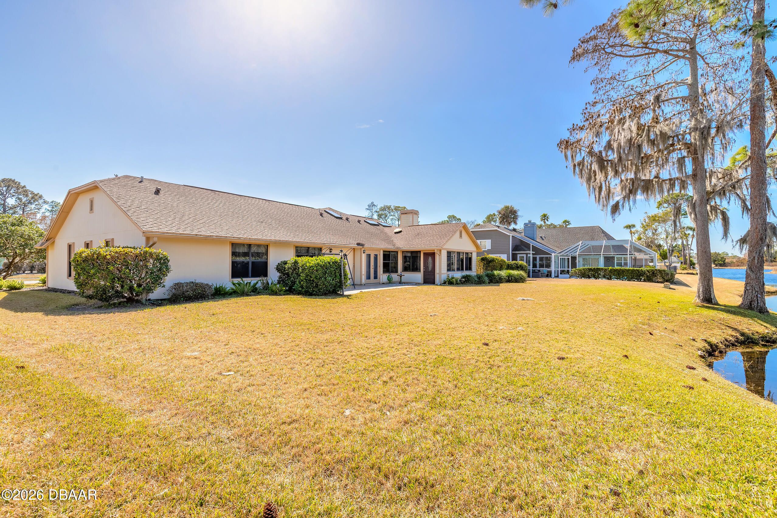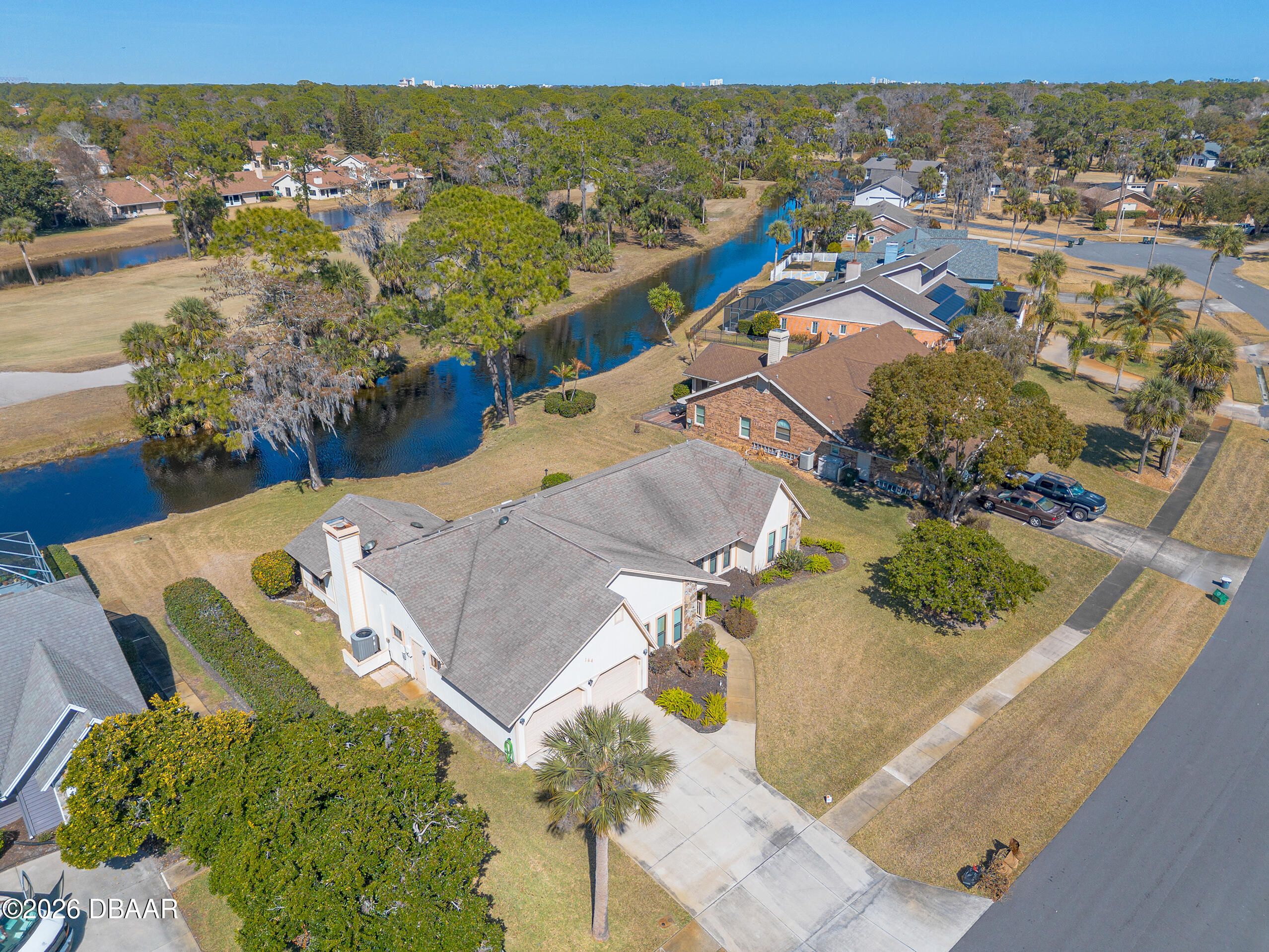 Welcome to the gated golf community of Pelican Bay, where peaceful views and resort-style living come together beautifully. Perfectly positioned on the golf course with serene canal views, this home is getting a brand-new roof and freshly re-sided exterior—offering both charm and peace of mind. Step inside to a welcoming formal living room and a warm, inviting family room centered around a stunning fireplace. Just beyond, a bright sunroom provides the perfect place to relax and offers direct access to the patio and expansive backyard—ideal for morning coffee or evening gatherings overlooking the golf course. The spacious kitchen is truly the heart of the home, featuring a large island, pantry, abundant cabinetry, and an open layout that flows seamlessly into the family room and dinette area. Enjoy beautiful backyard, canal, and golf course views right from your kitchen table. The generously sized primary suite is a private retreat with an enormous walk-in closet. (see more) The primary bath offers dual vanities, a separate soaking tub and shower, private water closet, and a large skylight that fills the space with natural light. Two guest bedrooms are thoughtfully located on the opposite side of the home, providing privacy for family or visitors. Additional features include an inside laundry room and plentiful storage throughout. All of this within a 24-hour manned, gated golf community, centrally located near the beach, schools, shopping, I-95, and I-4 making trips to Orlando easy and convenient. This is Florida living at its best, comfortable, secure, and surrounded by beautiful views.