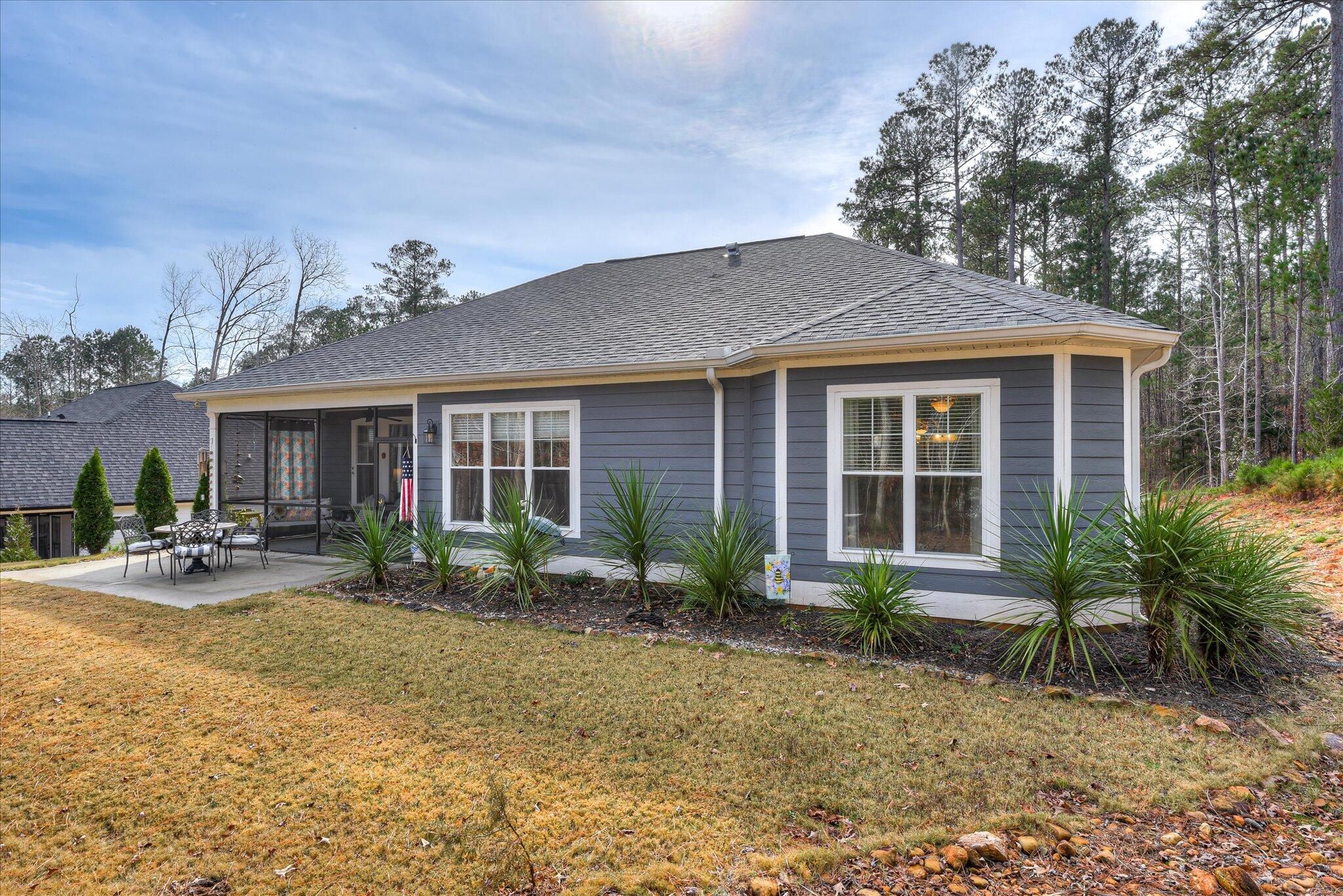 Are you looking to buy a move in ready Crab Apple plan built by Capitial Home Builders? This home is move in ready and located on a great interior lot with view of Lake Thurmond and walking distance to the community dock #53. Enter the front door into the welcoming foyer, there are two guest rooms and a full bath. Continue forward into the open kitchen dining and great room, great open spaces. You will love the large amount of cabinets and counter space, wonderful island with counter top seating area, stainless farm sink and stainless steel appliances. Primary bedroom is tucked away at the back of the home and has a great closet with built in shelving. The primary bath offers a tiled walk in shower, quartz countertops with dual sinks. The use of transom windows allows beautiful light to flood the rooms, but still offers great privacy. There is also a wonderful 18 x 8 screened patio off the Family room where you can enjoy a peaceful outdoor space. Built in 2022, home is ready for you and landscape is established, move in and enjoy joining the Recreation center where you can play tennis, pickle ball, swim, fitness room and even bowling. Plus Savannah Lakes offers to championship 18 hole Golf Courses. Schedule your showing today.