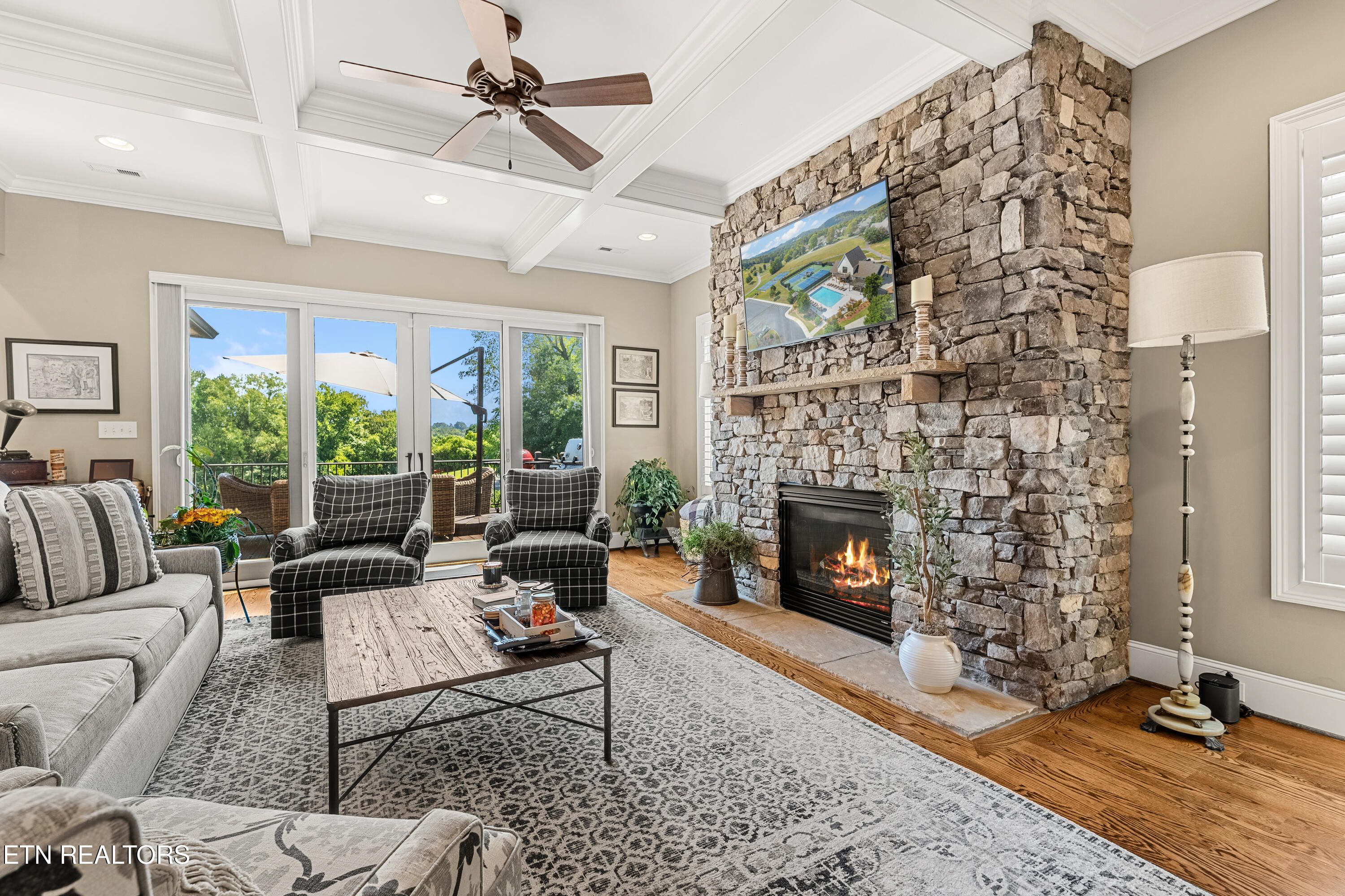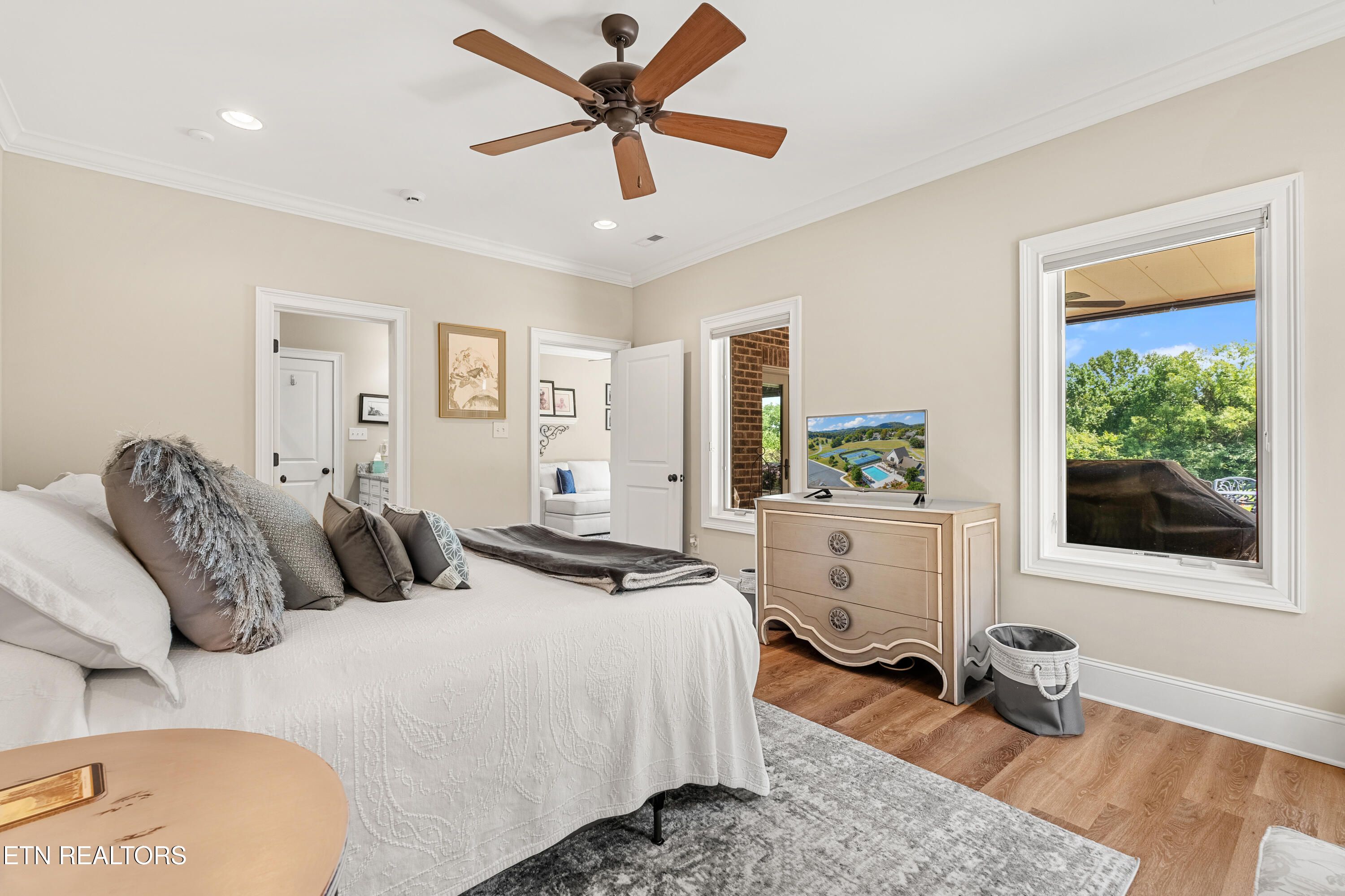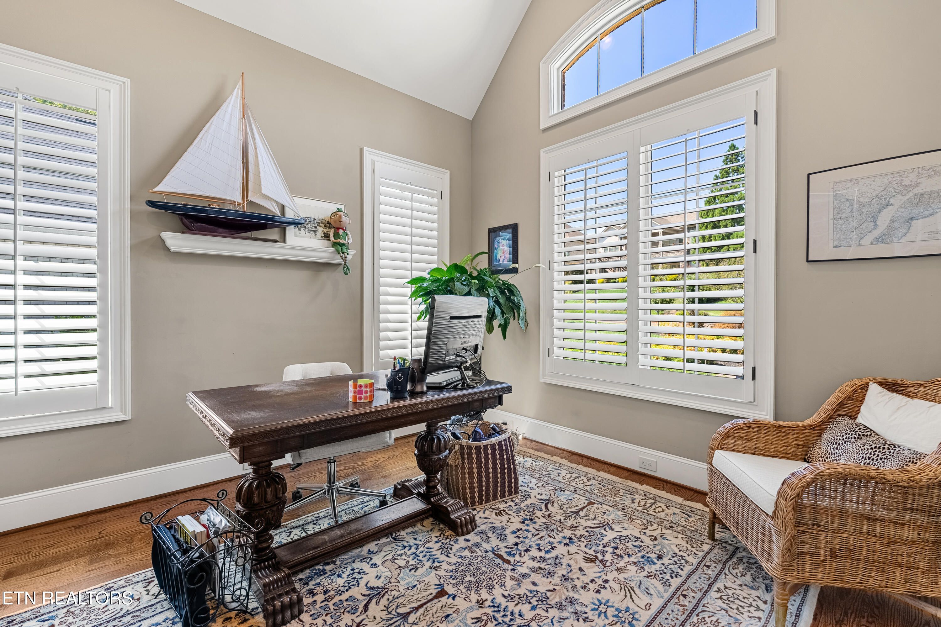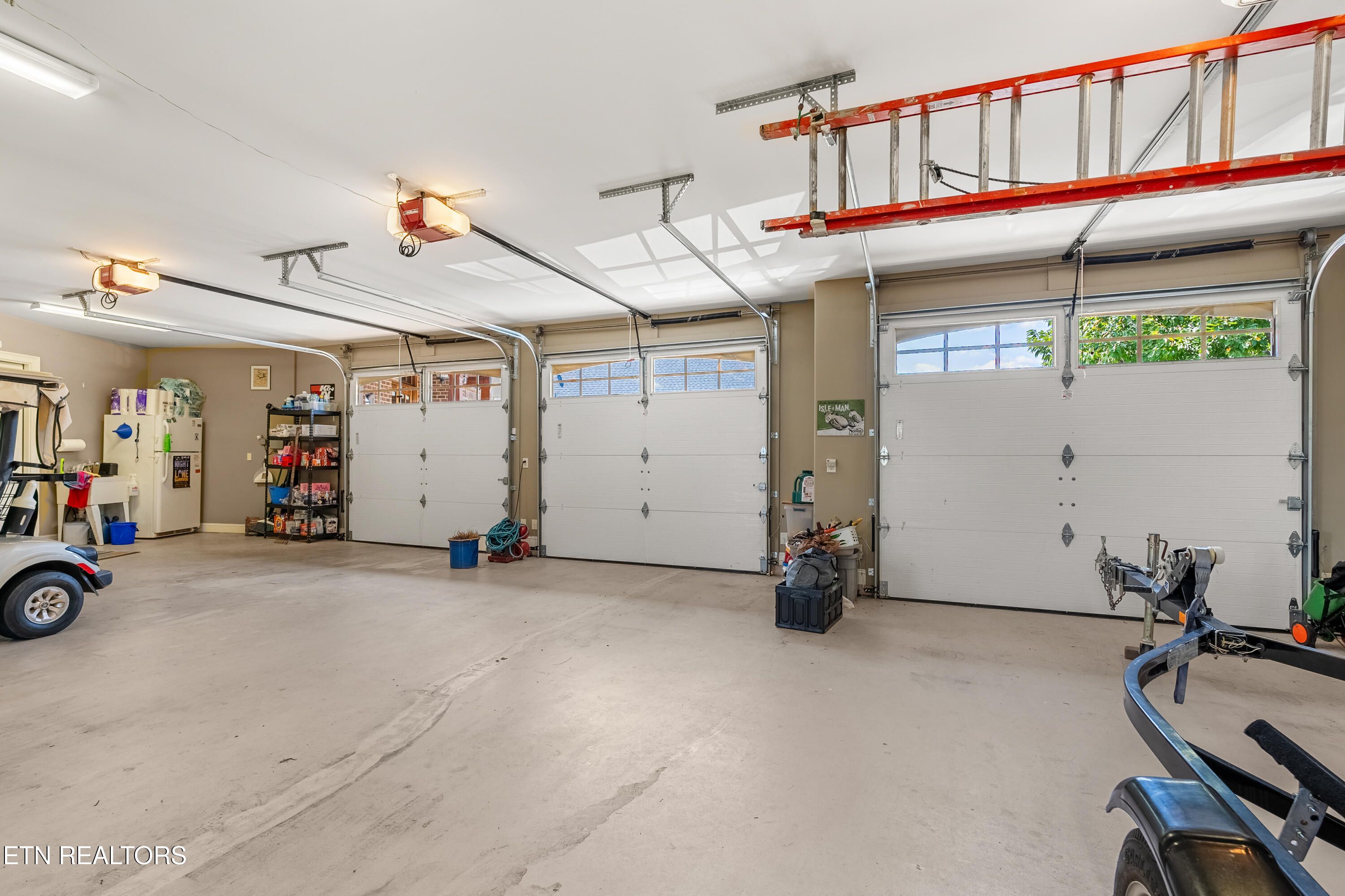 Exceptional Custom Home with Lake Views & Boat Slip Designed by Miller Architects and built by Knoxville's premier builder, J.A. Houck Construction, this custom home blends timeless craftsmanship with modern luxury. Enjoy partial lake views year-round (full in winter) plus a covered leased boat slip with lift, touchless cover, and pontoon boat included—a $1M savings compared to direct lakefront living! Built with integrity, the home features a poured concrete foundation, 2x6 exterior walls, Pella casement windows, heavy crown moldings, custom trim, coffered ceilings, & natural gas generator. Main Level: Formal study, powder room, open great room, and gourmet kitchen with large island, breakfast area, Thermador appliances, Bosch refrigerator, Sharp microwave drawer, built-in Miele coffee maker, granite counters, and site-finished red oak hardwoods. Expansive deck for entertaining. Primary suite with lake views, trey ceiling, spa-like bath (heated tile floors, walk-in shower, soaking tub, dual vanity, bidet), and oversized walk-in closet. Laundry off the suite. Plantation blinds and Hunter Douglas Window Shades throughout the home. Oversized 3-car garage plus golf cart space. Lower Level: Two ensuite bedrooms, recreation room, large finished workshop with 220 power (included in sqft), safe room, abundant storage, and covered patio. Framed for future elevator to service upper and main levels. Upper Level: Bonus retreat/man cave with bar area, dishwasher, media/game space, and half bath—perfect for entertaining or relaxing. This home truly has it all—lake lifestyle, luxury finishes, and meticulous quality. Full golf membership available for transfer.